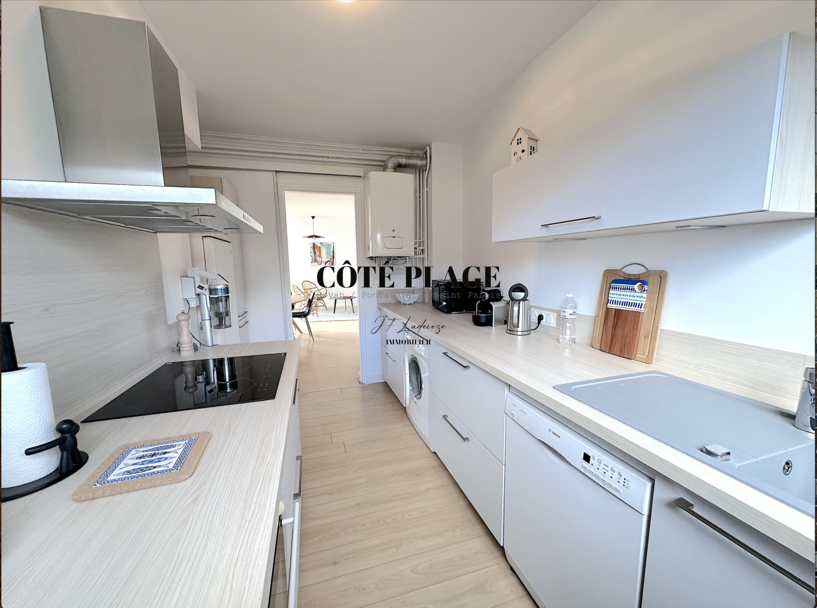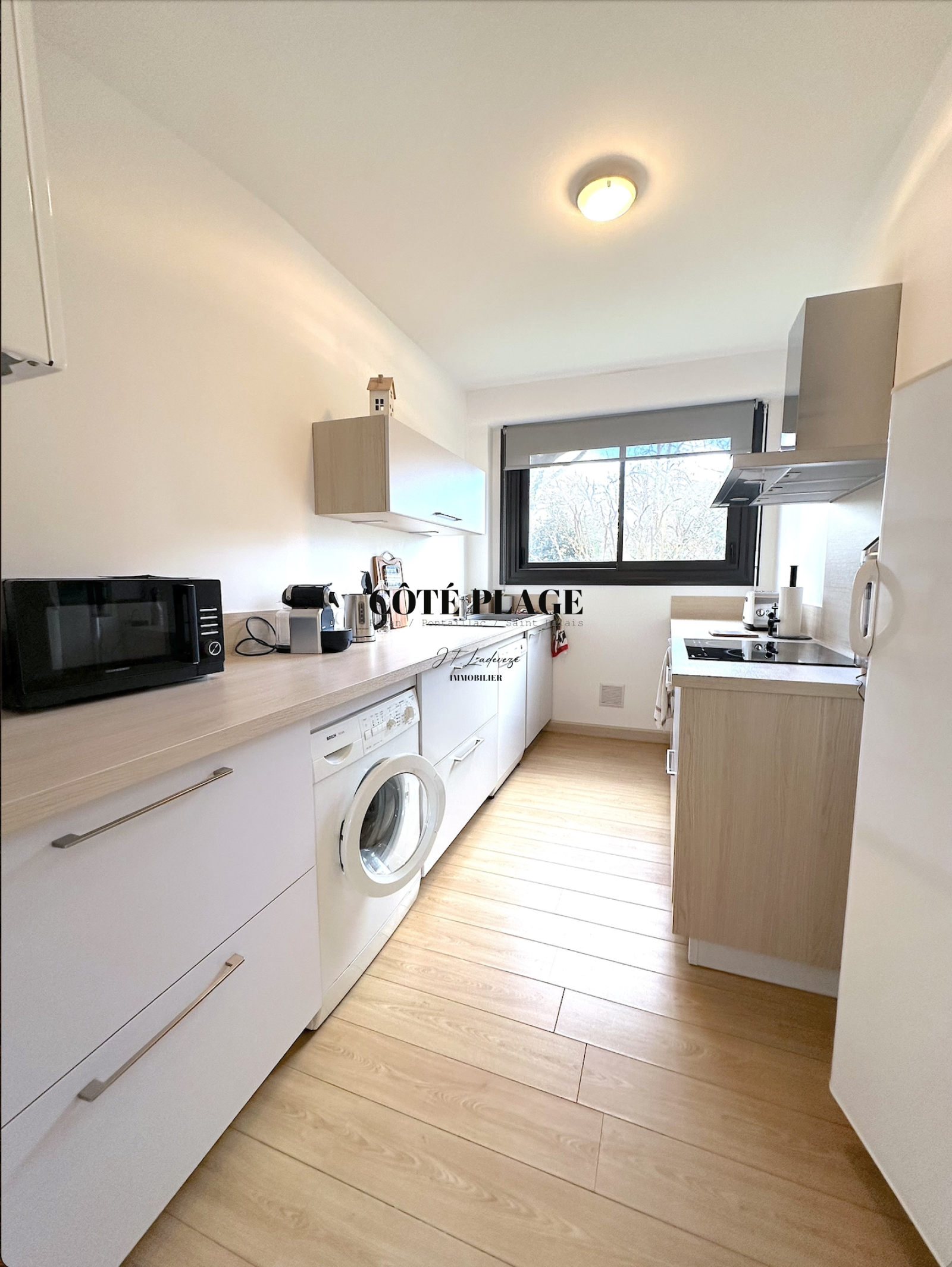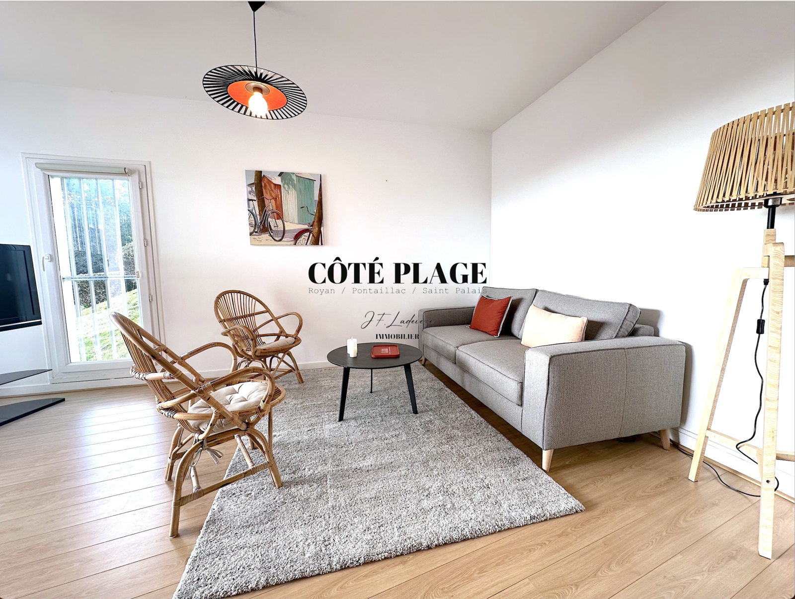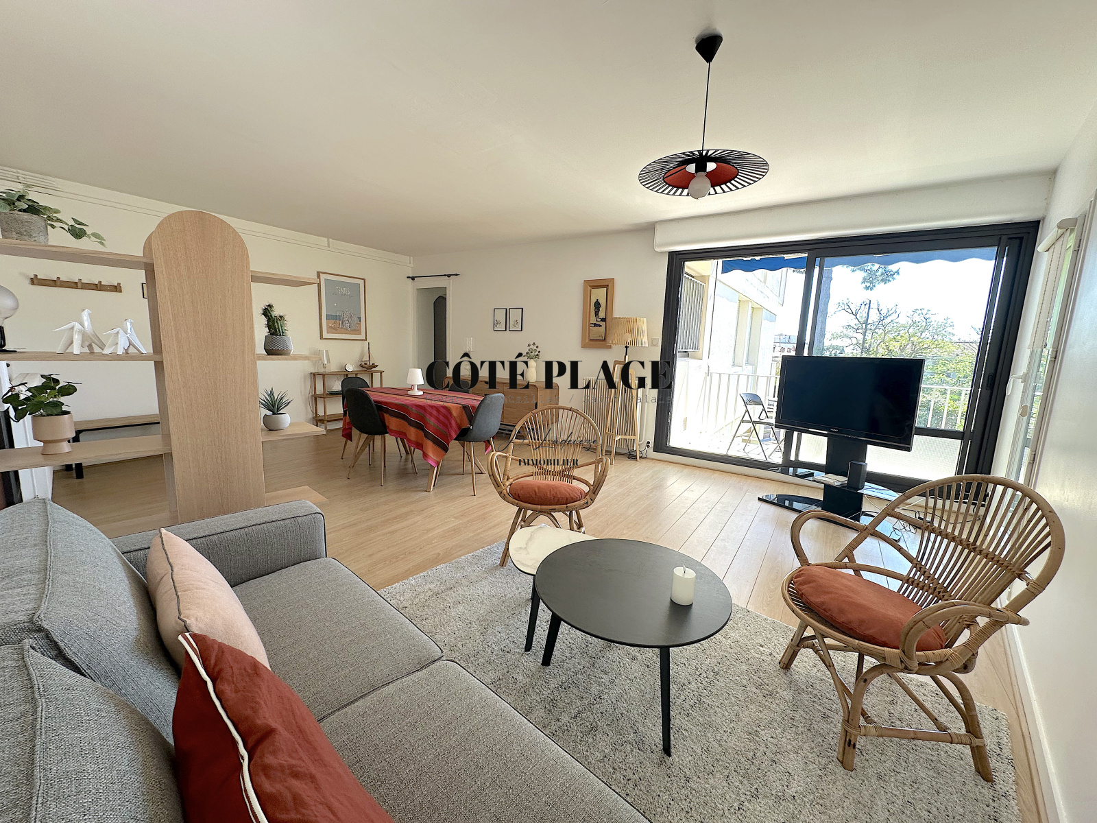 COTÉ PLAGE IMMOBILIER vous présente un bel appartement à la location de vacances très cosy d'environ 53 m2 avec 2 à 4 couchages composé d' un salon/séjour (avec canapé convertible très confortable) donnant sur une terrasse exposée SUD/OUEST avec vue sur les jardins communs , cuisine neuve entièrement équipée et aménagée , salle de bains avec toilettes, grande chambre (lit 160cm) avec rangement - une place de parking privative - local à vélo - Résidence très bien entretenue dans un joli parc arboré.