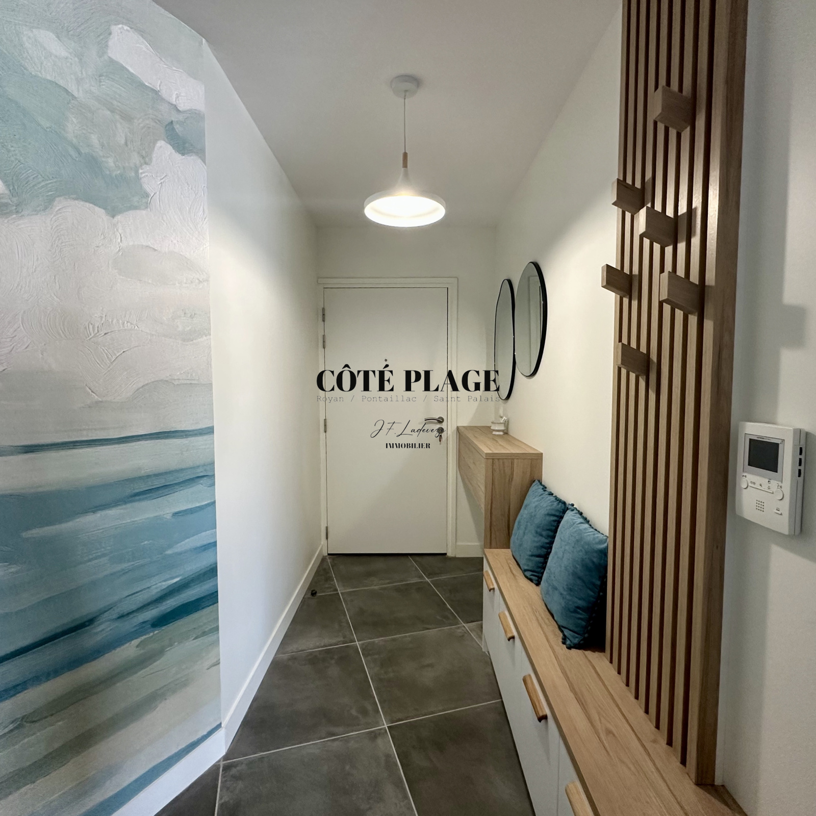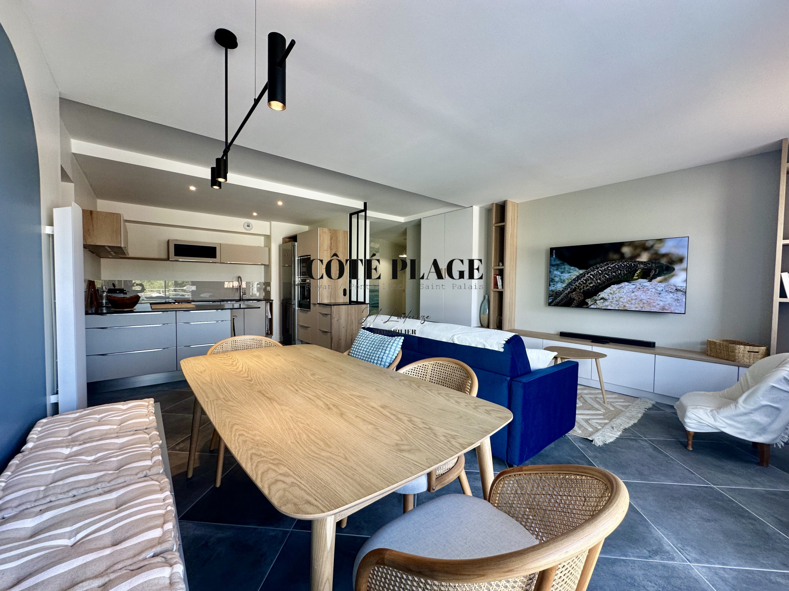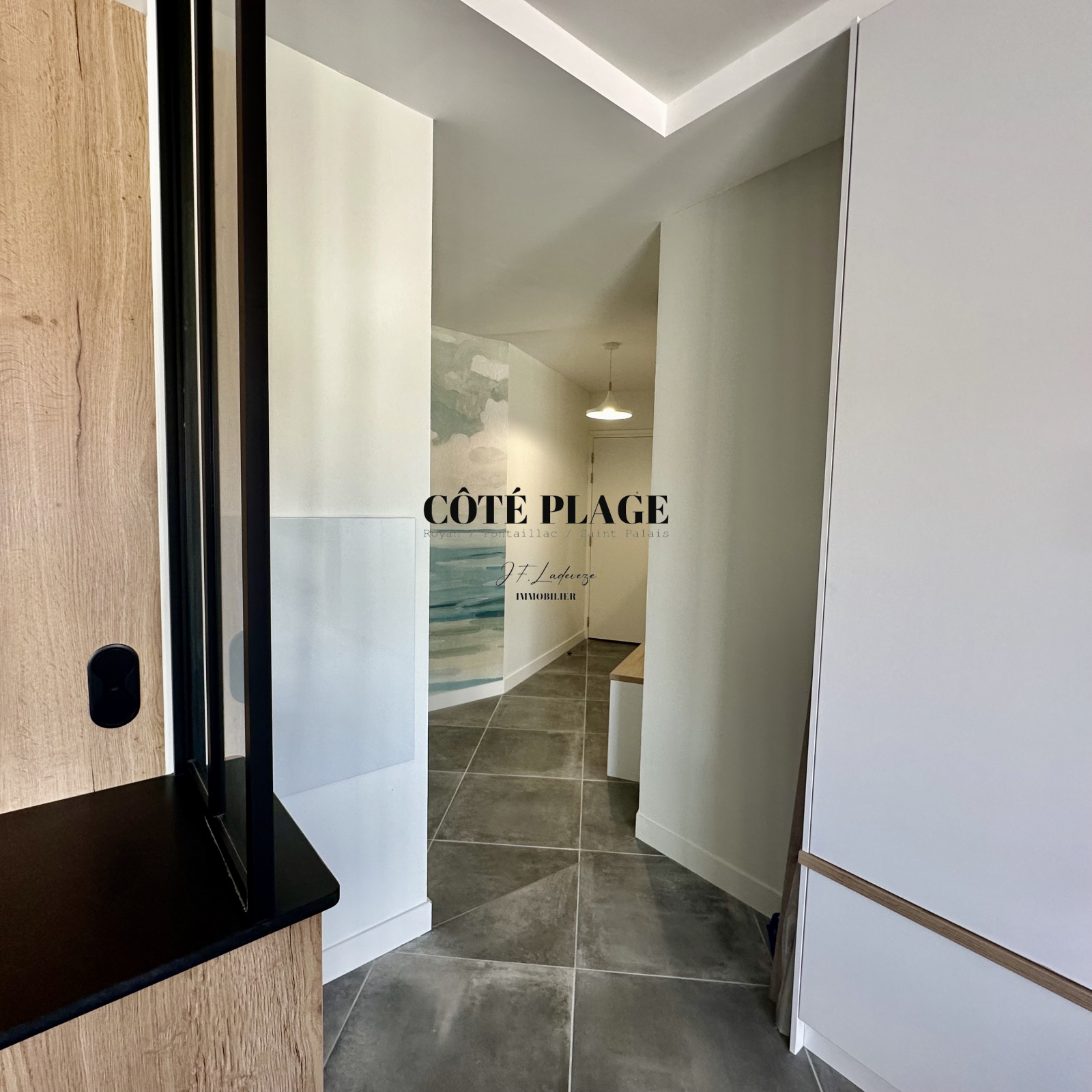 CÔTÉ PLAGE IMMOBILIER ROYAN PONTAILLAC ST PALAIS, vous propose à la location vacances ce magnifique appartement de 3 pièces avec grande terrasse située à 100 m de la plage de PONTAILLAC,destiné à être occupé par 2/4 personnes plus bébés, cet appartement est composé de 2 chambres avec un lit de 160 cm et 2 lits de 90 cm, salle d'eau, toilettes sont séparés, buanderie avec lave linge et sèche linge, pièce à vivre avec cuisine us entièrement équipée, coin tv avec écran plat plus WIFI, grande terrasse avec table repas et transats, PARKING SOUS SOL avec prise électrique pour recharge batterie. LINGE DE MAISON - DRAPS et MÉNAGE DE SORTIE INCLUS DANS LE TARIF, se rajoute au prix la taxe de séjour. TARIF SEMAINE AU MOIS DE MAI - JUIN - SEPTEMBRE - OCTOBRE : 1238 € - TARIF semaine 1er QUINZAINE JUILLET : 1372 € - TARIF SEMAINE DE MI-JUILLET à FIN AOUT : 1710 €
