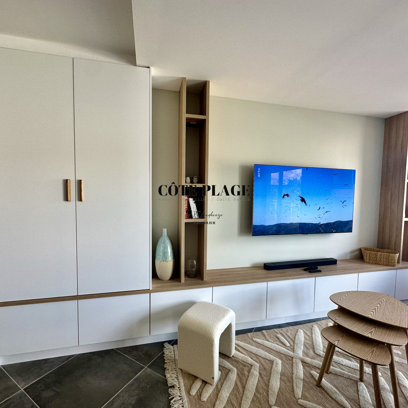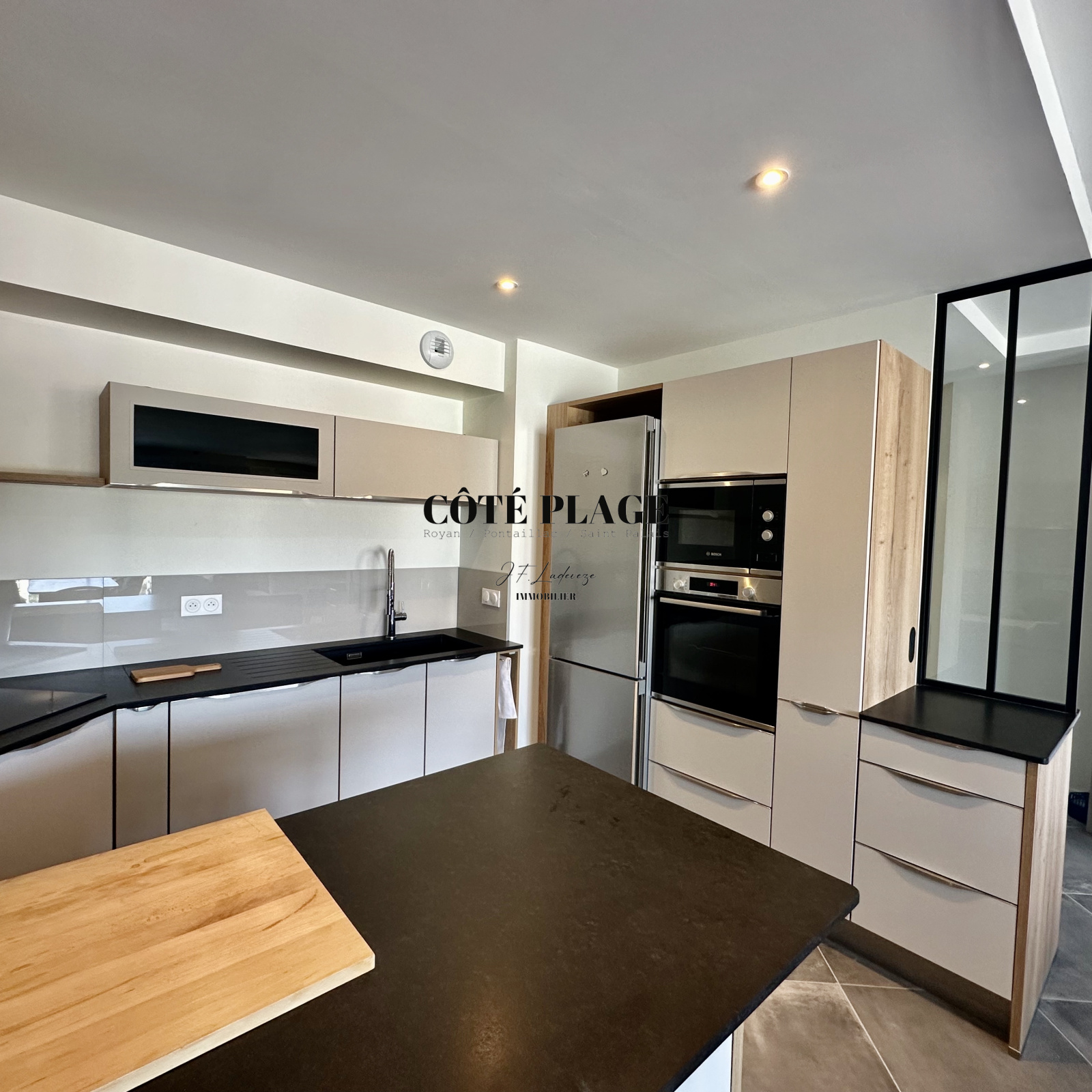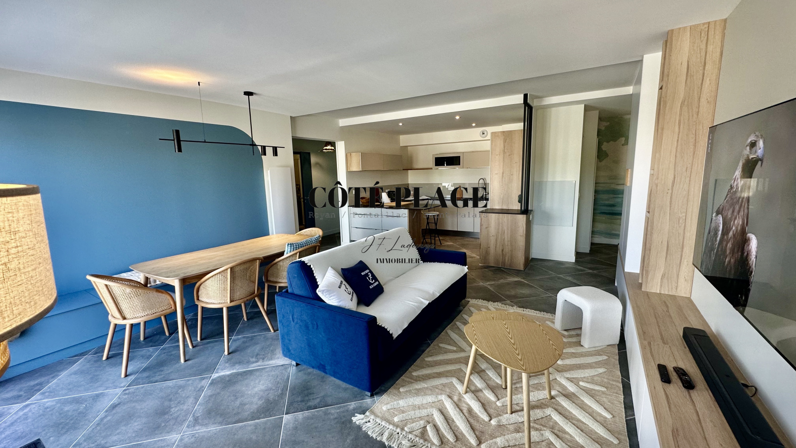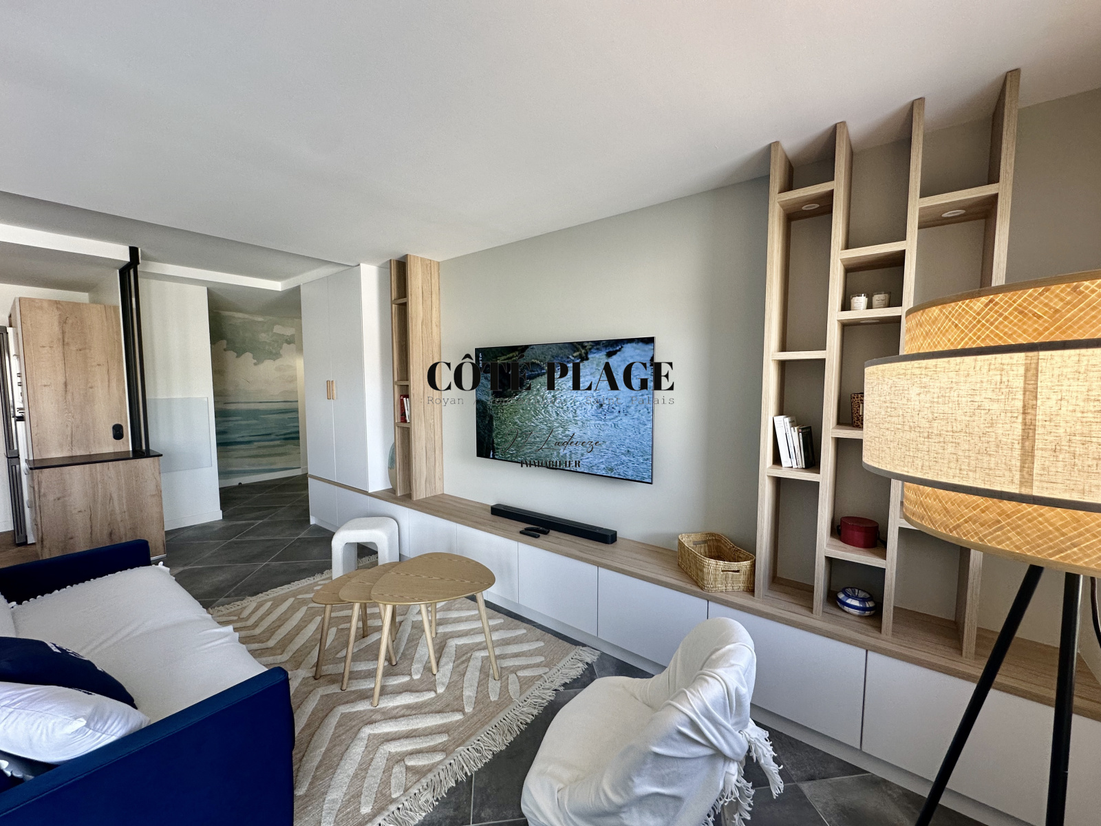 CÔTÉ PLAGE IMMOBILIER ROYAN PONTAILLAC ST PALAIS, vous propose à la location vacances ce magnifique appartement de 3 pièces avec grande terrasse située à 100 m de la plage de PONTAILLAC,destiné à être occupé par 2/4 personnes plus bébés, cet appartement est composé de 2 chambres avec un lit de 160 cm et 2 lits de 90 cm, salle d'eau, toilettes sont séparés, buanderie avec lave linge et sèche linge, pièce à vivre avec cuisine us entièrement équipée, coin tv avec écran plat plus WIFI, grande terrasse avec table repas et transats, PARKING SOUS SOL avec prise électrique pour recharge batterie. LINGE DE MAISON - DRAPS et MÉNAGE DE SORTIE INCLUS DANS LE TARIF, se rajoute au prix la taxe de séjour. TARIF SEMAINE AU MOIS DE MAI - JUIN - SEPTEMBRE - OCTOBRE : 1238 € - TARIF semaine 1er QUINZAINE JUILLET : 1372 € - TARIF SEMAINE DE MI-JUILLET à FIN AOUT : 1710 €