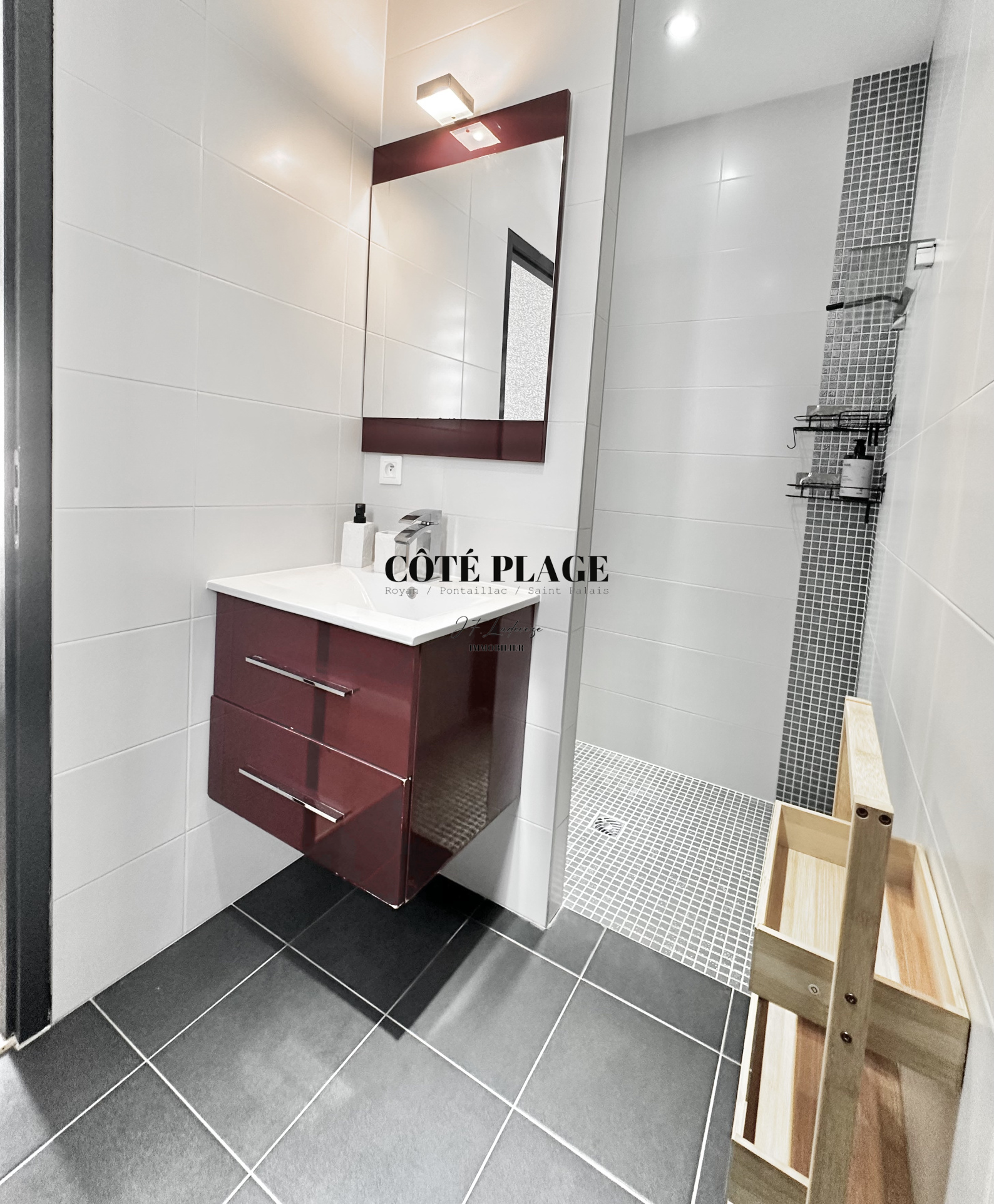 Situé à proximité de tous commerces : boulangerie à 1 km, marché de Vaux-sur-Mer à 1,7 km (3 minutes en voiture), marché de Royan à 1,6 km (également 3 minutes en voiture), et centre commercial à 1,2 km.