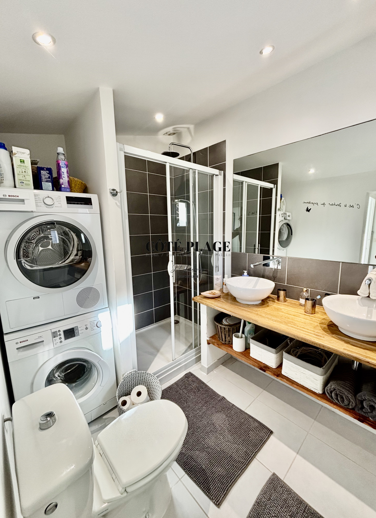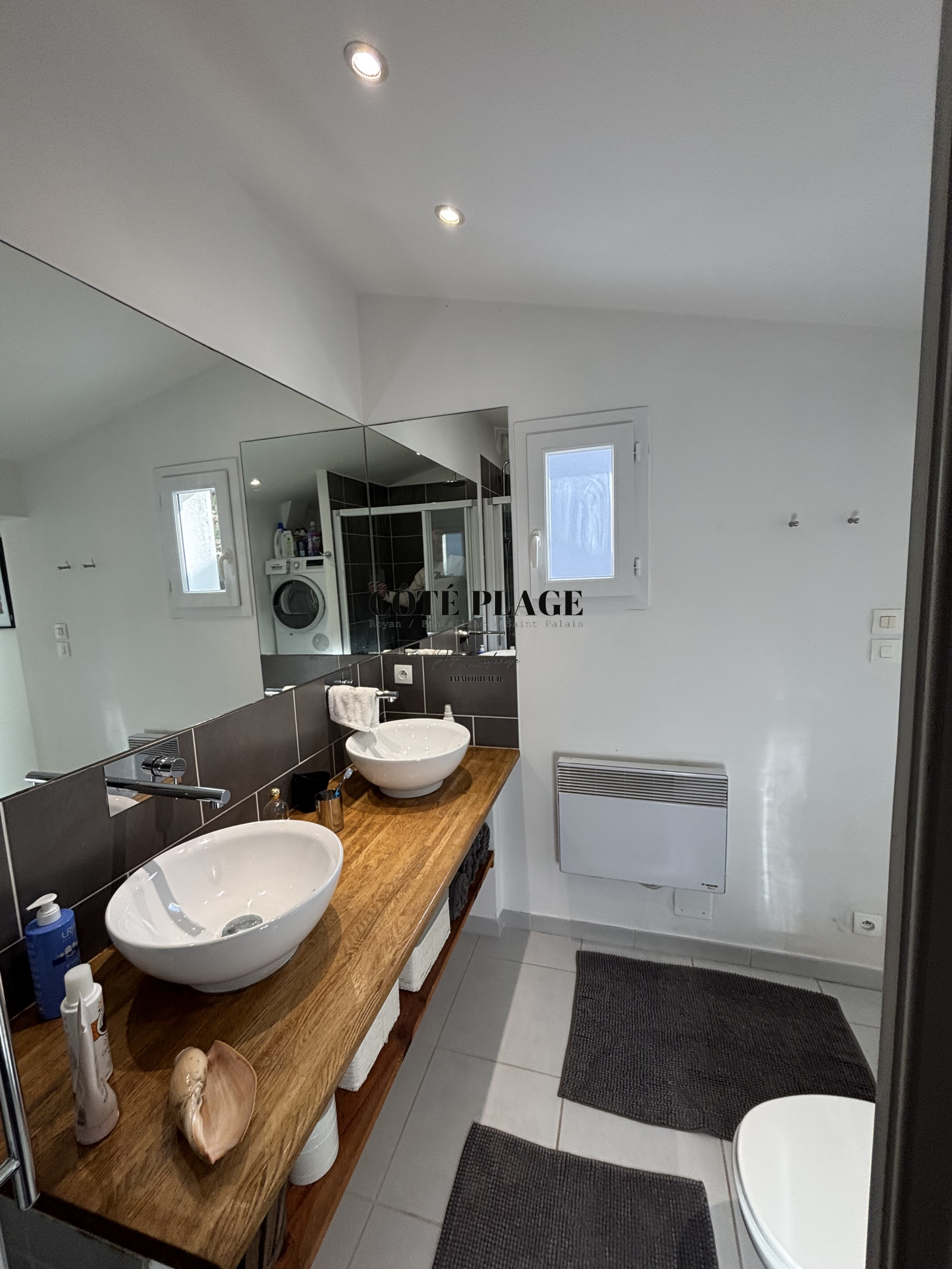 CÔTÉ PLAGE IMMOBILIER ROYAN PONTAILLAC ST PALAIS vous propose à la location vacances pour la 1er quinzaine d'aout " du 2/08/2025 au 16/08/2025 cette très jolie villa style charentaise dénommée LE REFUGE idéalement située dans un cadre verdoyant sans vis à vis à 100 de la plage de PONTAILLAC pouvant acceullir 4 personnes plus 2 personnes ocasionnellement , villa composée d'une entree, salon TV , coin nuit avec 2 lits de 90 cm , salle à manger et une cuisine bien équipée et une salle d'eau avec wc. Au 1er étage vous avez 2 chambres ( lit de 140 & lit de 160 cm ) salle d'eau avec wc. Salon de jardin, barbecue, plancha gaz, 4 transats, grand parasol , douche extérieur . DRAPS - LINGE DE MAISON - MÉNAGE DE SORTIE INCLUS DANS LE TARIF , reste à charge la taxe de séjour. TARIF QUINZAINE 5 620 € - TARIF SEMAINE 2920 € . Désignation précise des locaux : Entrée, salle à manger, cuisine labo, Salle d’eau, salon, véranda, 2 chambres et salle d’eau – Jardin Chambre 1 : un lit de 140 parfait état avec alèse couette et oreillers - Chambre 2 : un lit de 160 parfait état avec alèse couette et oreillers Cuisine équipée : Lave-vaisselle, frigo congéle, presse agrumes Magimix, Cafetière Nespresso, Robot Philips, micro-ondes, four etc .. Véranda : 2 lits jumeaux parfait état de 90 avec alèses et couettes Salon : canapé lit de 120, chaine hifi et téléviseur Capacité d’accueil de 4/6 personnes