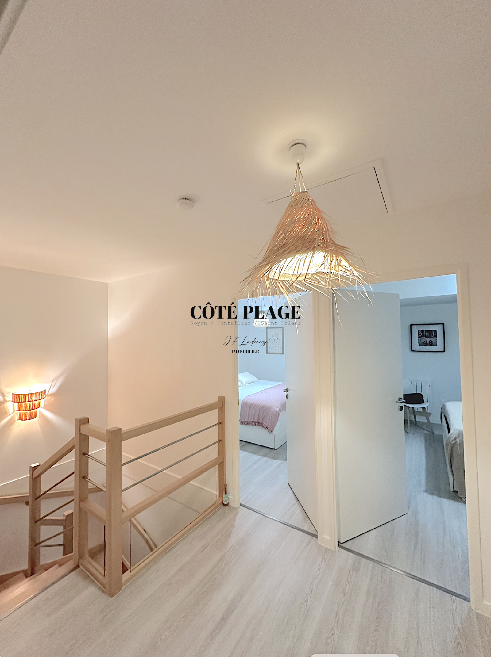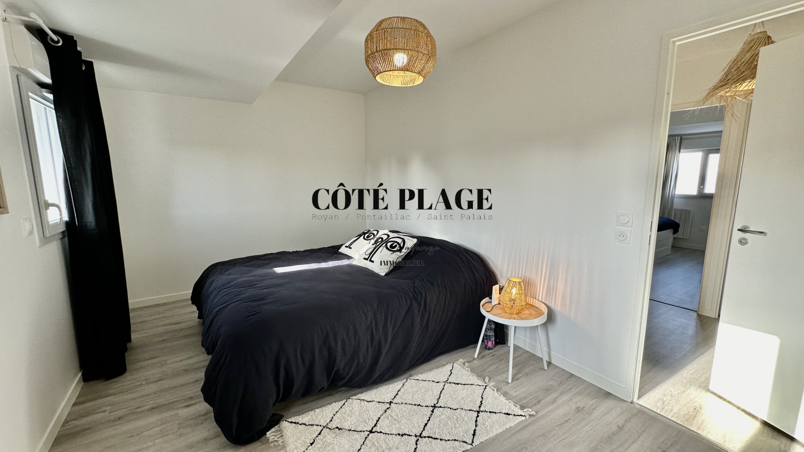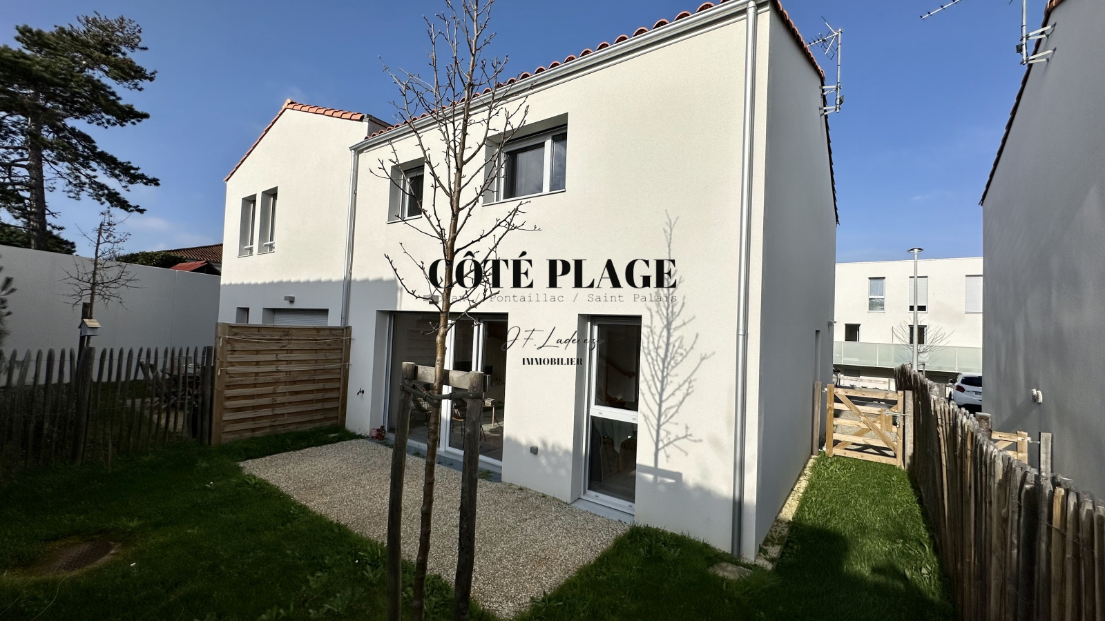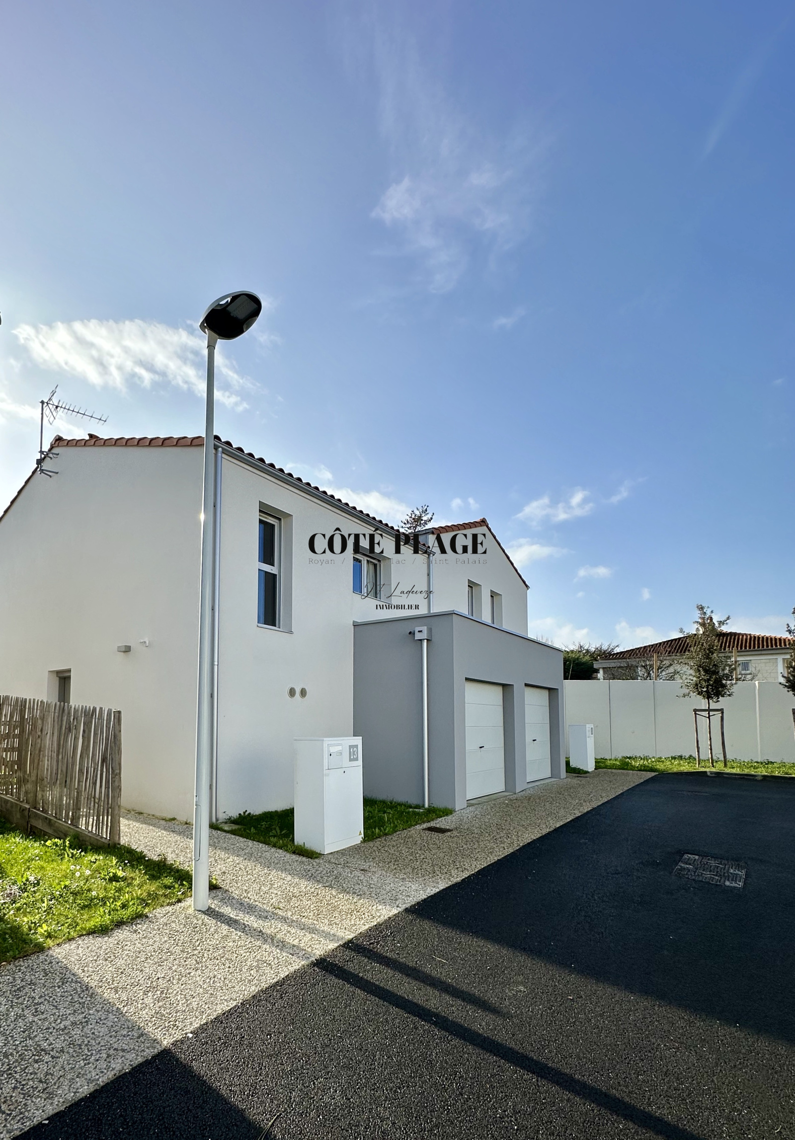 COTÉ PLAGE IMMOBILIER vous présente à la location de vacances une maison à étage neuve d'environ 89 m2 avec 4/6 couchages composé d'une entrée , d' un salon/séjour avec cuisine neuve entièrement équipée et aménagée ouvrant sur une terrasse et jardinet, salle de bains avec toilettes, à l'etage supérieur : un dégagement desservant 3 chambres (2 lits 160cm + 1 lit 140cm) avec rangement , salle d'eau , wc - une place de parking privative -