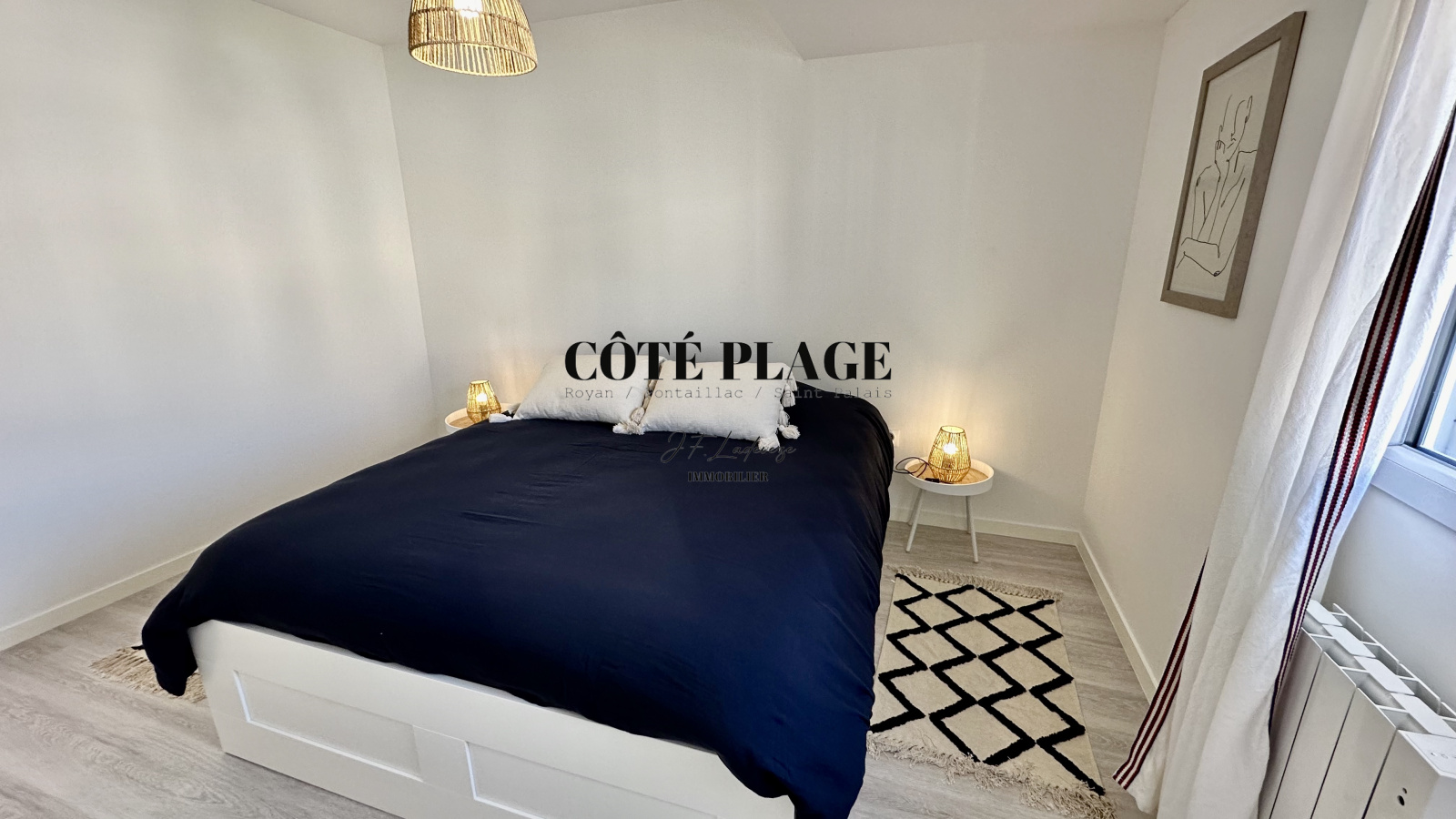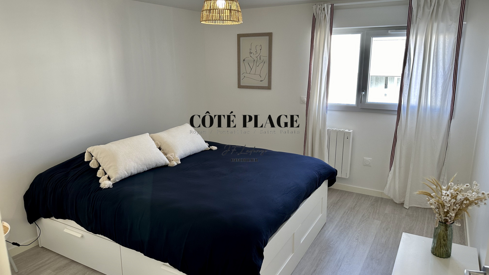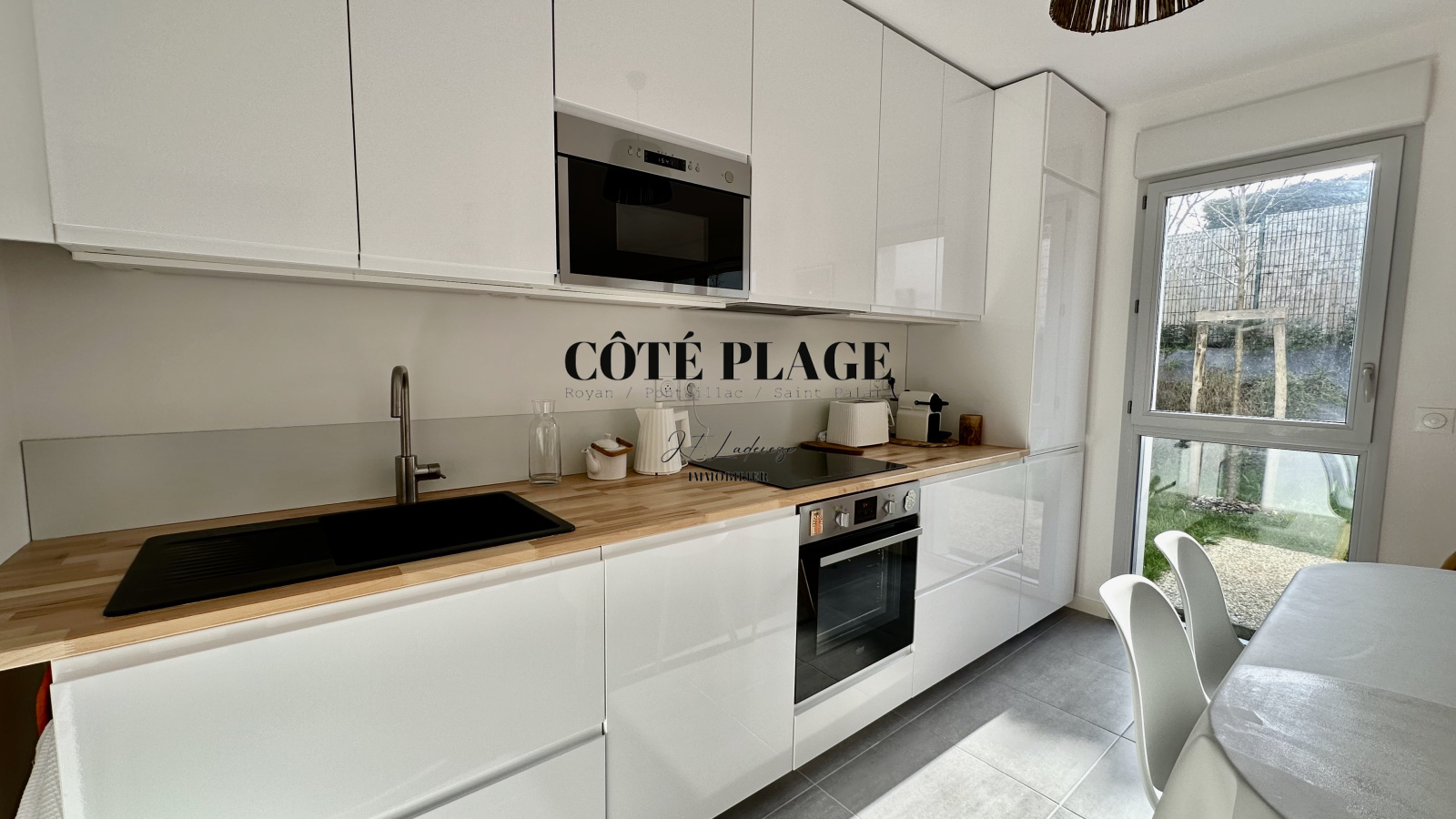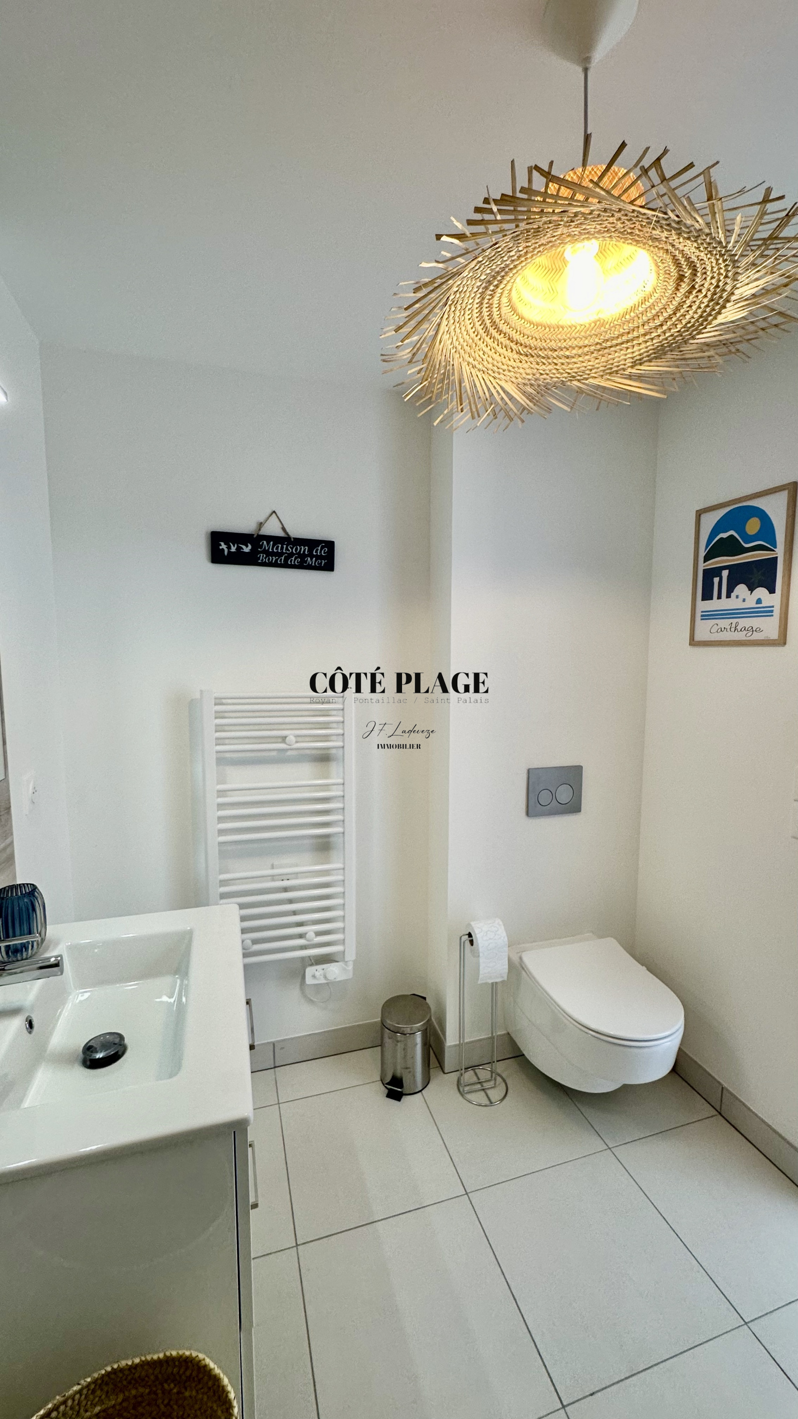 COTÉ PLAGE IMMOBILIER vous présente à la location de vacances une maison à étage neuve d'environ 89 m2 avec 4/6 couchages composé d'une entrée , d' un salon/séjour avec cuisine neuve entièrement équipée et aménagée ouvrant sur une terrasse et jardinet, salle de bains avec toilettes, à l'etage supérieur : un dégagement desservant 3 chambres (2 lits 160cm + 1 lit 140cm) avec rangement , salle d'eau , wc - une place de parking privative -