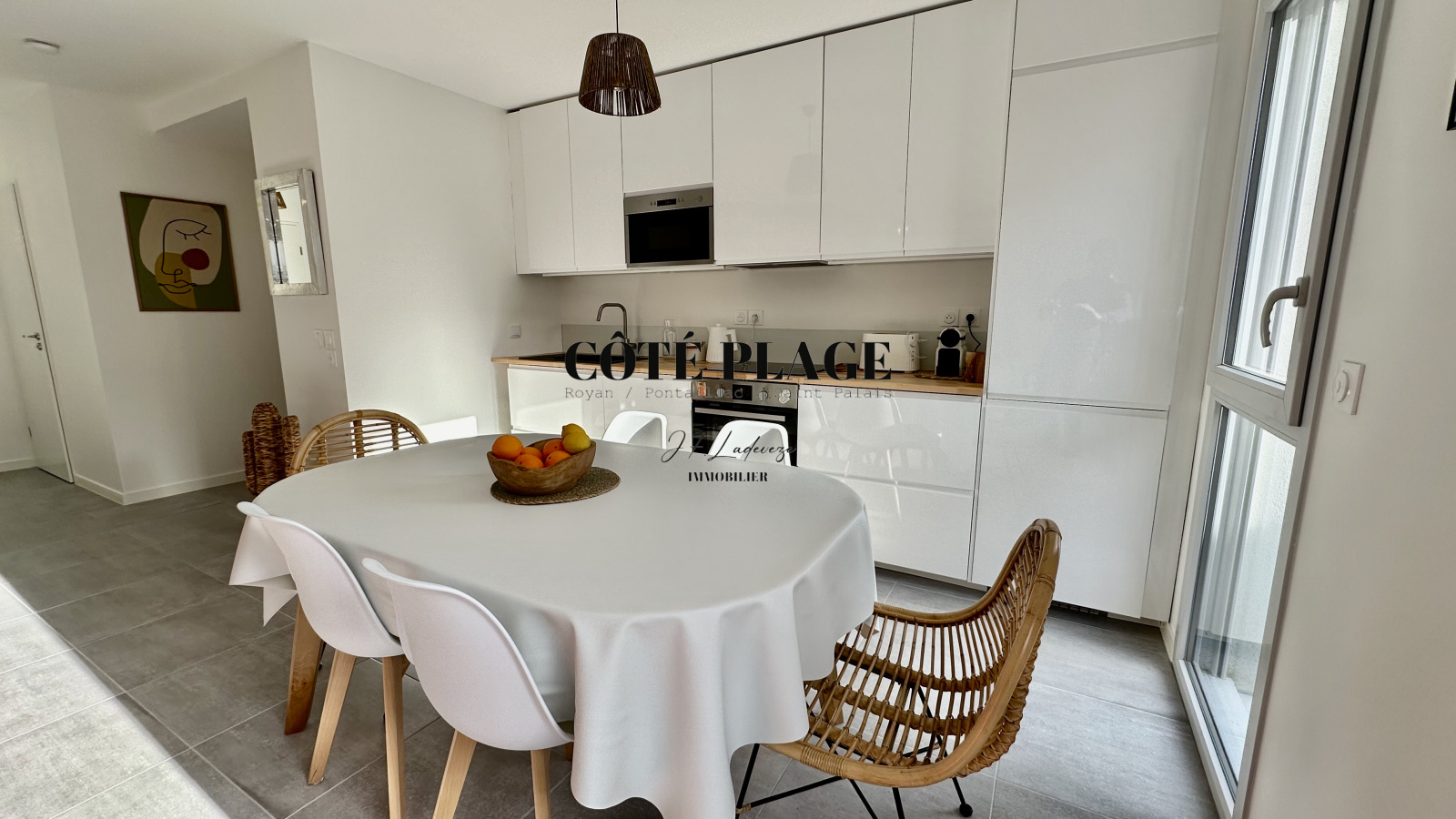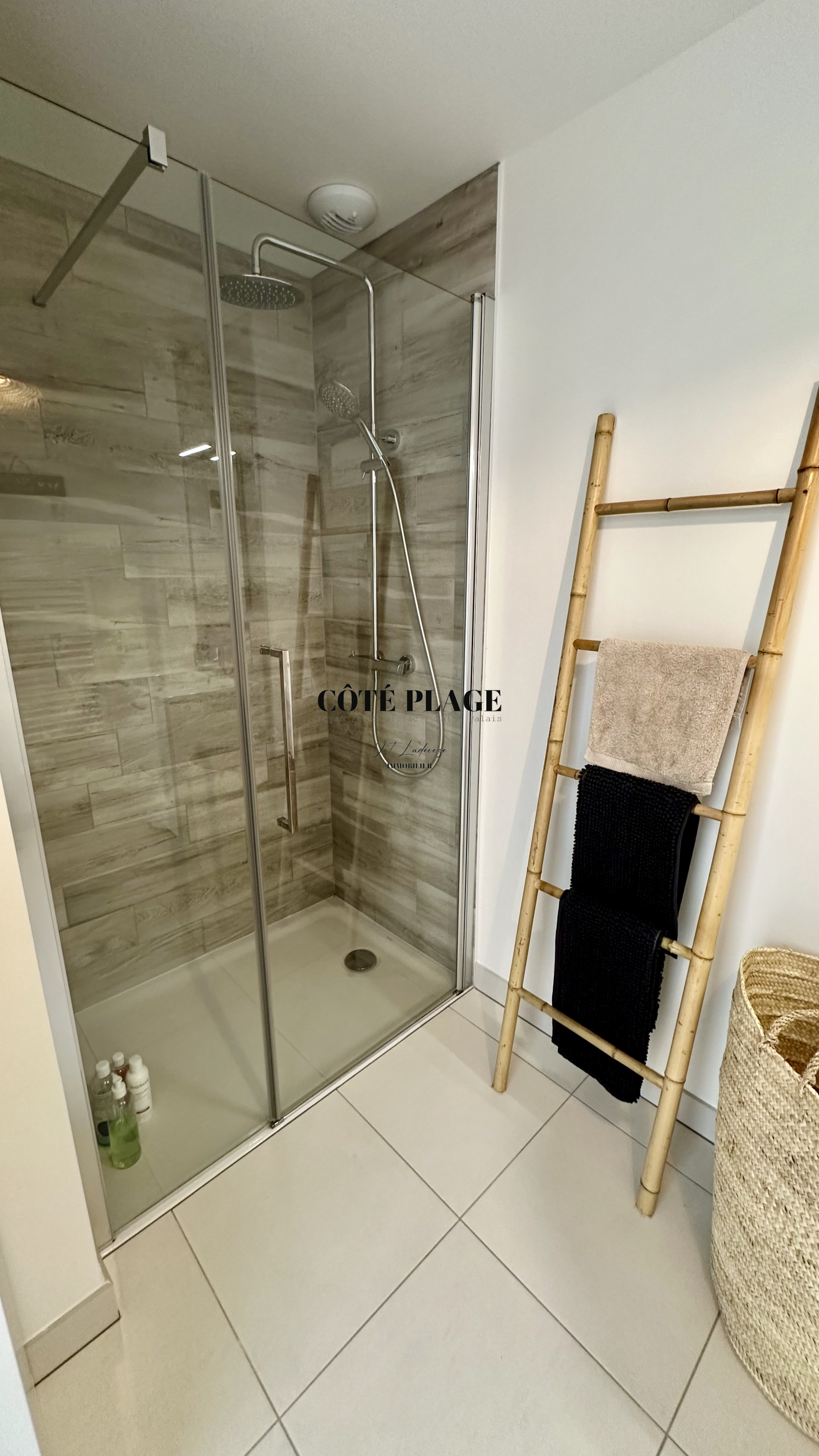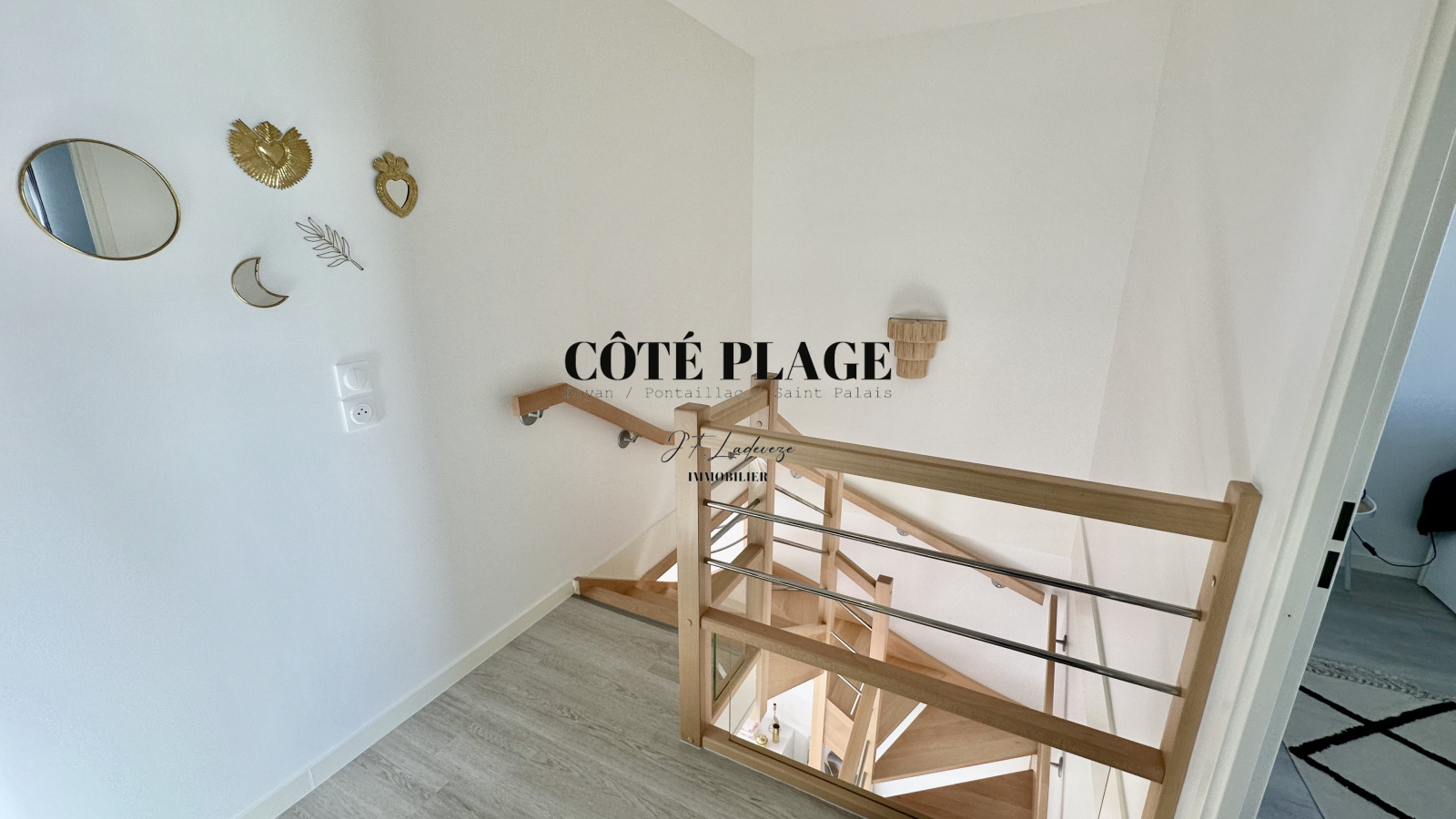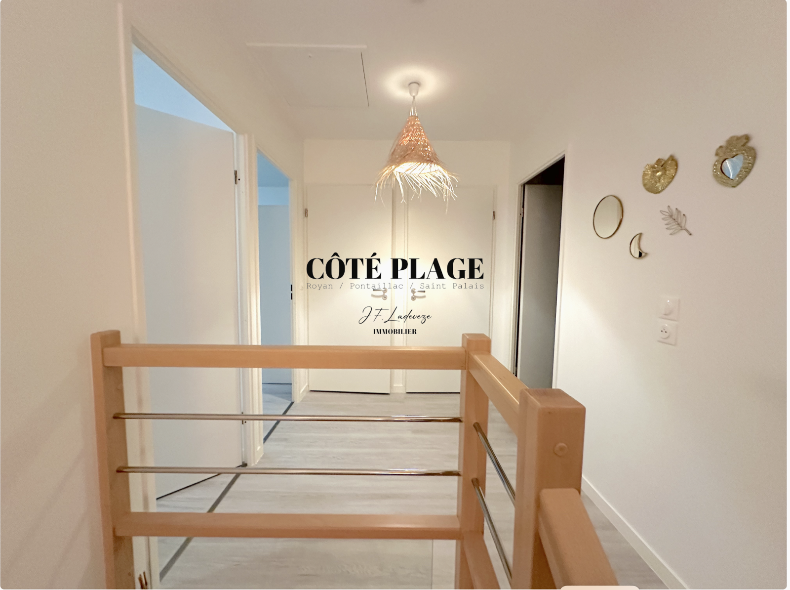 COTÉ PLAGE IMMOBILIER vous présente à la location de vacances une maison à étage neuve d'environ 89 m2 avec 4/6 couchages composé d'une entrée , d' un salon/séjour avec cuisine neuve entièrement équipée et aménagée ouvrant sur une terrasse et jardinet, salle de bains avec toilettes, à l'etage supérieur : un dégagement desservant 3 chambres (2 lits 160cm + 1 lit 140cm) avec rangement , salle d'eau , wc - une place de parking privative -