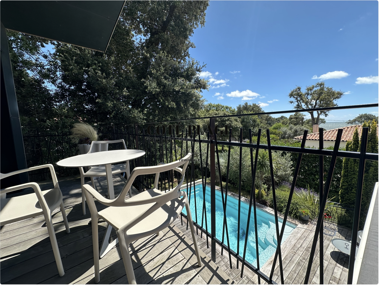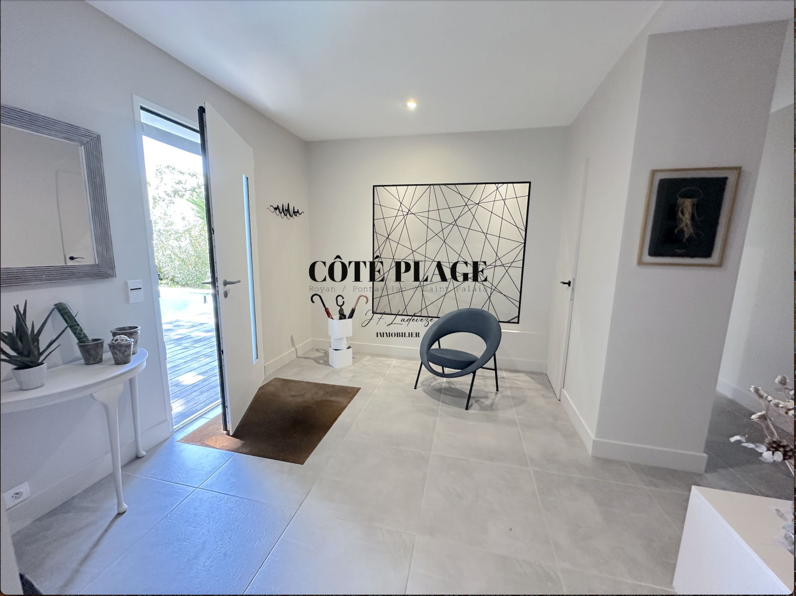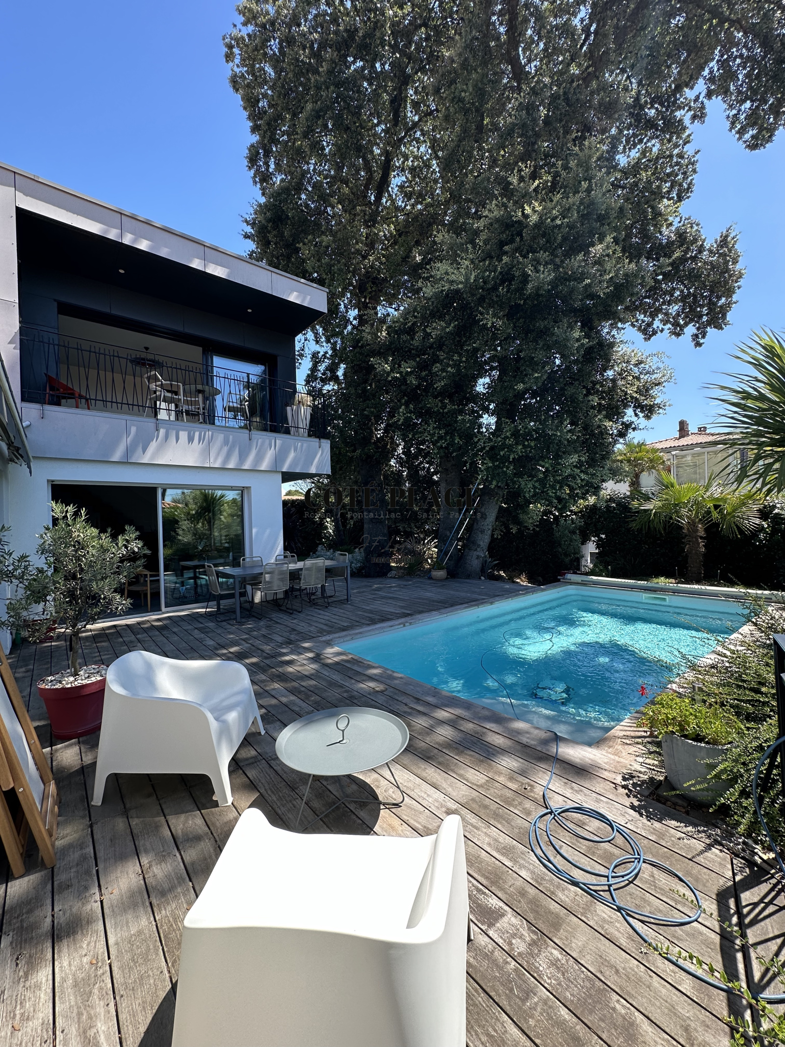 DANS NOTRE GAMME PRESTIGE CÔTÉ PLAGE IMMOBILIER VOUS PROPOSE pour les vacanses une villa avec piscine chauffée, située à 100 m d'une petite crique sauvage nichée sous les chênes verts de notre côte royannaise, cette villa est composée d'un grand séjour , d'une cuisine entièrement équipée , d'un salon TV avec terrasse vue océan, 5 chambres, salle de bains, salle d'eau et toilettes, garage et parking extérieur complète la propriété. Villa très confortable et de bon standing, MIS A DISPOSITION : WIFFI - TRANSATS - PLANCHA GAZ - DRAPS ET LINGE DE MAISON. VILLA DISPONIBLE JUILLET / AOUT AU PRIX DE 4050 € LA SEMAINE - IDÉAL 8 PERSONNES - NOS AMIS LES BÊTES NE SONT PAS ACCEPTÉS, SINCEREMENT DÉSOLÉ.