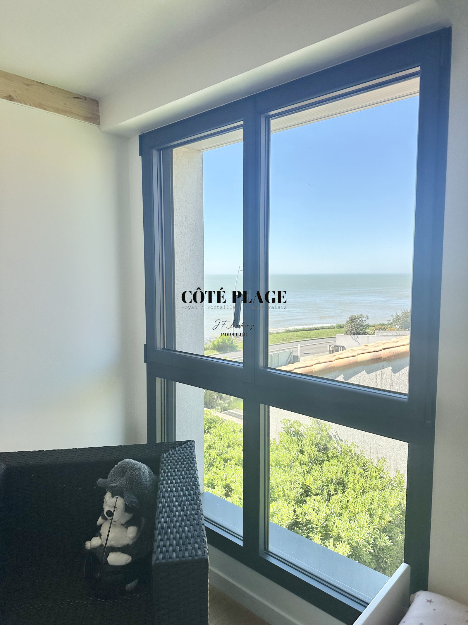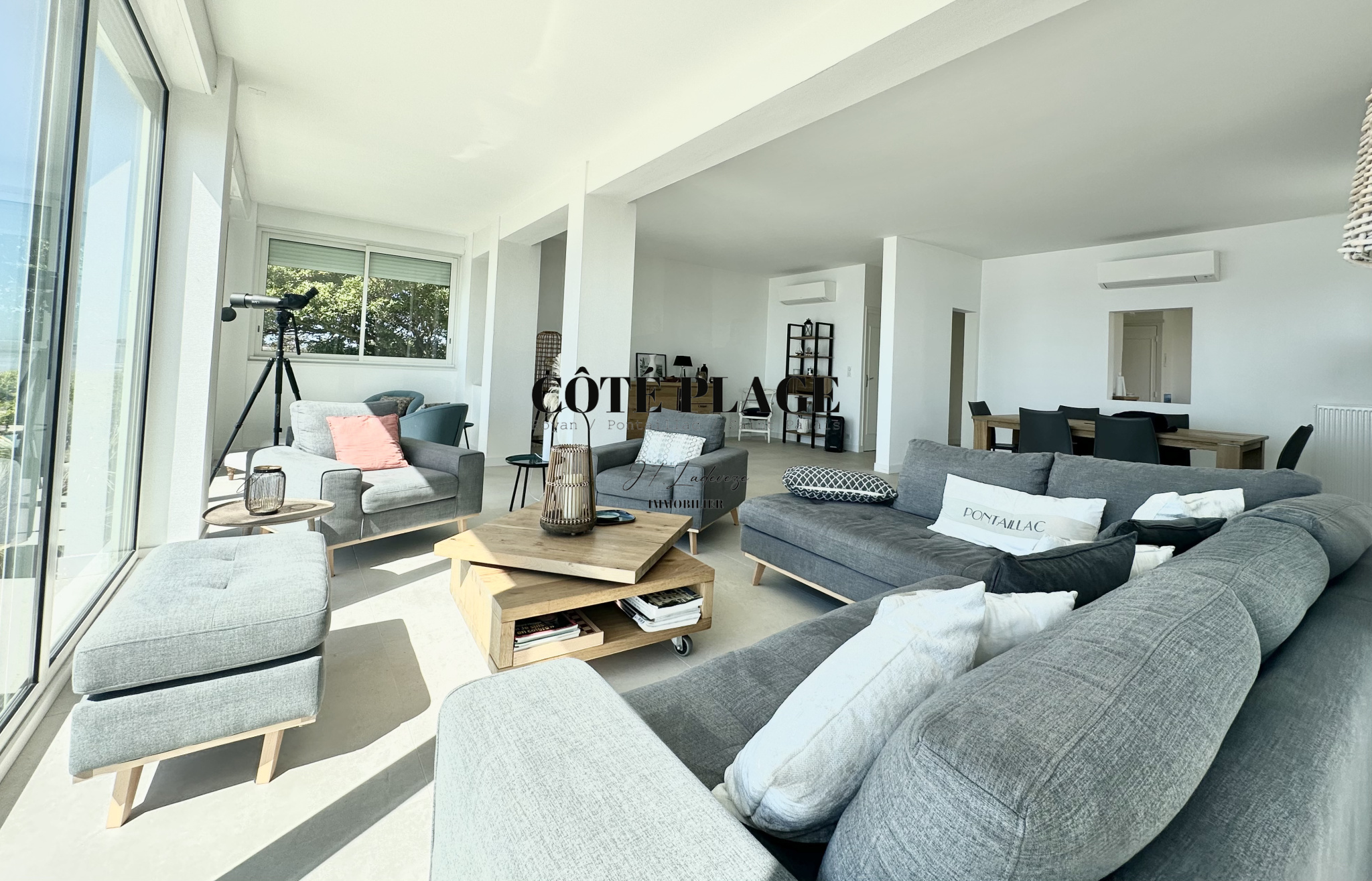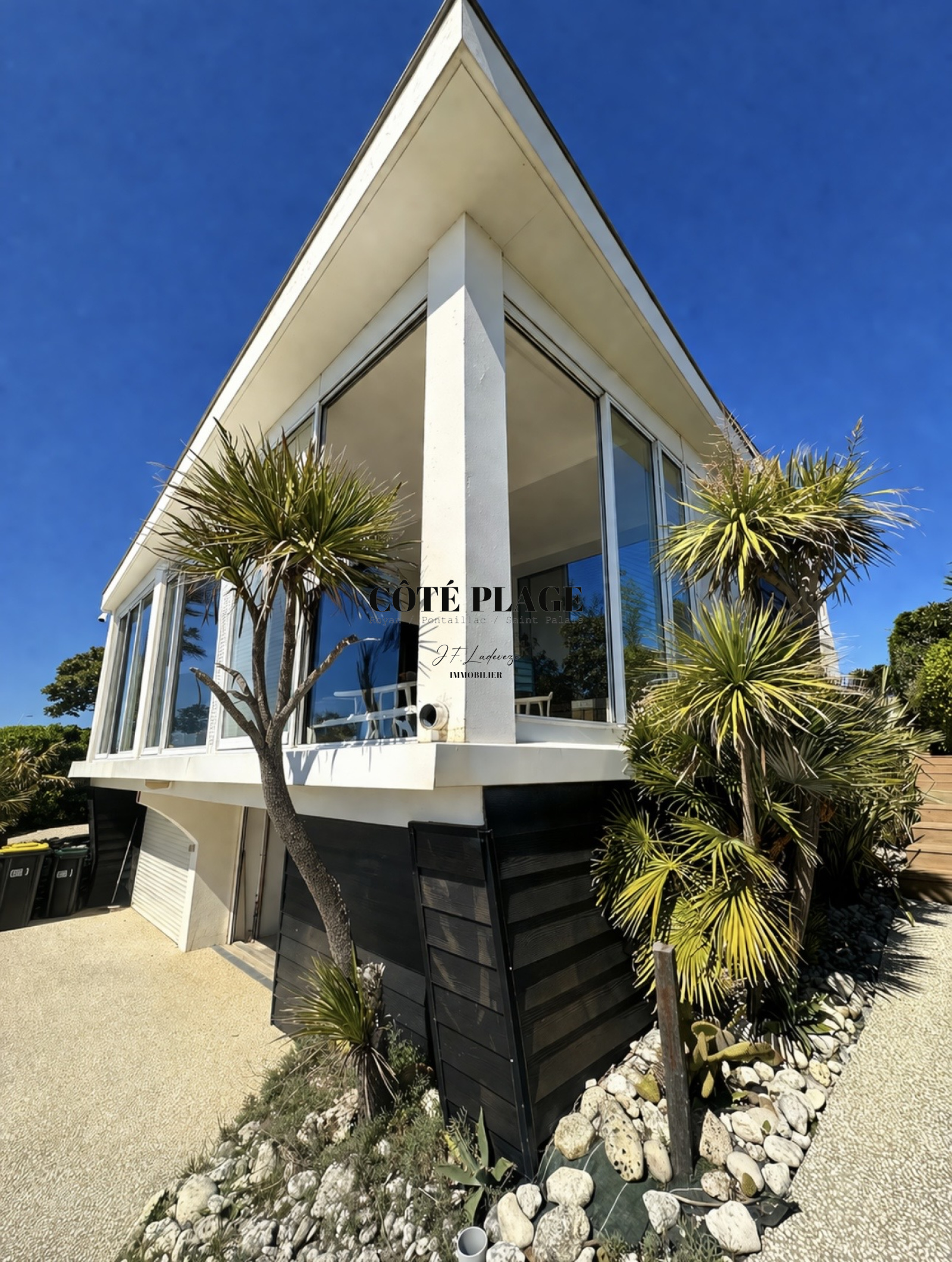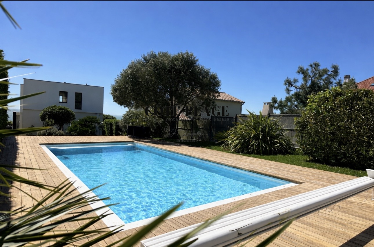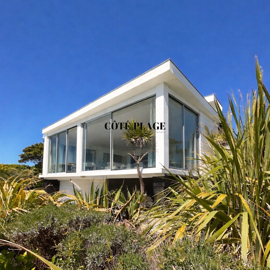 Surplombant le paysage, COTÉ PLAGE IMMOBILIER vous invite à découvrir cette villa contemporaine offre un cadre paisible avec une vue panoramique sur l’océan, idéale pour se détendre et profiter du moment.