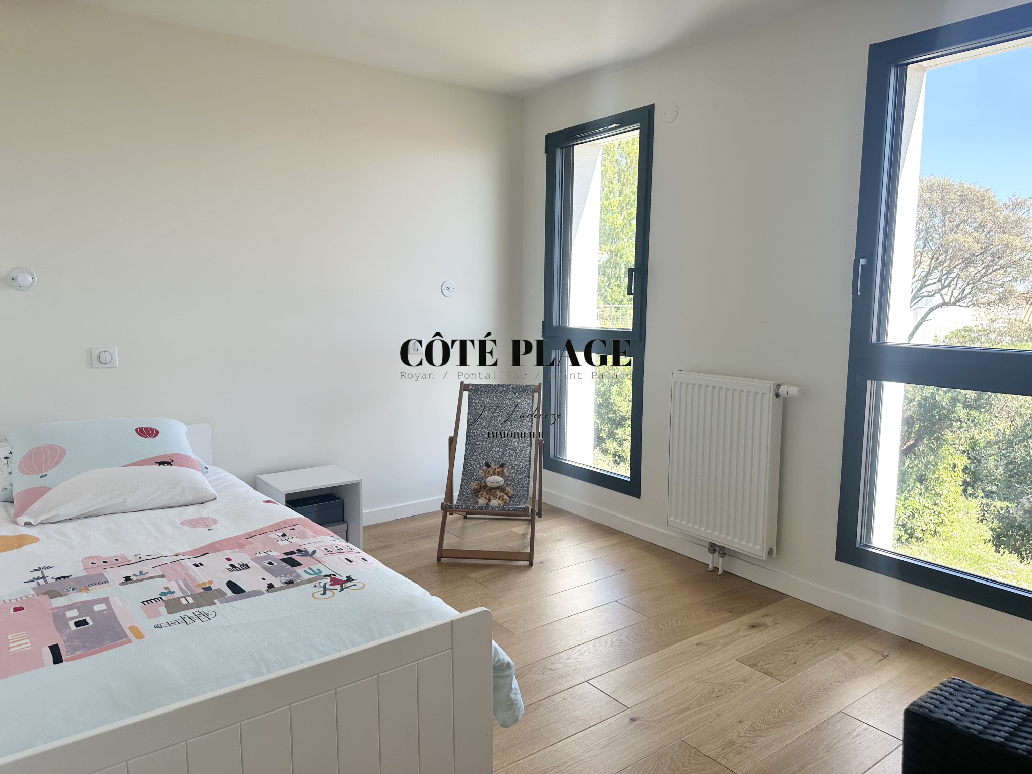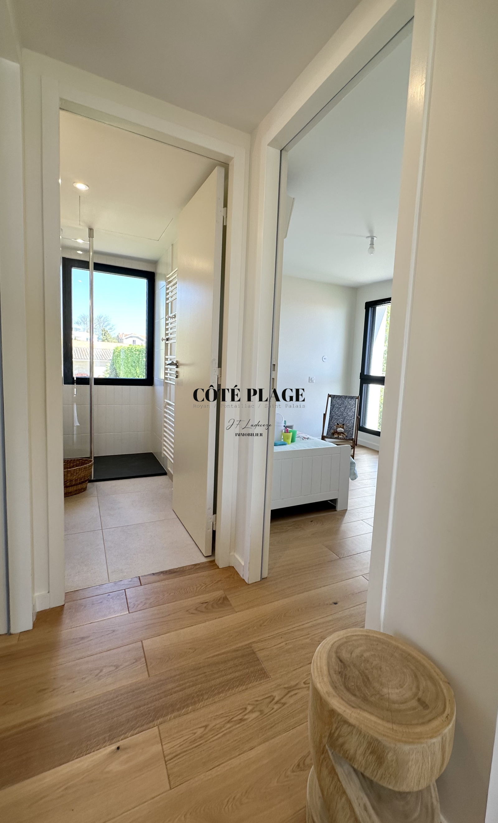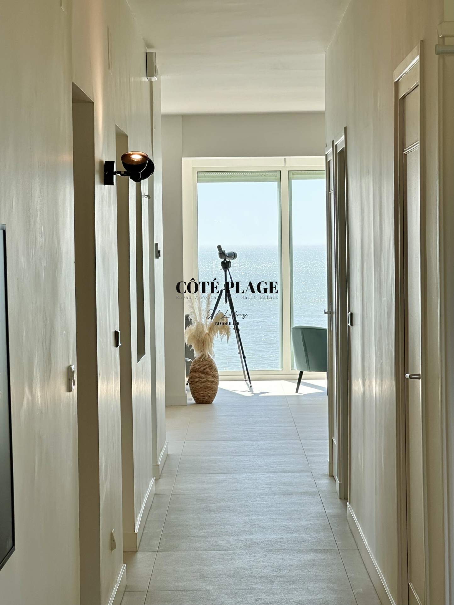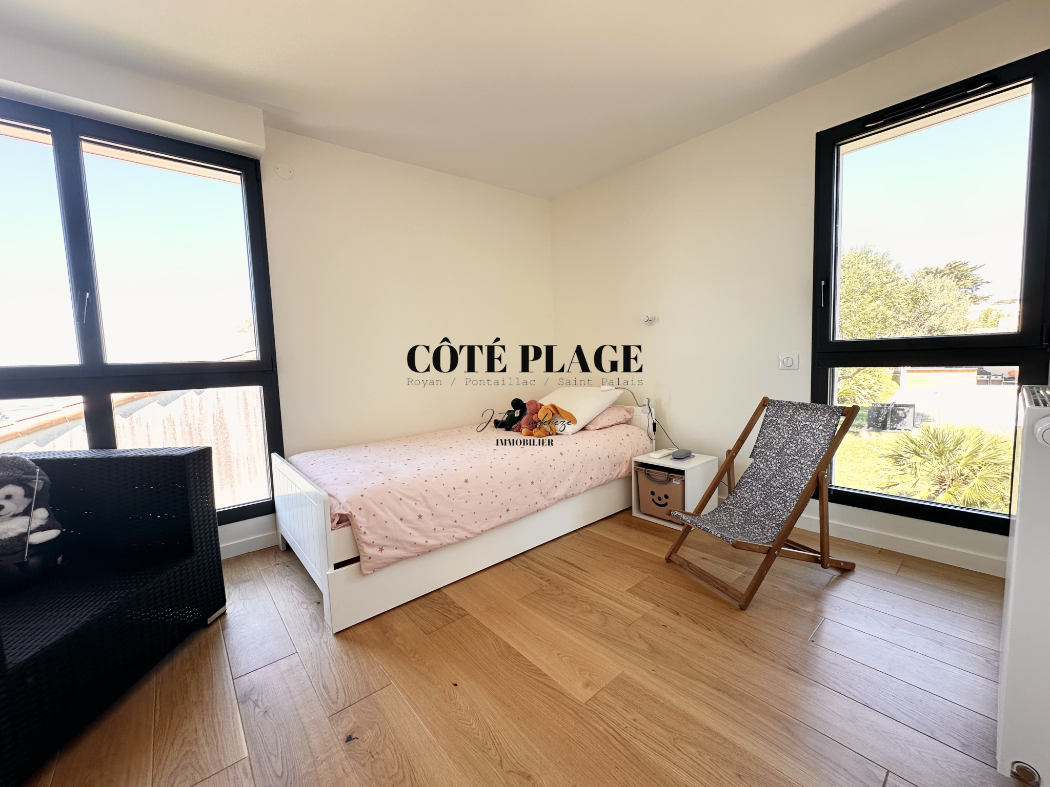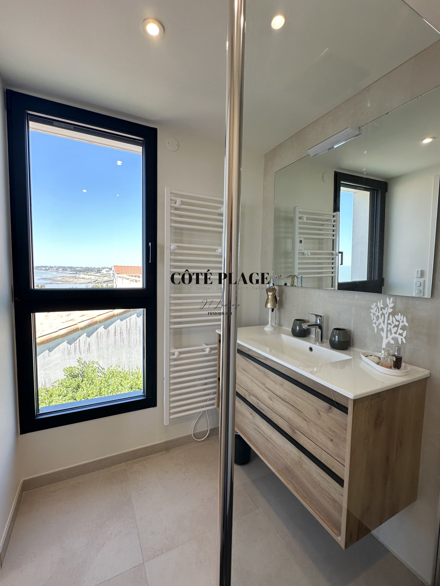 Surplombant le paysage, COTÉ PLAGE IMMOBILIER vous invite à découvrir cette villa contemporaine offre un cadre paisible avec une vue panoramique sur l’océan, idéale pour se détendre et profiter du moment.