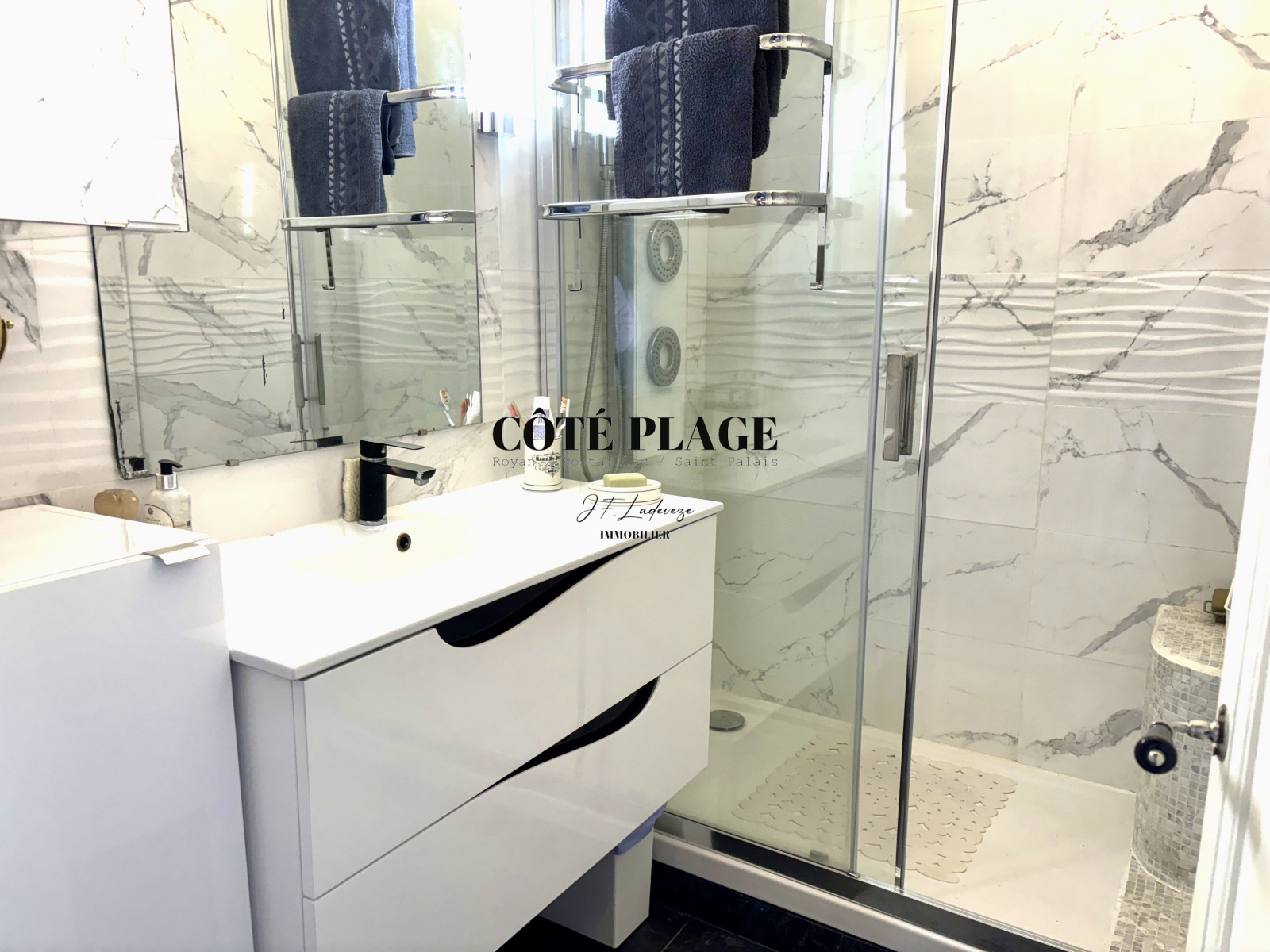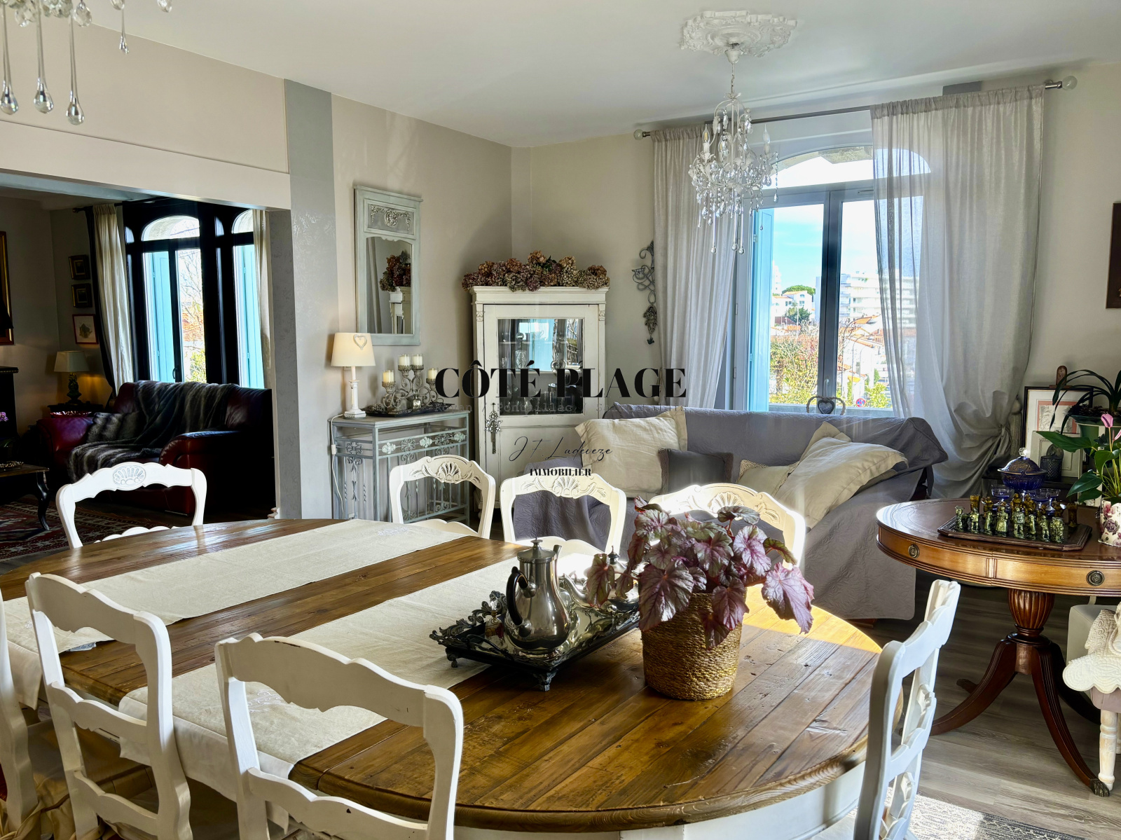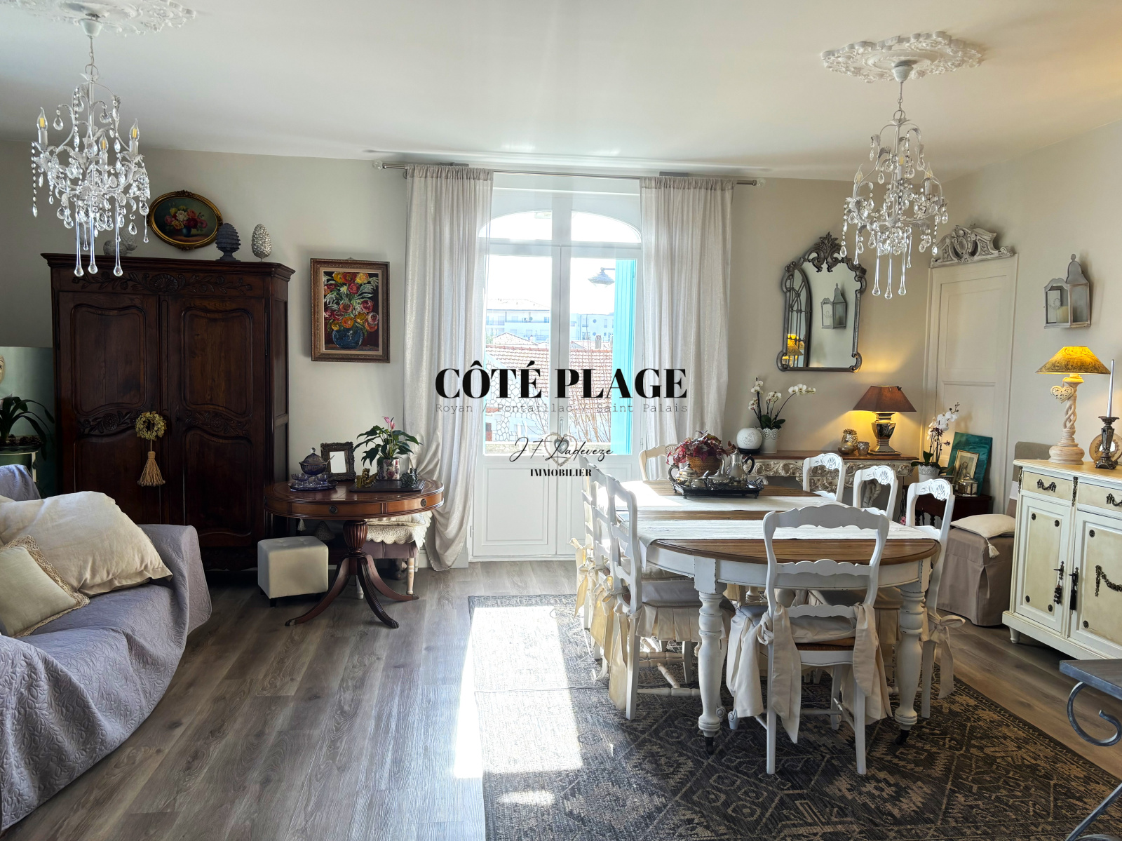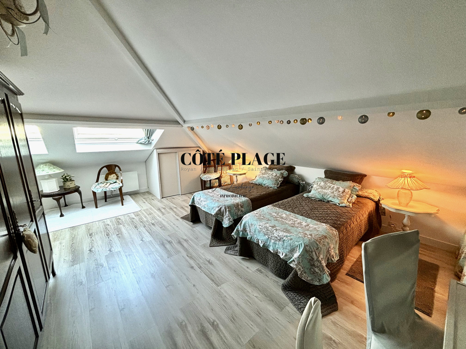 CÔTÉ PLAGE IMMOBILIER ROYAN PONTAILLAC, vous présente à la vente dans le secteur du MARCHÉ CENTRALE ROYANNAIS, ce magnifique appartement en duplex de 180 m2 avec ASCENSEUR et parking privé, composé de la manière suivante : entrée; séjour double ouvrant sur balcon, cuisine équipée, chambre avec dressing, salle d'eau et toilettes - A L'ÉTAGE : vaste palier, 2 chambres, 1 bureau, atelier, salle d'eau / Wc . Appartement rénové , lumineux avec une excellente situation centre ville .