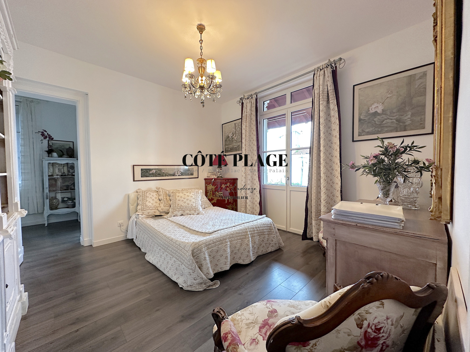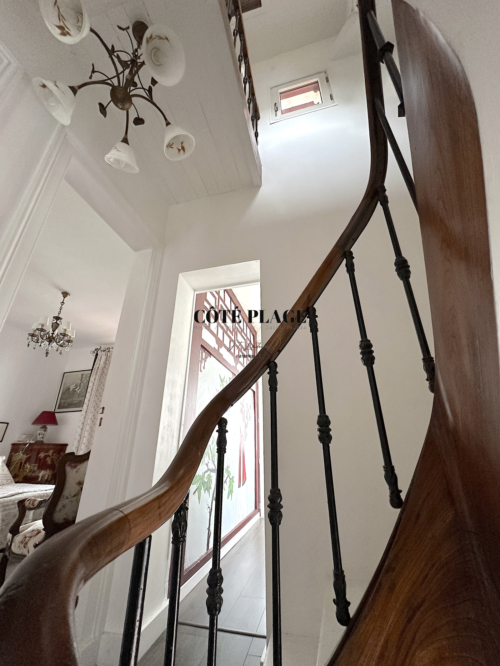 on accède à l'étage par un magnifique escalier desservant la suite parentale et ses deux boudoirs offrant des échappées sur l'océan depuis sa terrasse, un dressing, une salle de bains et une deuxième chambre complètent harmonieusement l'ensemble, l'étage supérieur vous permet de prendre de la hauteur avec ses deux autres chambres mansardées, s'ajoute un garage, une cave sans oublier son jardin clos et arboré échappant aux regards de la rue -