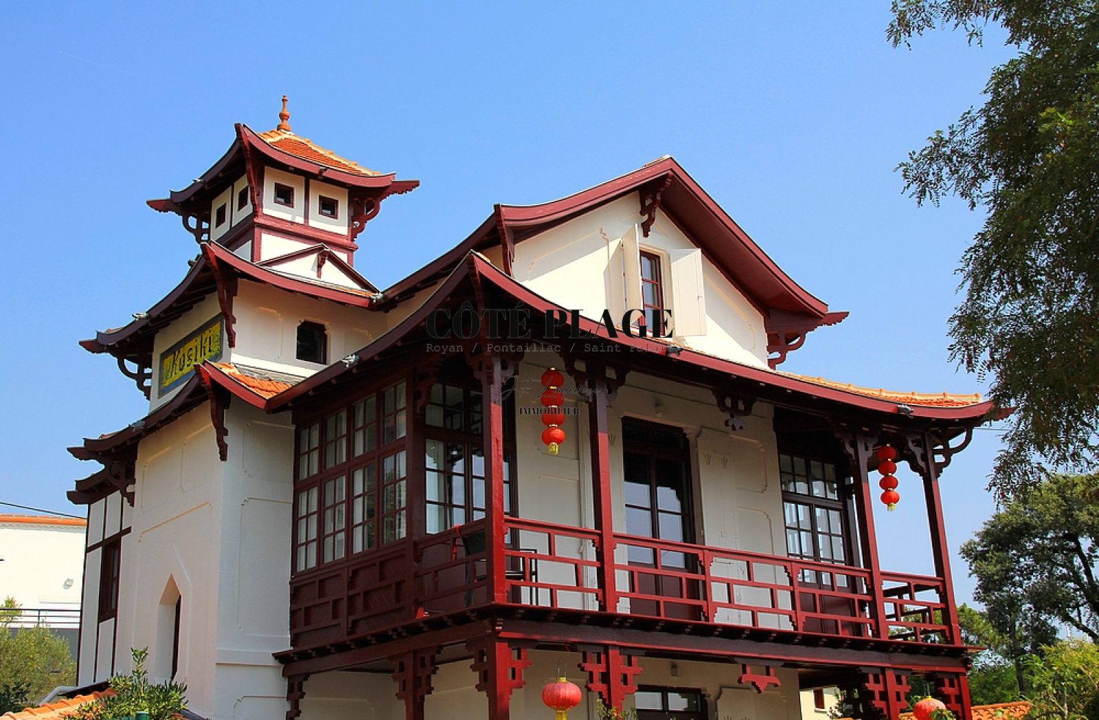 Vous serez charmés par son style très particulier aux airs de pagode qui se distingue par sa couleur rouge japonais, par sa hauteur sur 3 niveaux ses formes ou ses descentes d'eau qui se sont muées en gargouilles en zinc prenant la forme de têtes de dragons crachant de l'eau dès qu'il pleut.