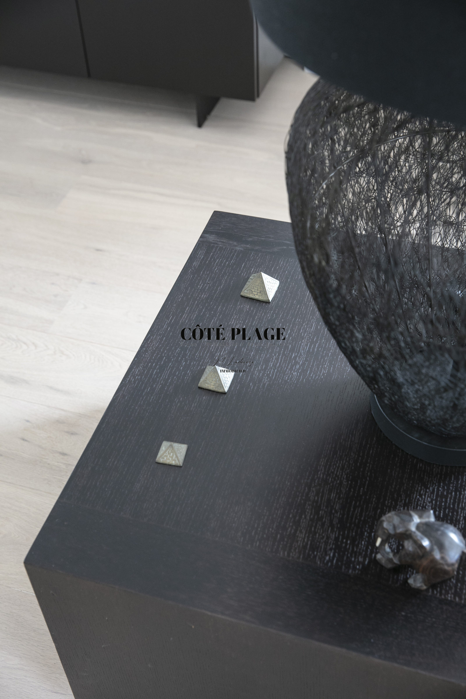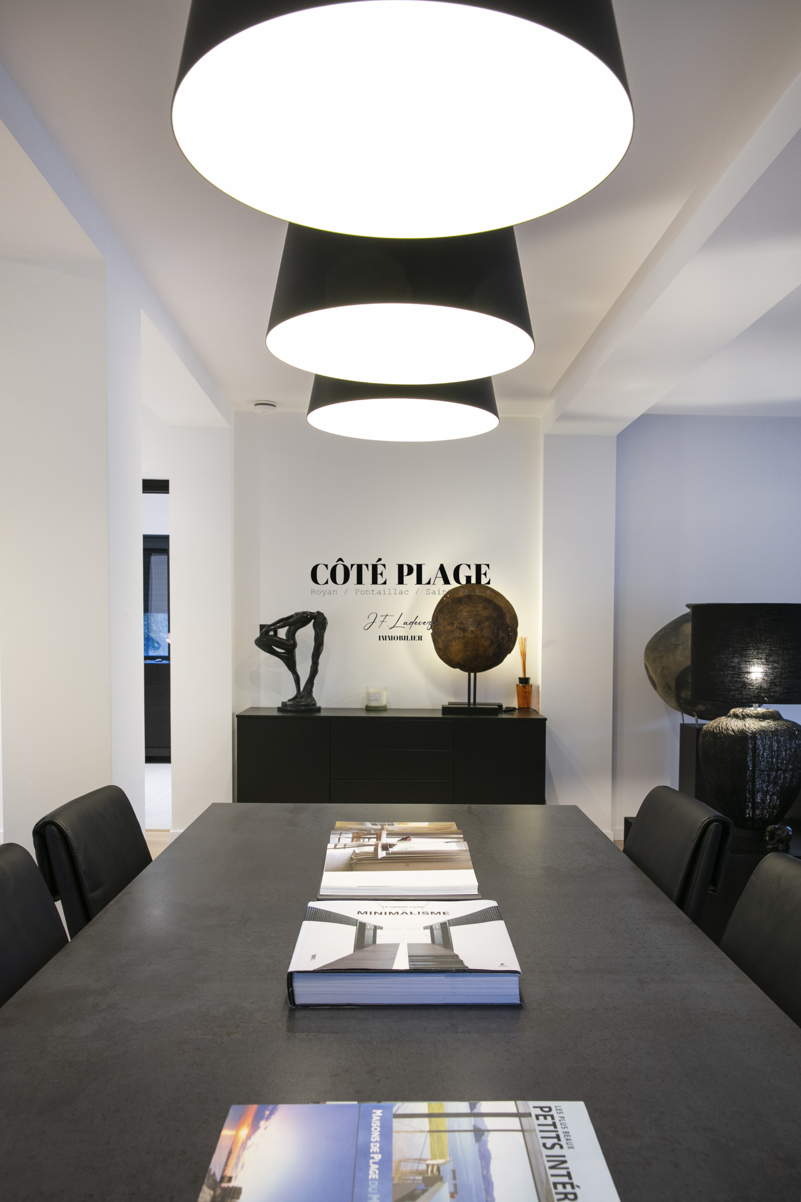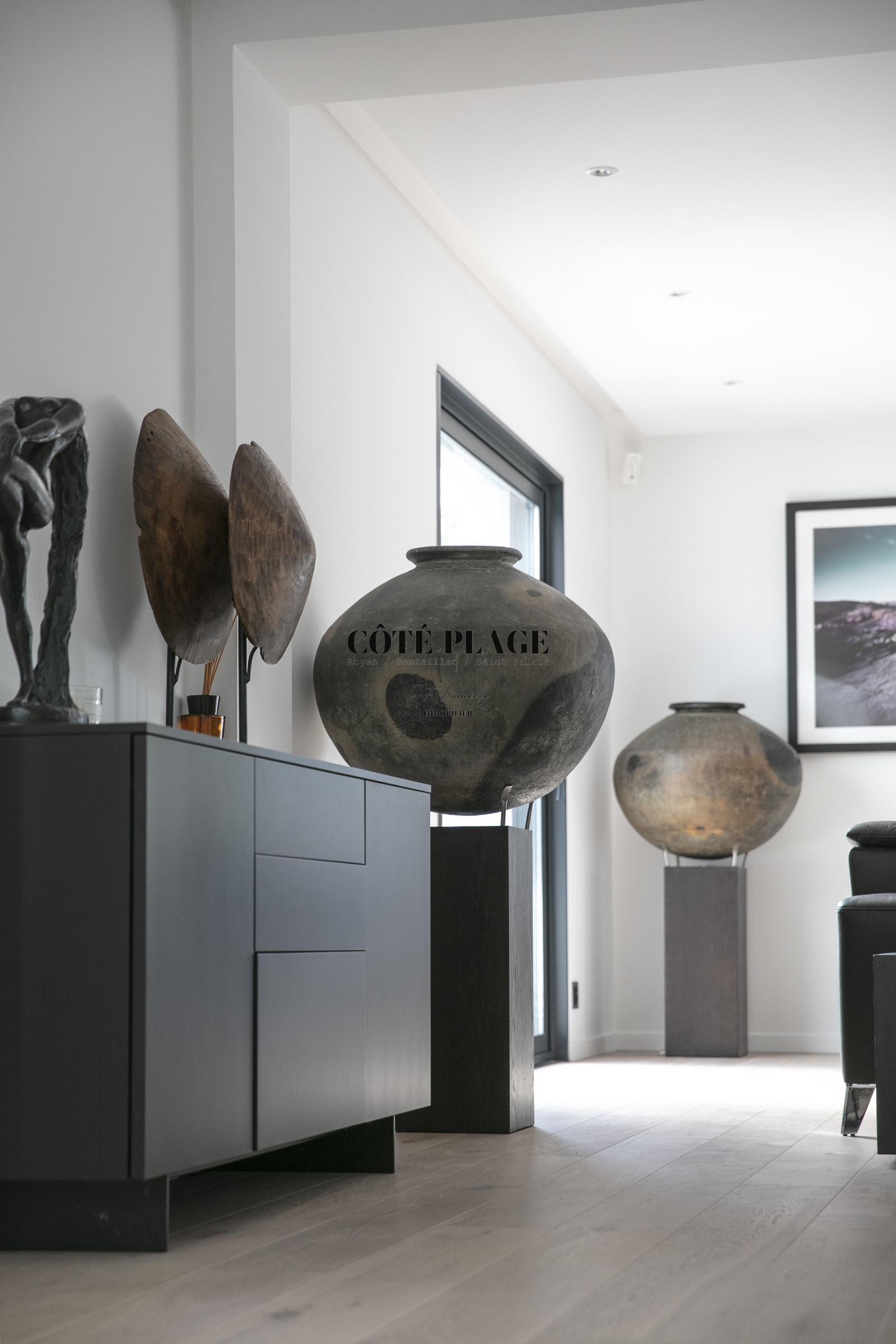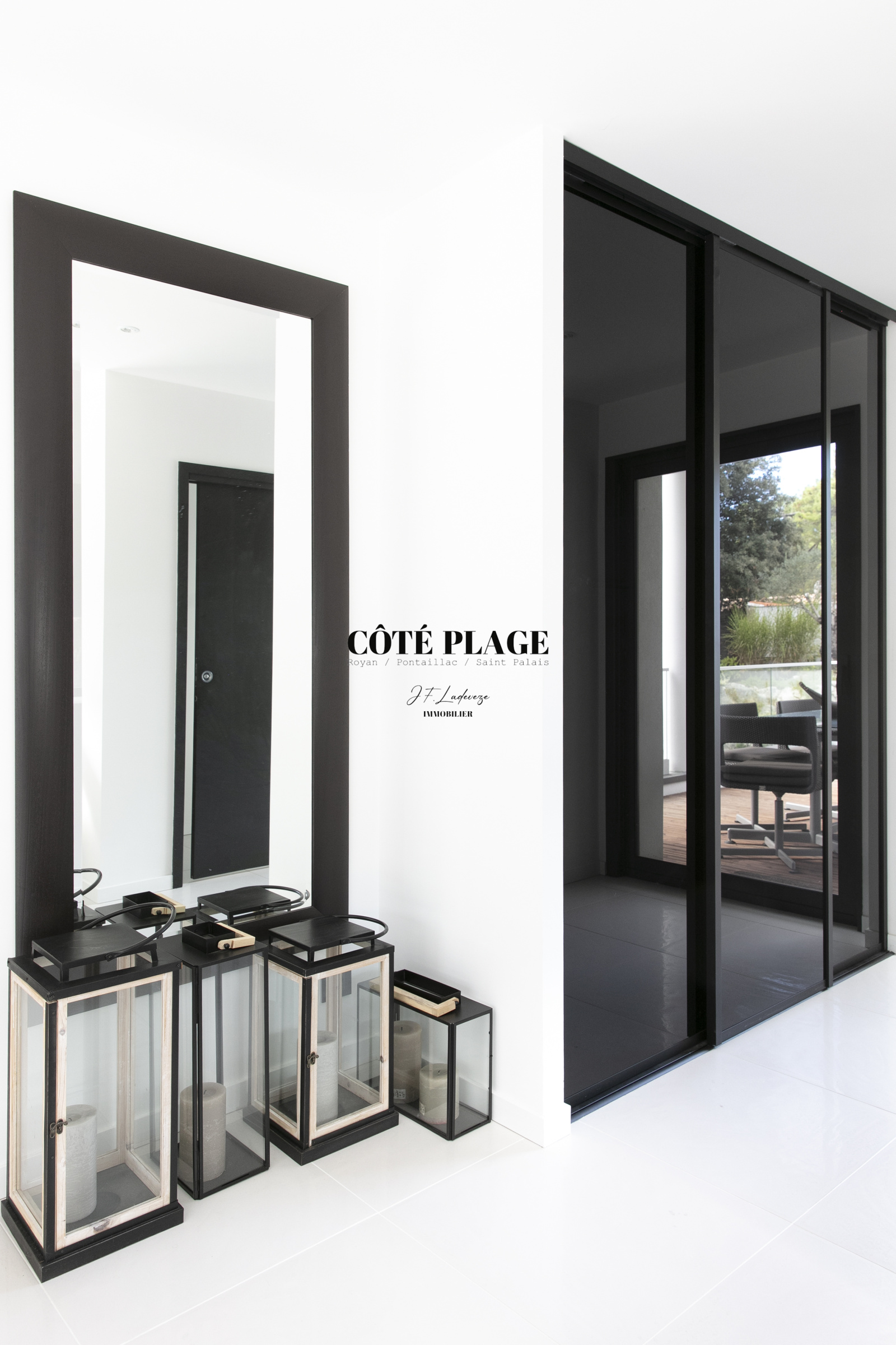 Au rez-de-chaussée, un deuxième salon, propice à la détente et équipé d'une télévision, ainsi qu'un bureau et des espaces nuit, s'articulent autour d'un jardin intérieur. Vous y trouverez une suite parentale dotée d'un dressing et d'une salle d'eau privative, en plus de deux autres chambres qui partagent une salle d'eau et des toilettes indépendantes. Chaque chambre dispose d'un accès direct au jardin et/ou à une terrasse. Ce niveau est également complété par une buanderie et un garage double.