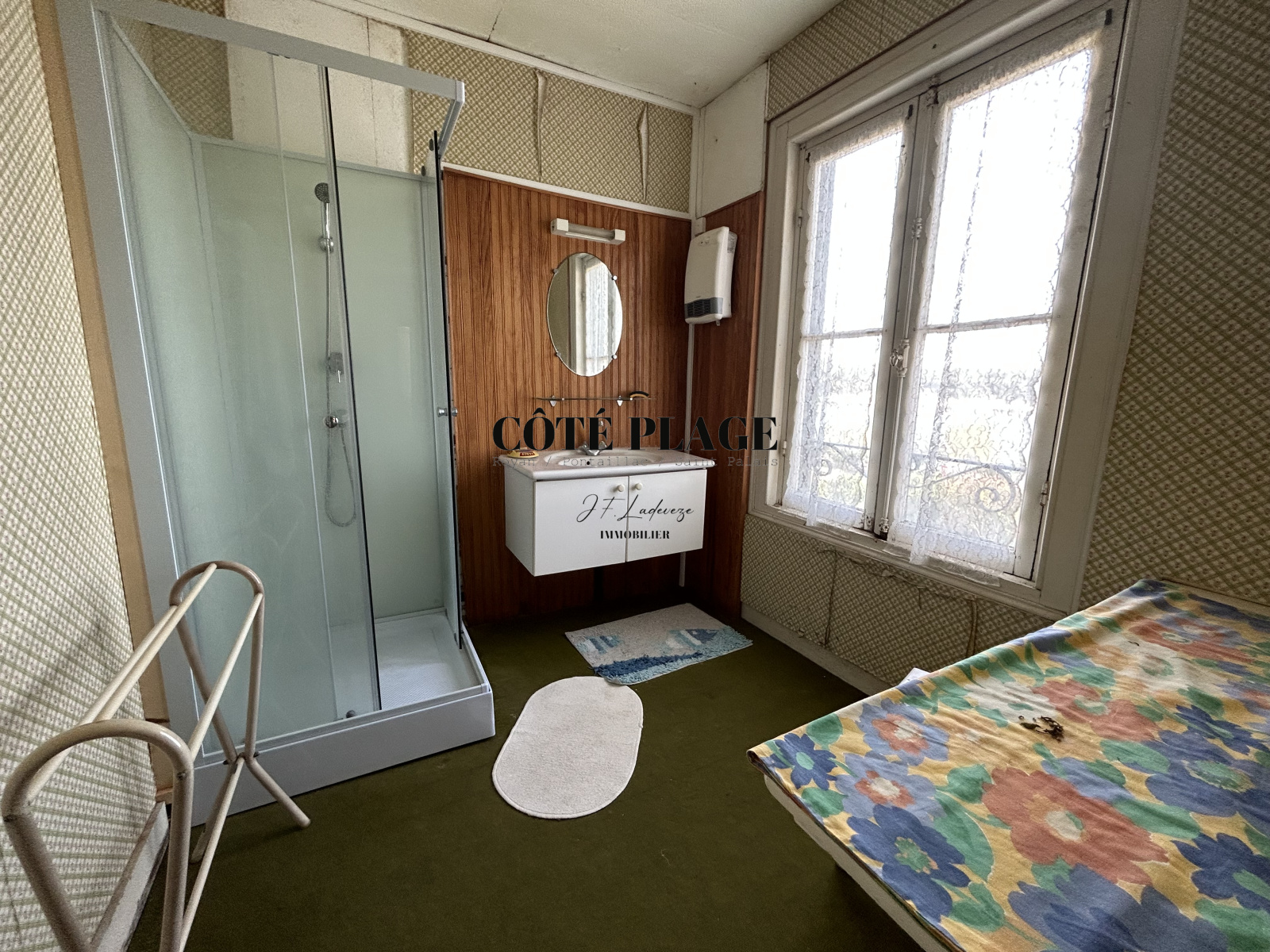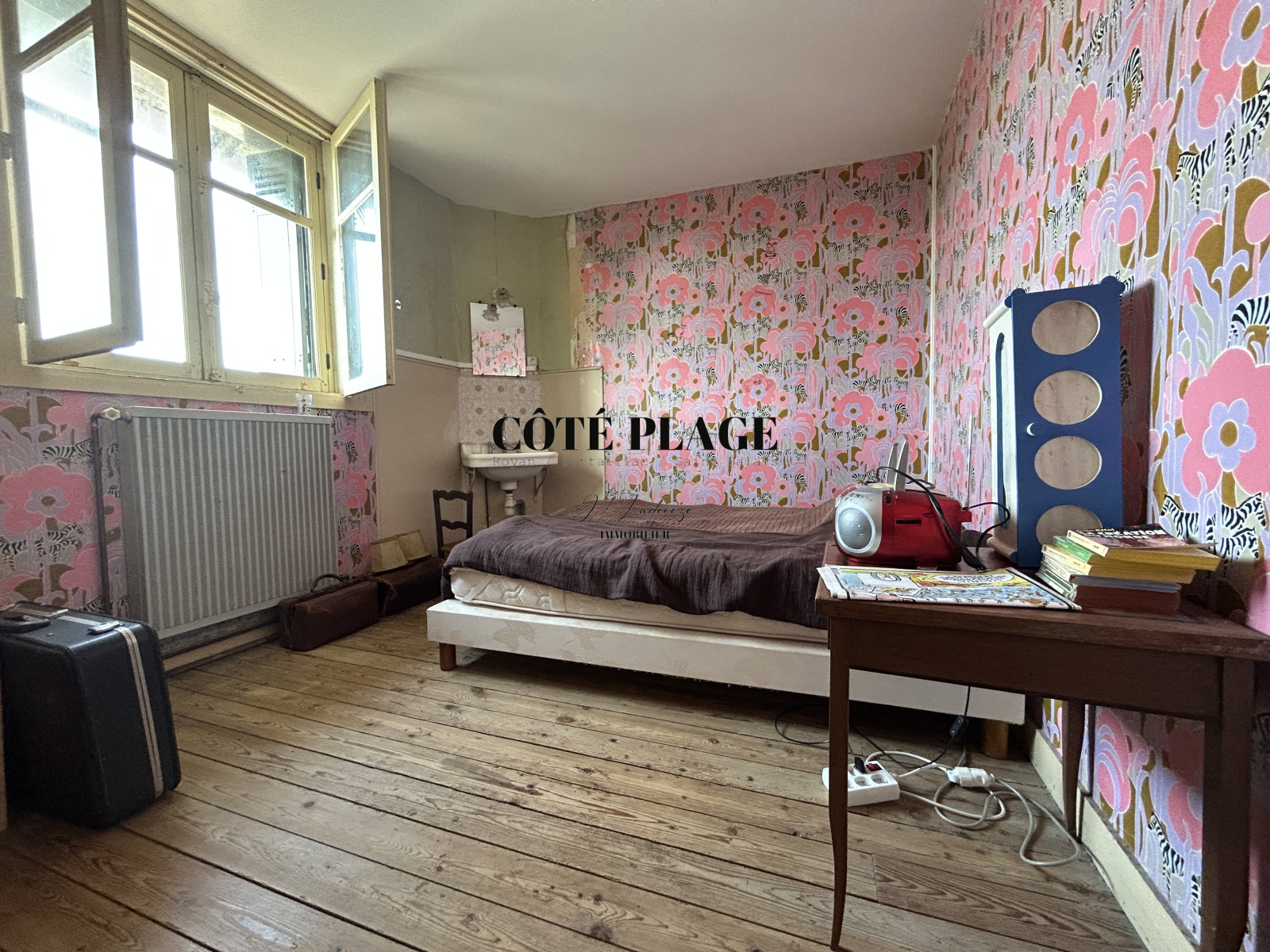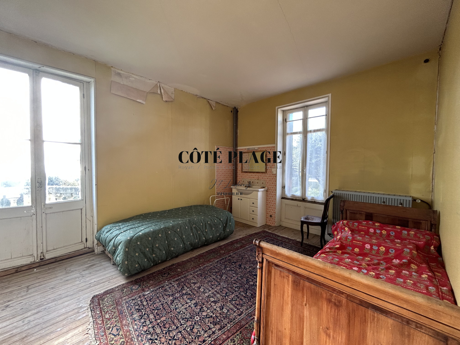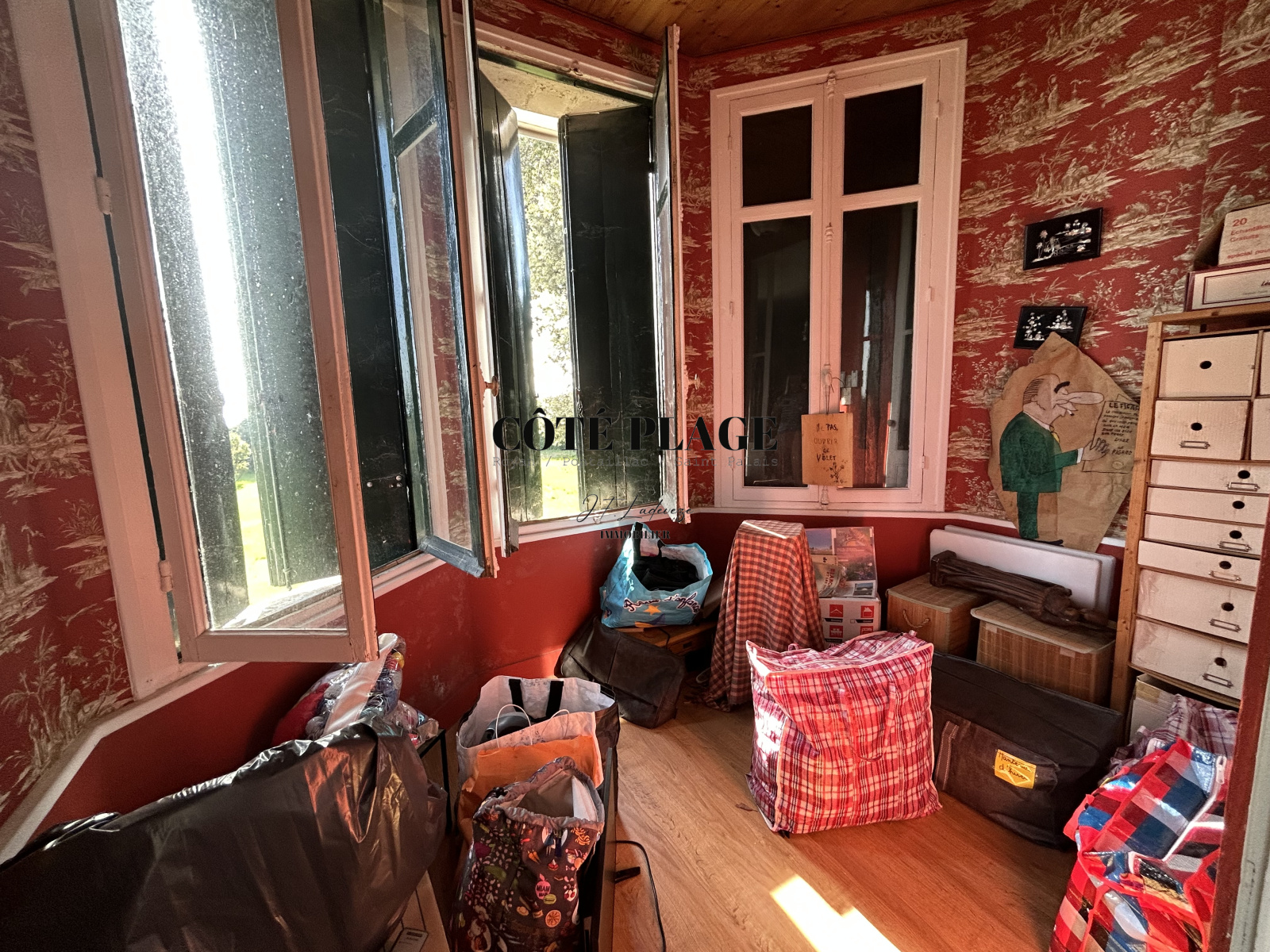 Située dans un quartier très prisé, à proximité de la plage de Nauzan & de la réputée plage du Bureau à SAINT PALAIS sur mer - Villa de 1893 d'une belle architecture qui évoque davantage un petit manoir avec son toit d'ardoise à croupes et à égouts retroussés, elle fait partie des premières villas construites sur le secteur , son élégance se distingue également par sa façade agrémentée d'un bow window à pans coupés, ses murs en pierres de taille et en moellons enduits et ses fenêtres groupées par deux sous le même linteau et dotées de garde corps à balustres -