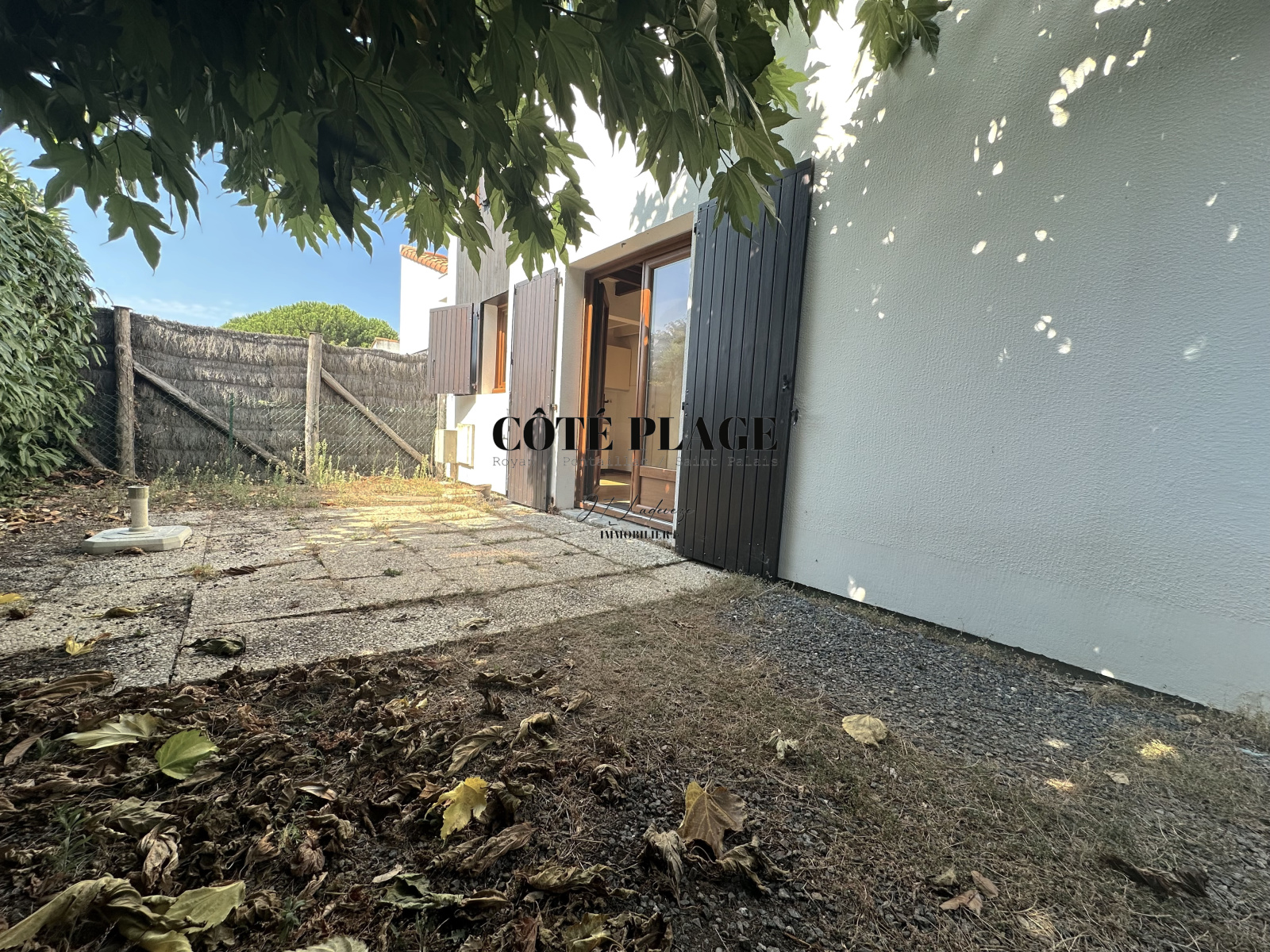 SAINT PALAIS SUR MER - PLATIN - Quartier recherché - à proximité immédiate de sa réputée plage DU PLATIN - maison de vacances en copropriété de 52 m2 exposée (sud-est) composée d' une pièce de vie avec cuisine ouvrant sur un jardin clos avec sa terrasse, une salle de bains , wc séparé, une chambre à l'étage et de nombreux rangements -