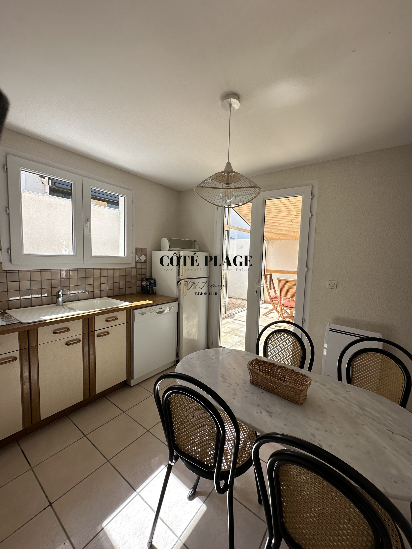 COTÉ PLAGE IMMOBILIER vous présénte une maison de ville avec terrasse en plein coeur de SAINT PALAIS, composée d'un salon, d une cuisine séparée & équipée, une veranda de 15 m2 , une salle d'eau , wc séparé , à l'étage deux chambres. Le tout sur une surface d'environ 63 m2 - Deux patios très agréables & ensoleillés d'environ 38 m2 complètent l'ensemble