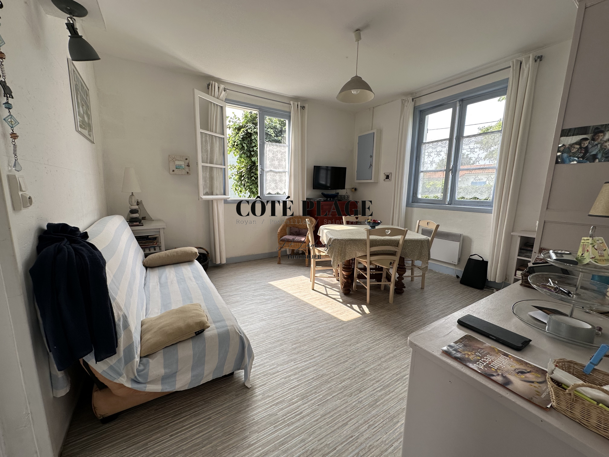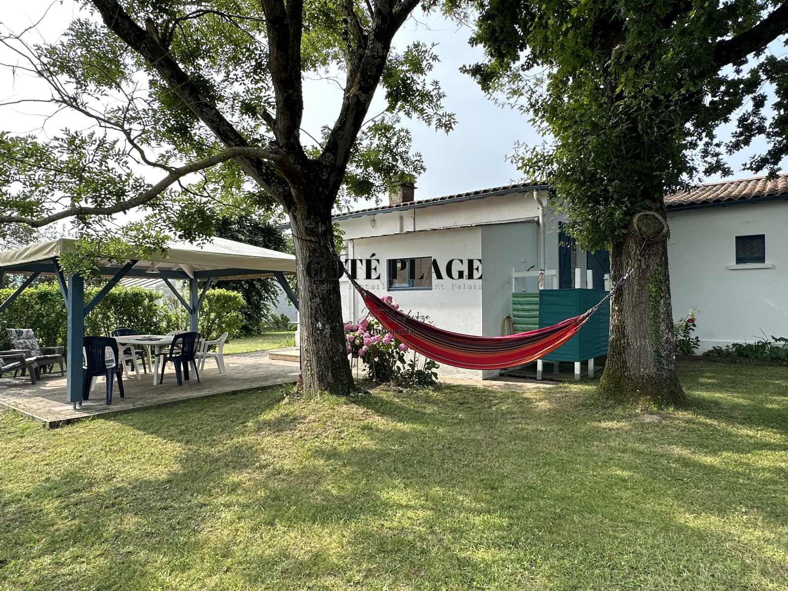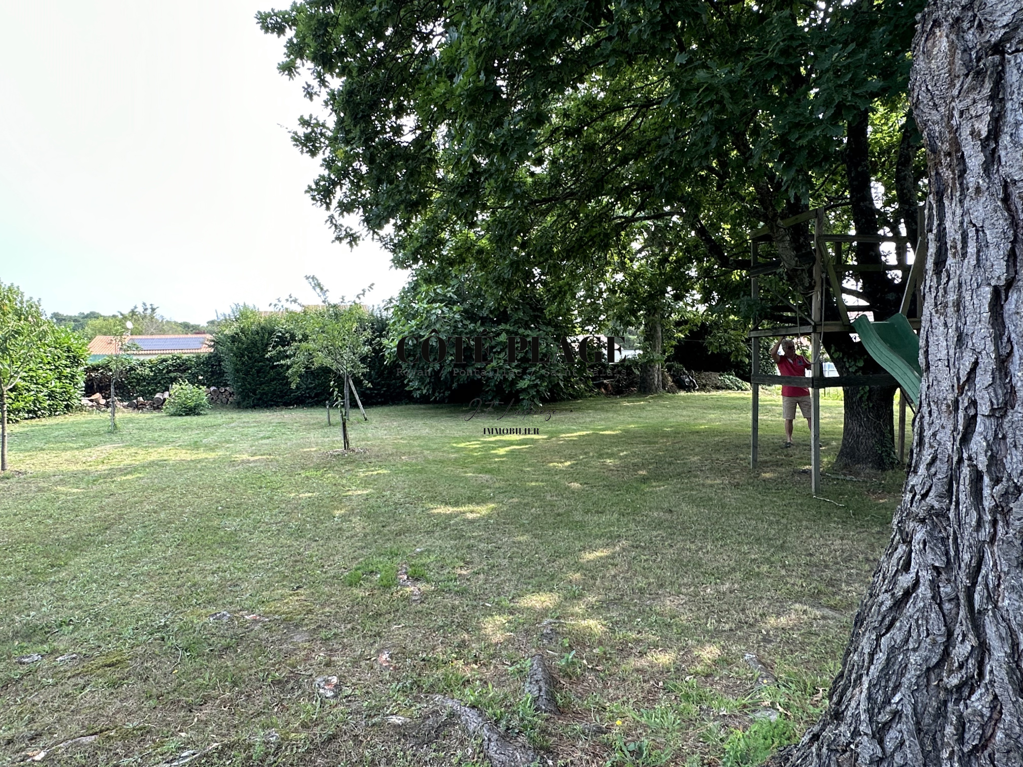 Quartier résidentiel - proche plage du Platin (700 m) & lac de SAINT PALAIS - 1km200 du centre-ville de SAINT PALAIS - Coté plage vous propose à la vente un beau terrain plat & arboré de 1651 m2 avec maison d'été de plain pied environ 50 m2 composée de 3 pièces un séjour, une cuisine aménagée, 2 chambres, wc, salle d’eau extérieure + un studio de 20 m2 avec lavabo et wc -