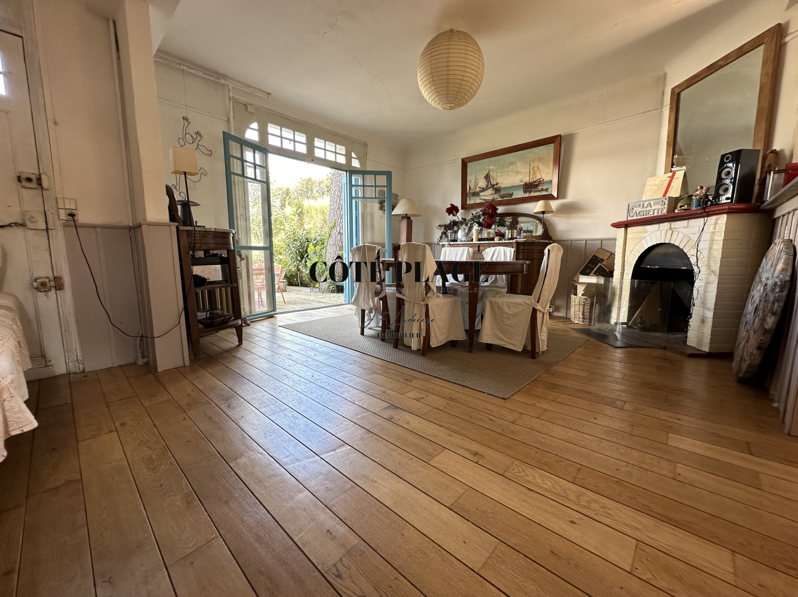 COTÉ PLAGE IMMOBILIER SAINT PALAIS vous propose de découvrir cette charmante villa de 1936 sur trois niveaux 6 pièces d'environ 128 m2 édifiée sur un terrain arboré 434 m2 comprenant : salle à manger avec cuisine ouverte , séjour, une salle d’eau avec wc - l’étage se compose d'un dégagement désservant quatre chambres spacieuses avec point d’eau, une salle de bains/douche- Sous -sol : Chaufferie - cave -