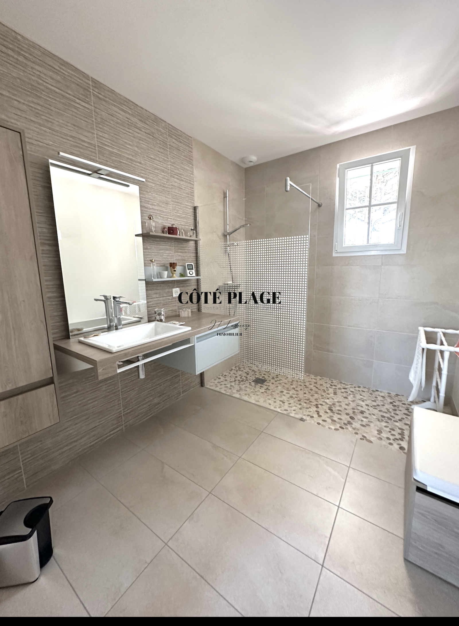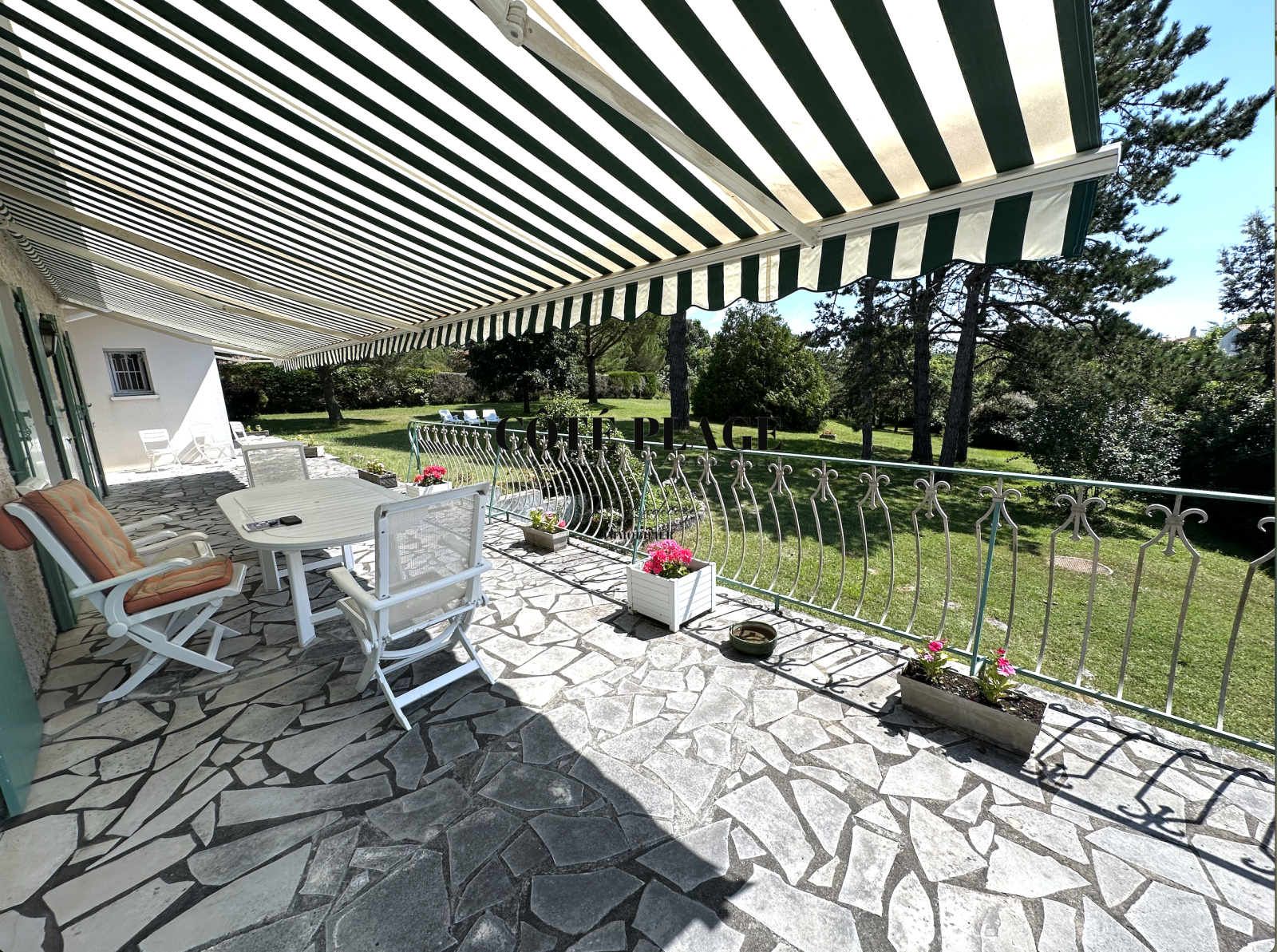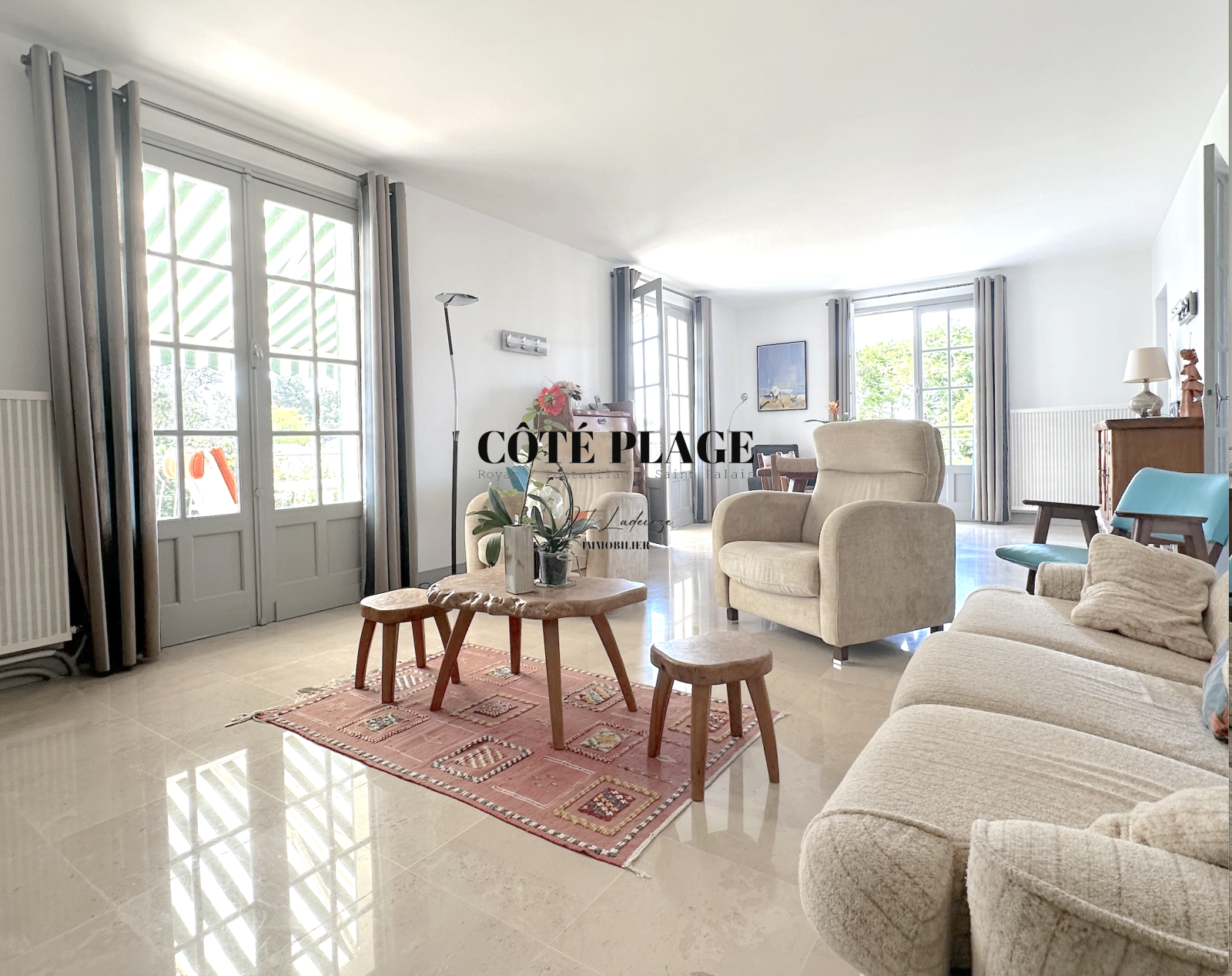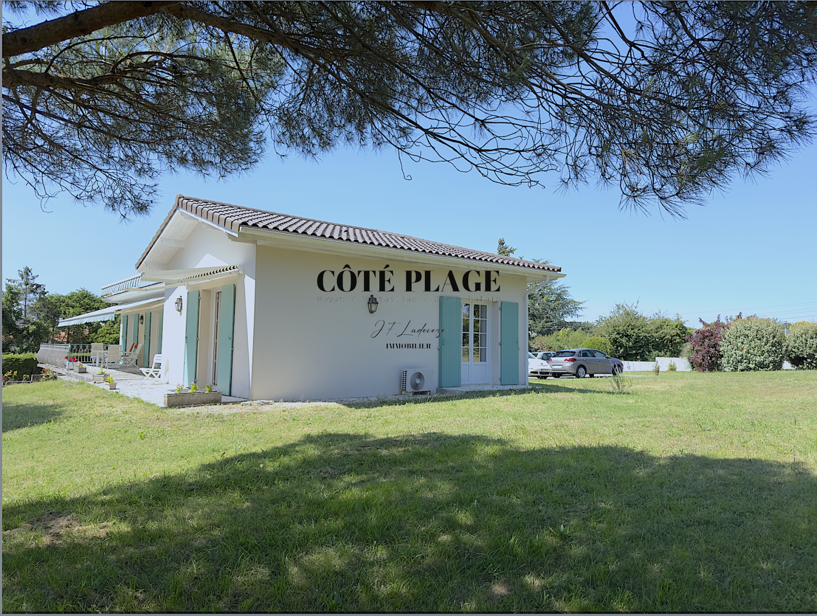 Côté Plage Immobilier a le plaisir de vous présenter une villa de 163 m2 habitables + 43 m2 d'annexes environ de plain-pied entièrement rénovée , nichée dans un splendide parc boisé de 4 485 m2, offrant intimité et sérénité. Cette propriété se compose d'une vaste entrée avec rangement , d'un séjour avec cheminée offrant une vue pittoresque sur le parc et bénéficiant d'un accès à sa terrasse orientée sud / ouest dominant le jardin ou prône une majestueux chène, une cuisine séparée aménagée et équipée, de deux chambres spacieuses avec rangement , ainsi qu'une salle d'eau.