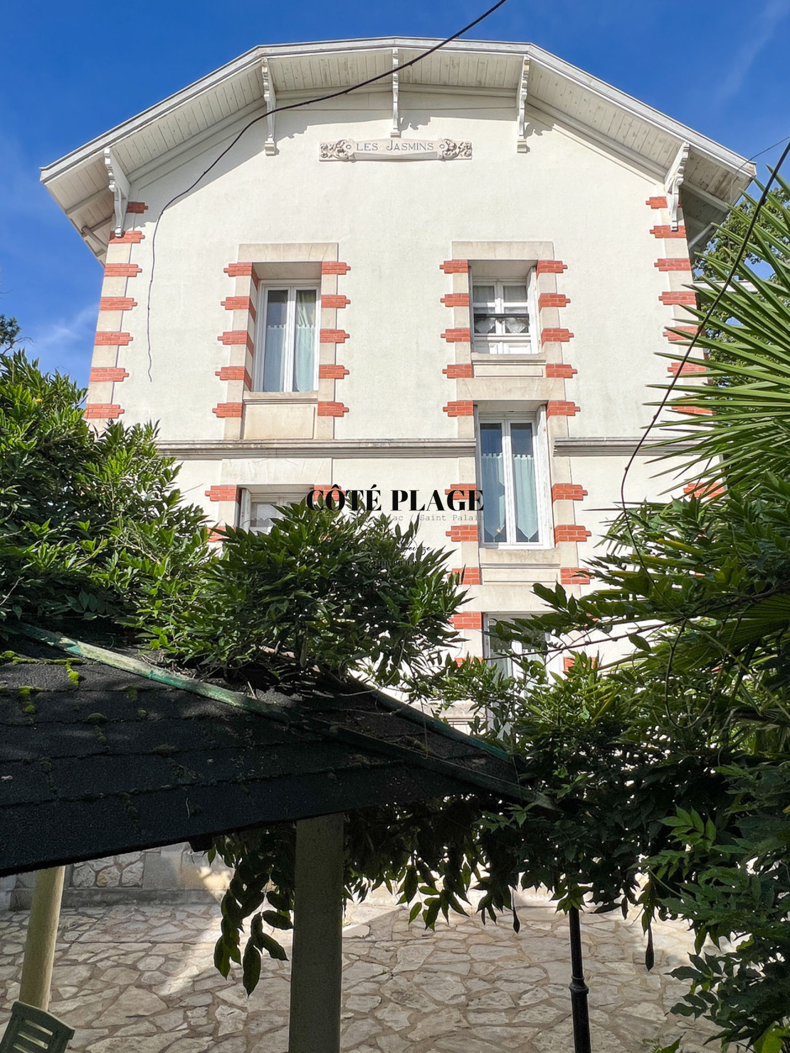 COTÉ PLAGE IMMOBILIER ST PALAIS/MER vous présente cette Villa de 1913 située au coeur de SAINT PALAIS charme et authenticité garantis pour cette élégante villa belle époque d'une belle architecture sans oublier son jardin arboré avec sa terrasse échappant aux regards de la rue -