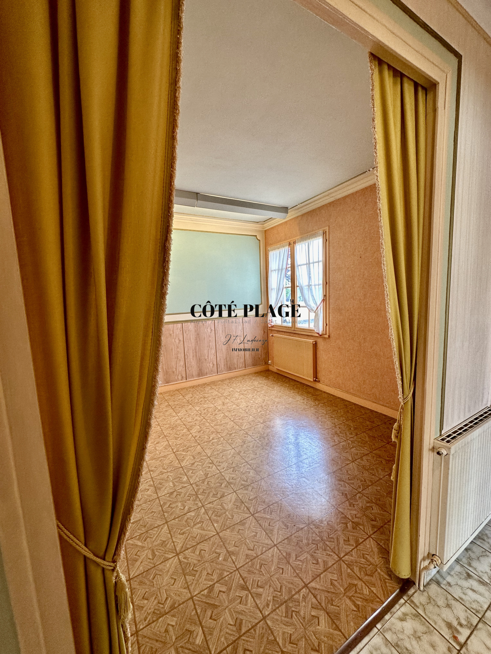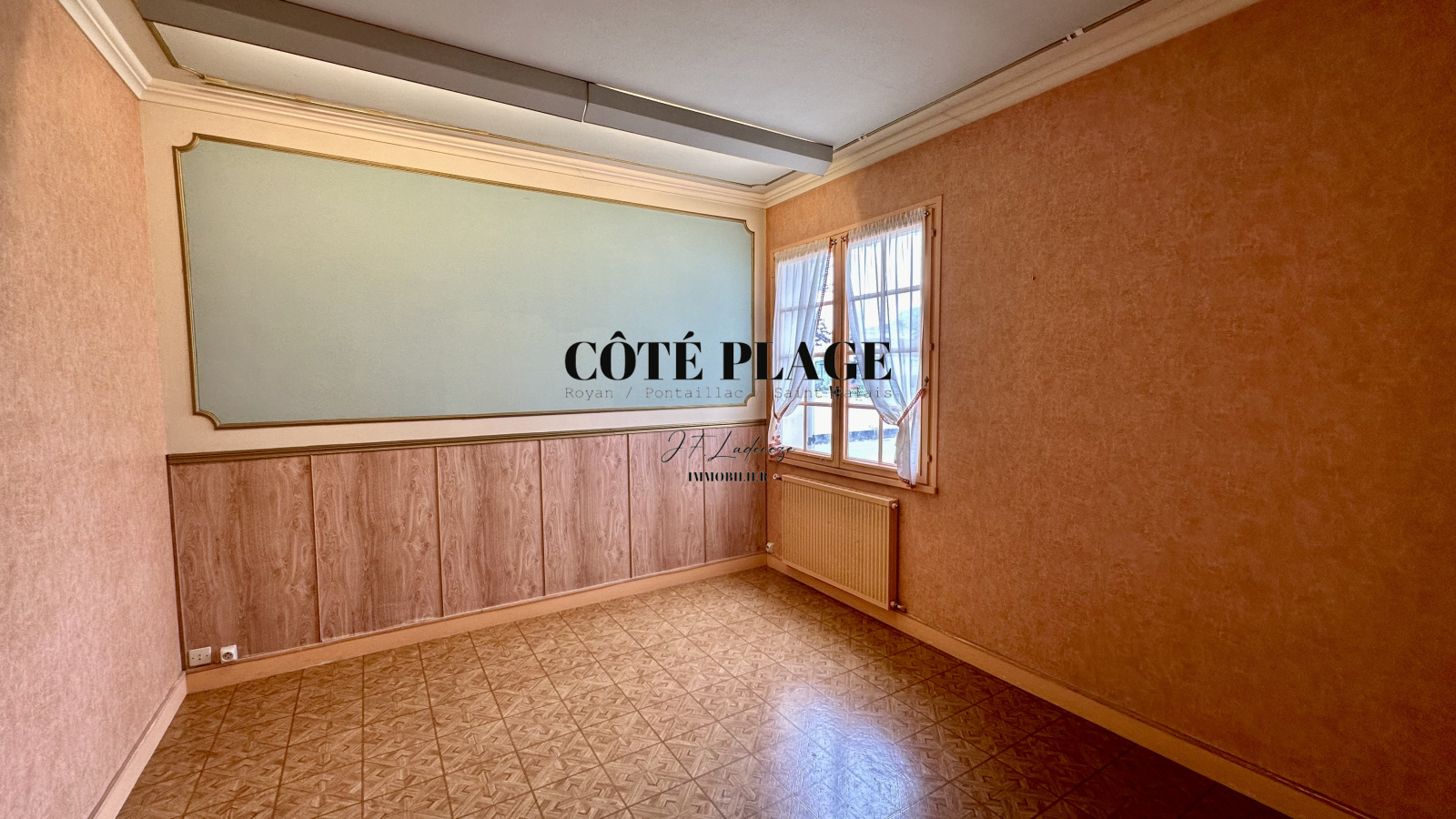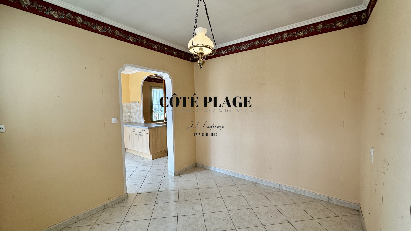 CÔTÉ PLAGE IMMOBILIER ROYAN PONTAILLAC vous présente à la vente cette Maison de Plain Pied composée d'une entrée avec placard, d'un séjour avec cheminée, un bureau, une cuisine donnant sur terrasse, une salle à manger et un WC. Le dégagement avec placard donne sur trois chambres et la salle d'eau avec douche à l'italienne. Une chaufferie et deux garages complète cette maison. Il est précisé que le DPE est en F et que cette maison nécessite des travaux de remise aux gouts et d'isolation.Le tout sur un terrain d'environ 840 m2. PREVOIR TRAVAUX