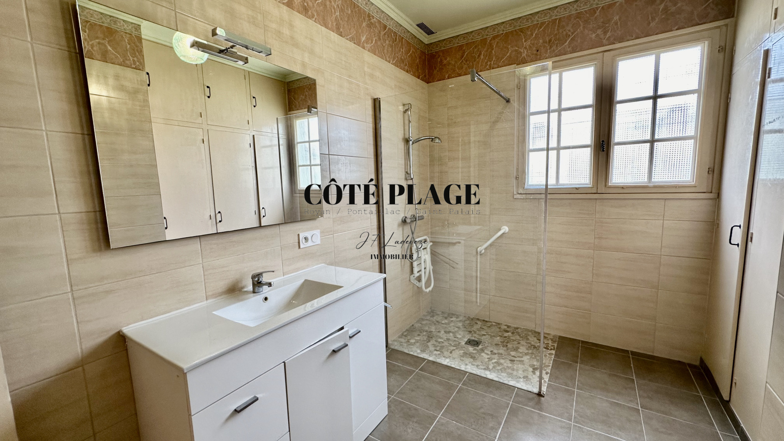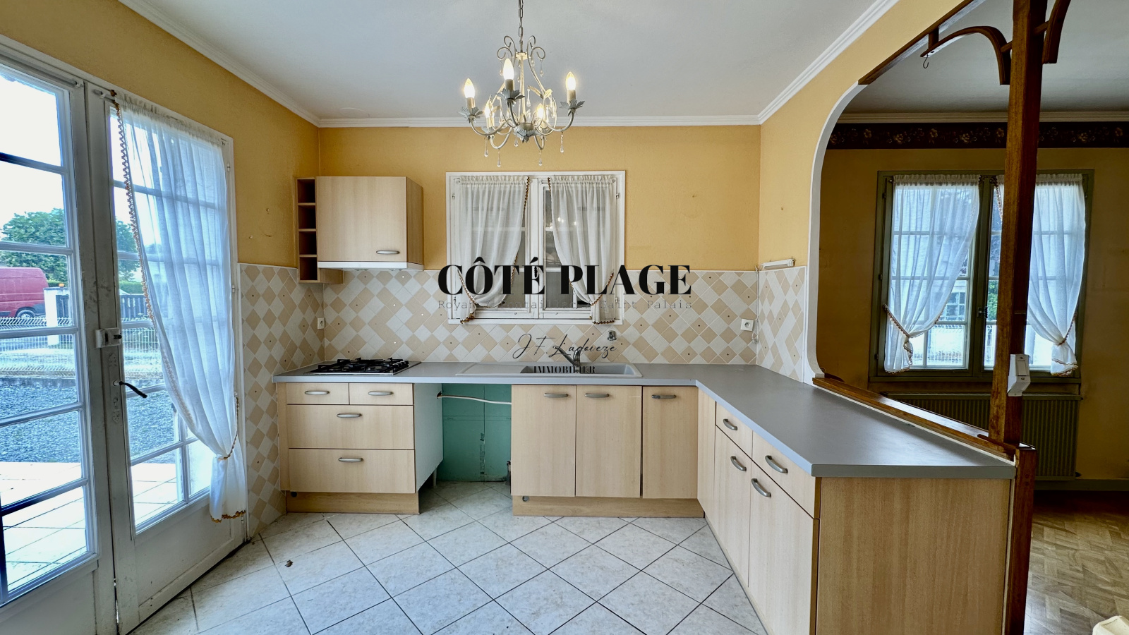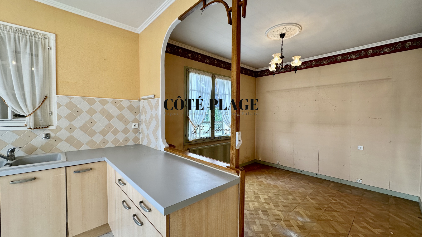 CÔTÉ PLAGE IMMOBILIER ROYAN PONTAILLAC vous présente à la vente cette Maison de Plain Pied composée d'une entrée avec placard, d'un séjour avec cheminée, un bureau, une cuisine donnant sur terrasse, une salle à manger et un WC. Le dégagement avec placard donne sur trois chambres et la salle d'eau avec douche à l'italienne. Une chaufferie et deux garages complète cette maison. Il est précisé que le DPE est en F et que cette maison nécessite des travaux de remise aux gouts et d'isolation.Le tout sur un terrain d'environ 840 m2. PREVOIR TRAVAUX