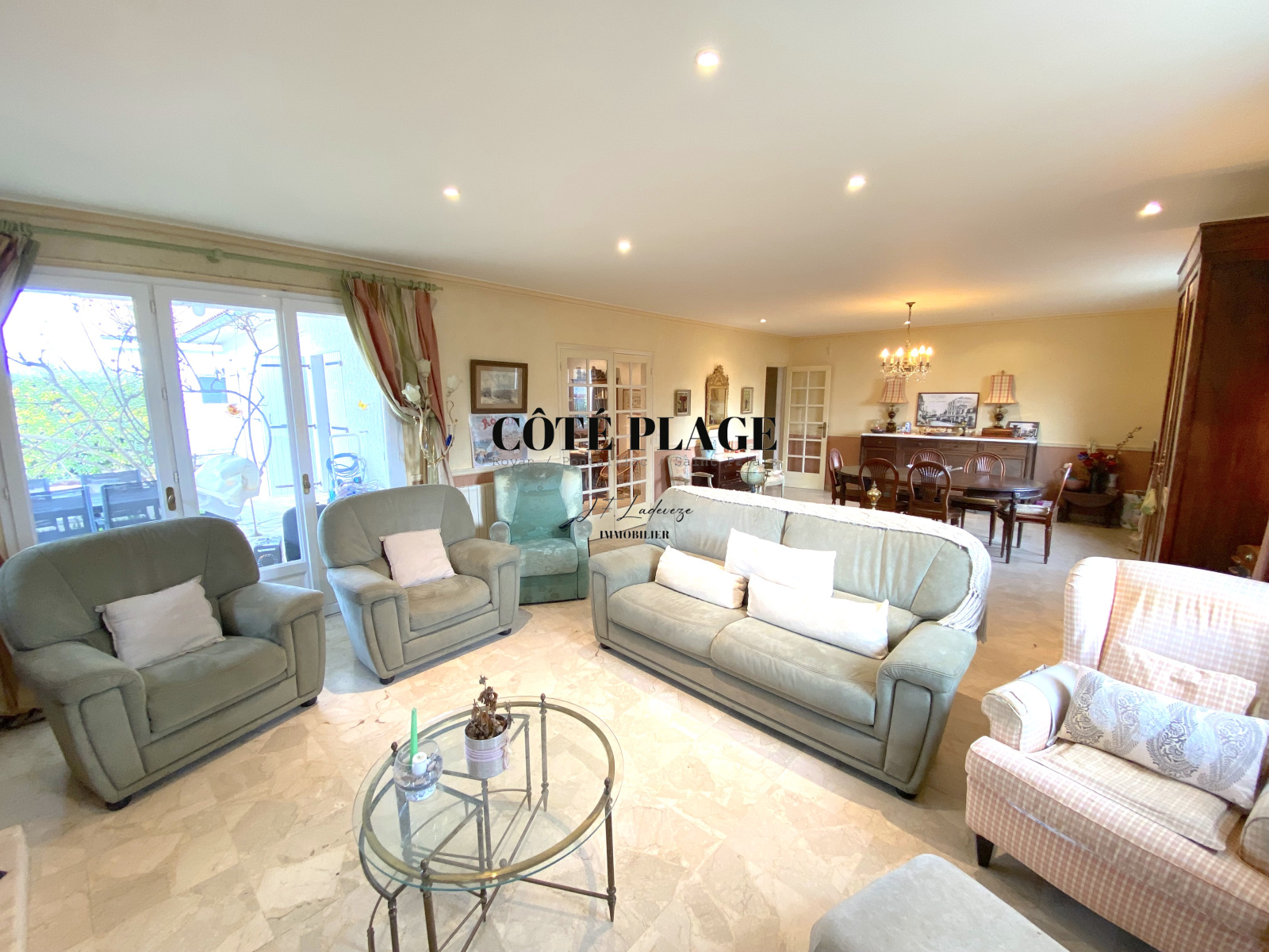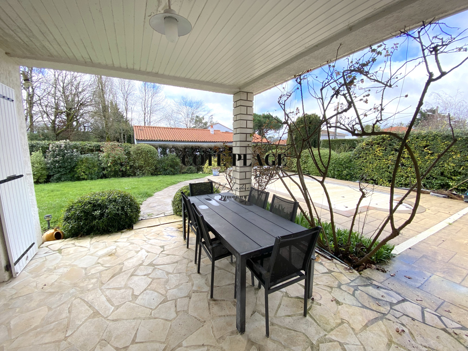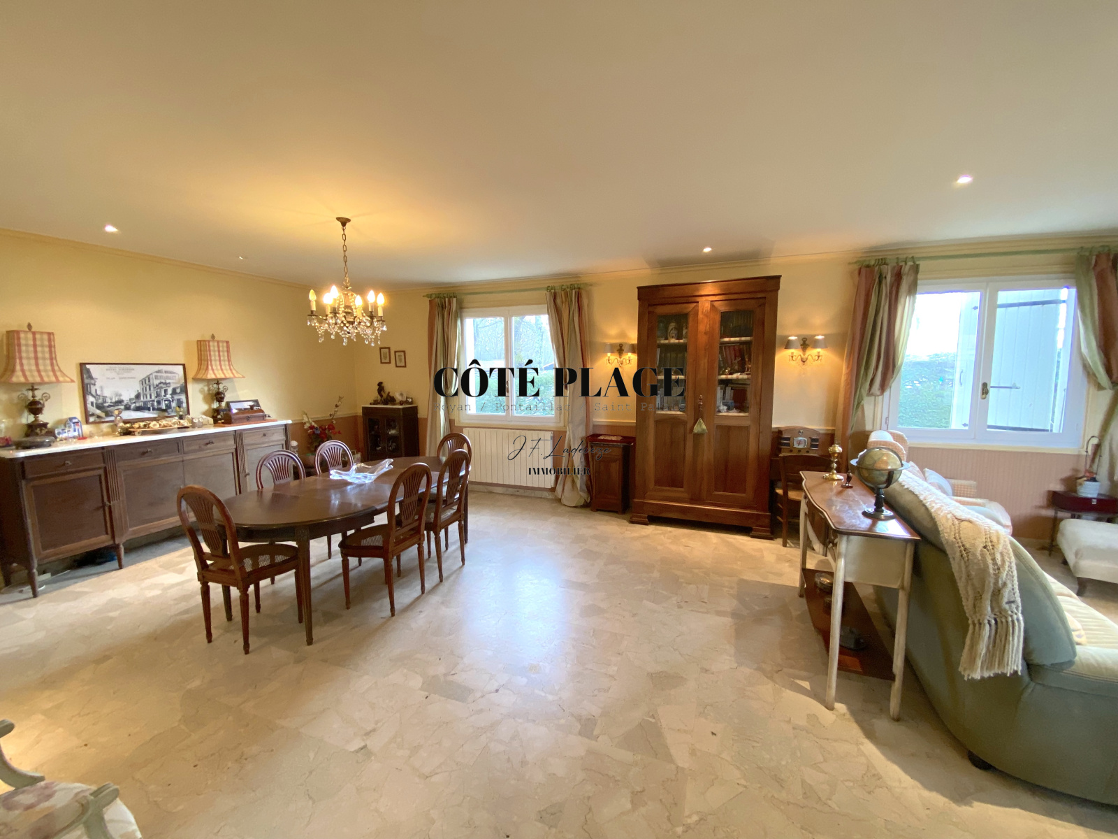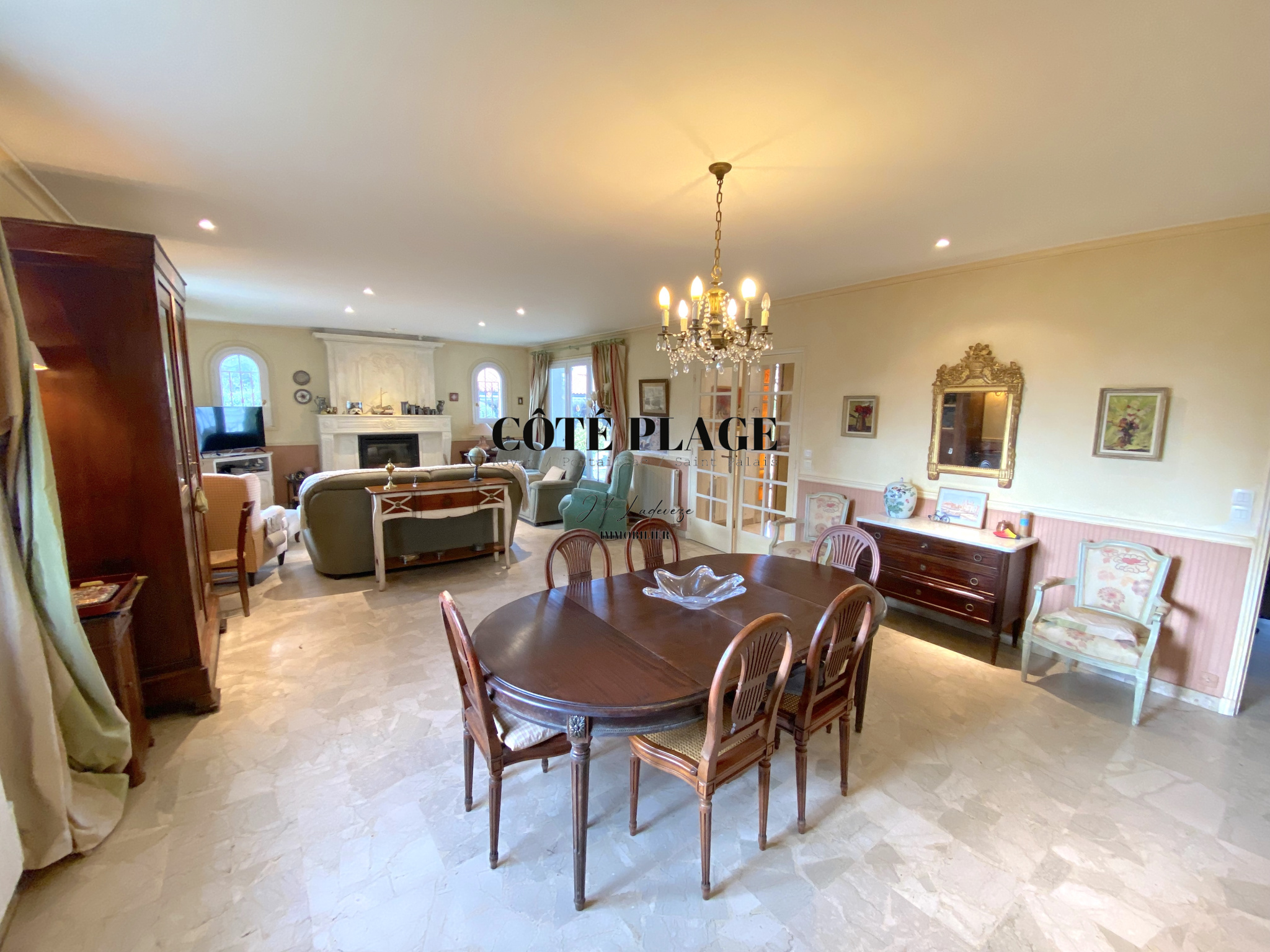 L'AGENCE CÔTÉ PLAGE IMMOBILIER PONTAILLAC vous propose à la vente une maison familiale de 1975 sur deux niveaux d'une surface de 168 m² composée d'une belle enrtrée donnant sur une pièce de vie de 50 m², cuisine séparée avec cellier séparé de 16 m². 4 chambres dont une avec cabinet de toilette, salle de bains, WC. Placards de rangements. En RdJ : grand garage de 69 m², cave. Appartement de 3 pièces 109 m² donnant sur terasse. Piscine. Terrain de 1032 m². Travaux de modernisation et de toiture à prevoir. Beau potentiel à decourvrir !!