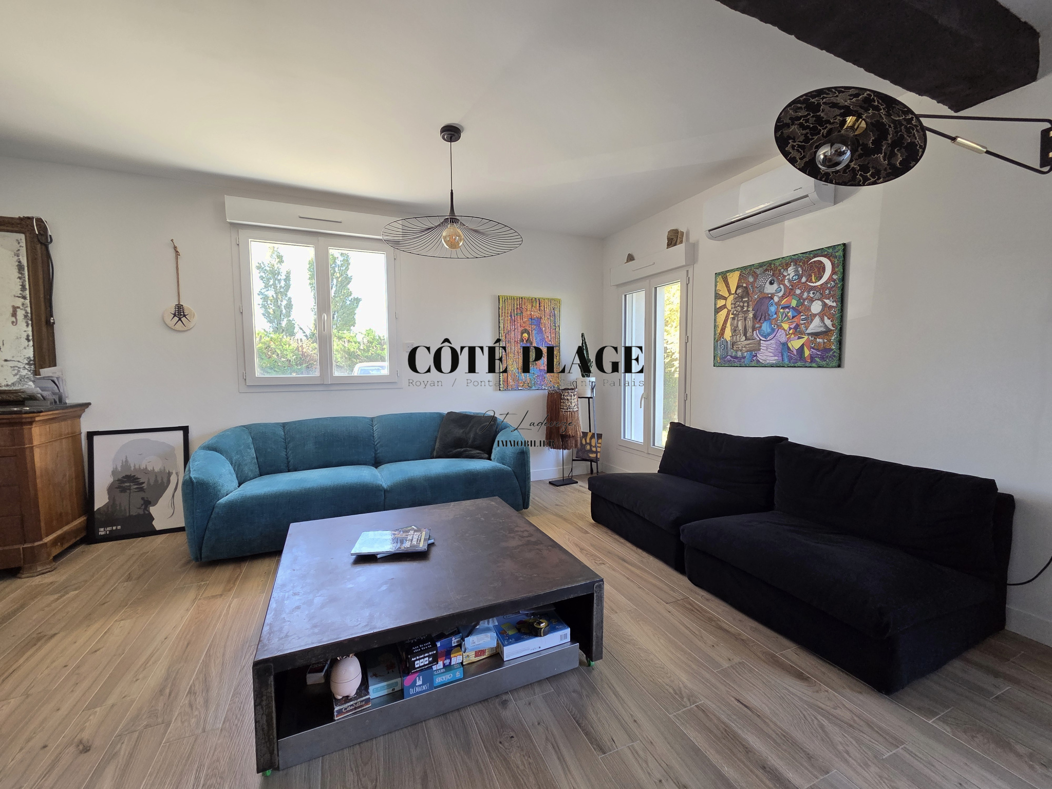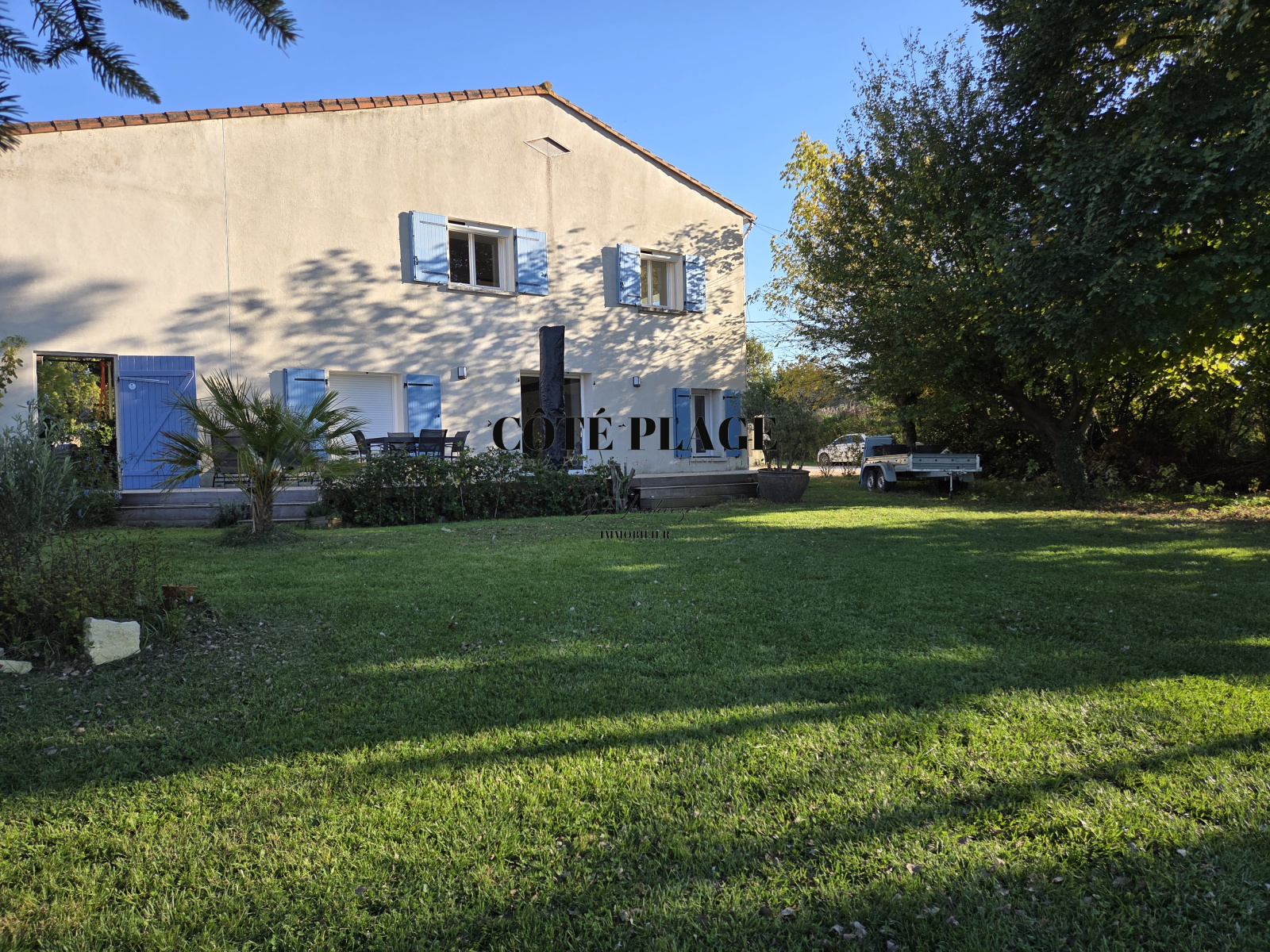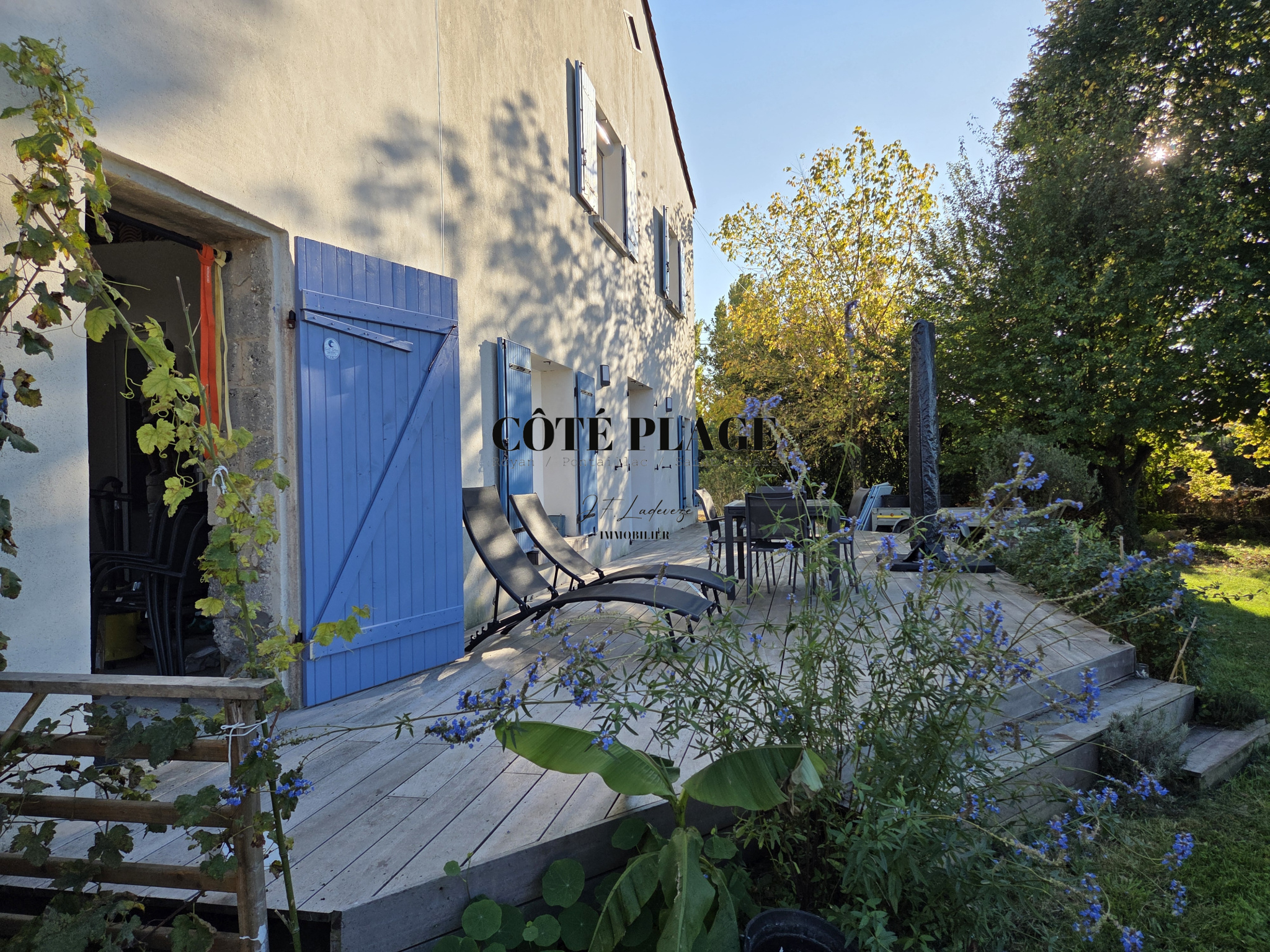 COTE PLAGE Immobilier, vous présente une maison de caractére, 4 chambres, un espace bureau, dans un secteur calme ouvert sur la campagne, à proximité des commerces et à seulement 10 minutes des plages. Cette longére entiérement restaurée est un parfait compromis entre l'ancien et le moderne. Vous serez séduit par ses volumes, sa vue dégagée , sa luminositée et son préau de 70 m2.