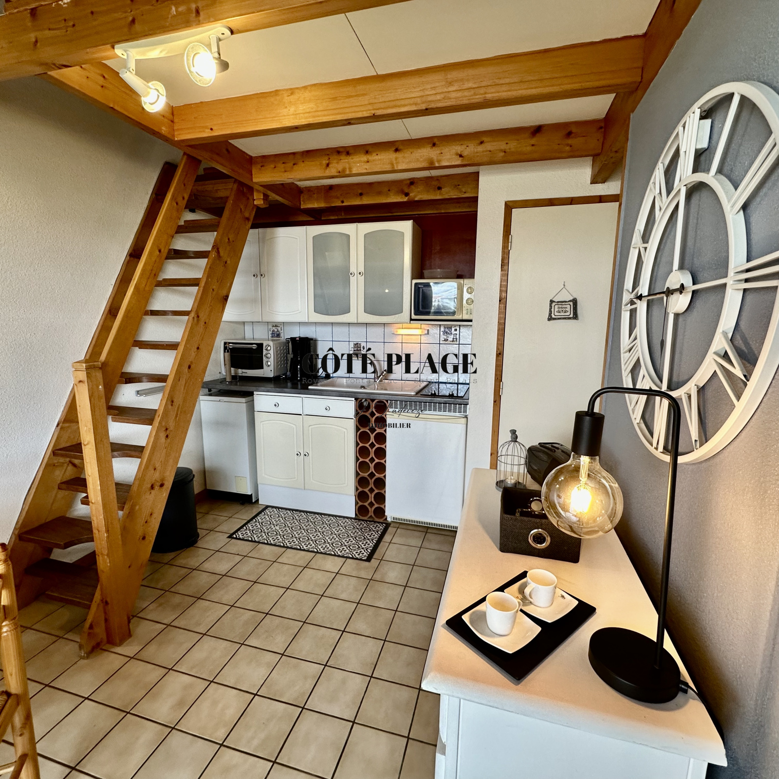 CÔTÉ PLAGE IMMOBILIER ROYAN PONTAILLAC ST PALAIS vous présente à la vente ce bien immobilier type 2 pièces + mezzanine avec parking privé sectorisé dans le quartier de VAUX/PONTAILLAC, résidence horizontale bien entretenue, ravalement et parking effectués, pas de procédure en cours, idéal pour du secondaire ou rapport locatif. Taxe foncière 715 € - Taxe d'Habitation 691 € - charges mensuelles : 40 € - Belle terrasse avec vue dégagée .