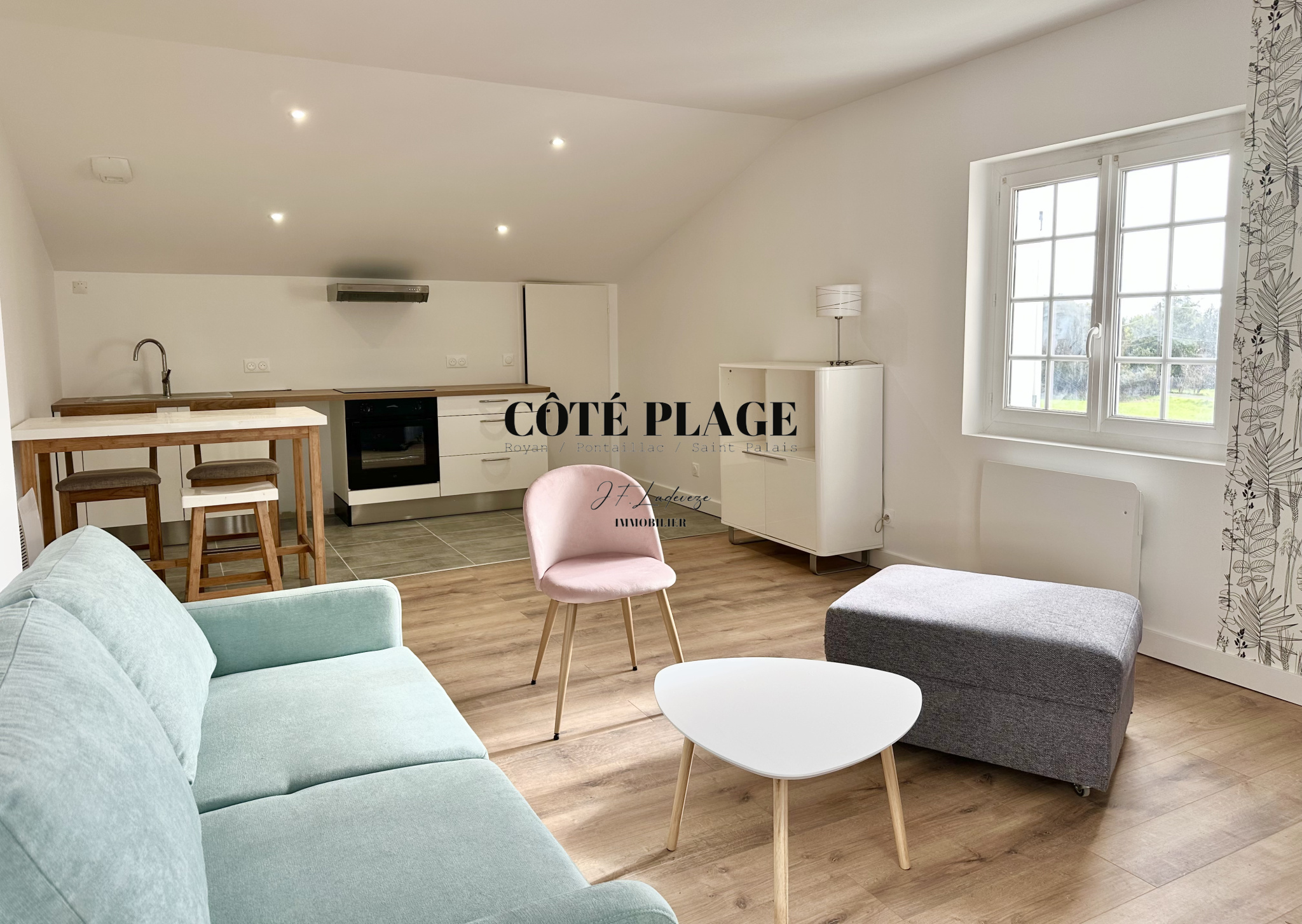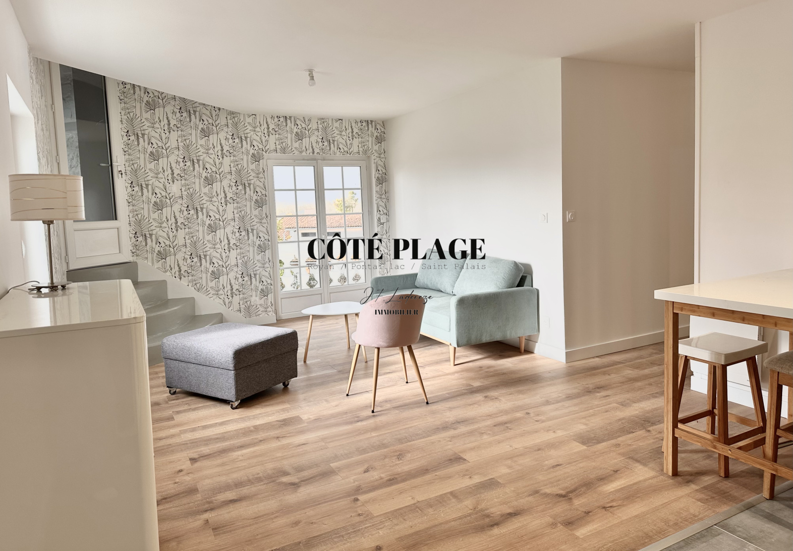 Côté Plage Immobilier SAINT-PALAIS vous invite à découvrir ce bel appartement (de 55 m² Loi Carrez et 68,55m² Habitables), entièrement rénové, situé à l’étage d’une résidence sécurisée de caractère dont la tourelle en pierre apporte charme et un espace supplémentaire modulable parfait pour un bureau ou un coin lecture - L’espace de vie se compose d’un séjour lumineux prolongé par un balcon filant offrant lumière et vues agréables, exposé SUD , une cuisine semi-équipée avec son cellier - La partie nuit comprend deux chambres confortables et une salle d’eau moderne dans un ensemble harmonieux et fonctionnel.