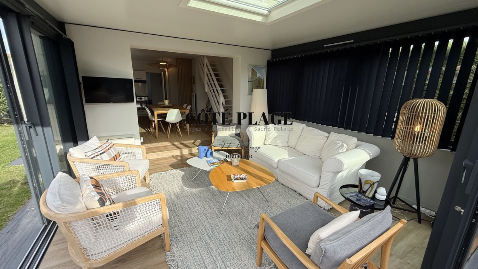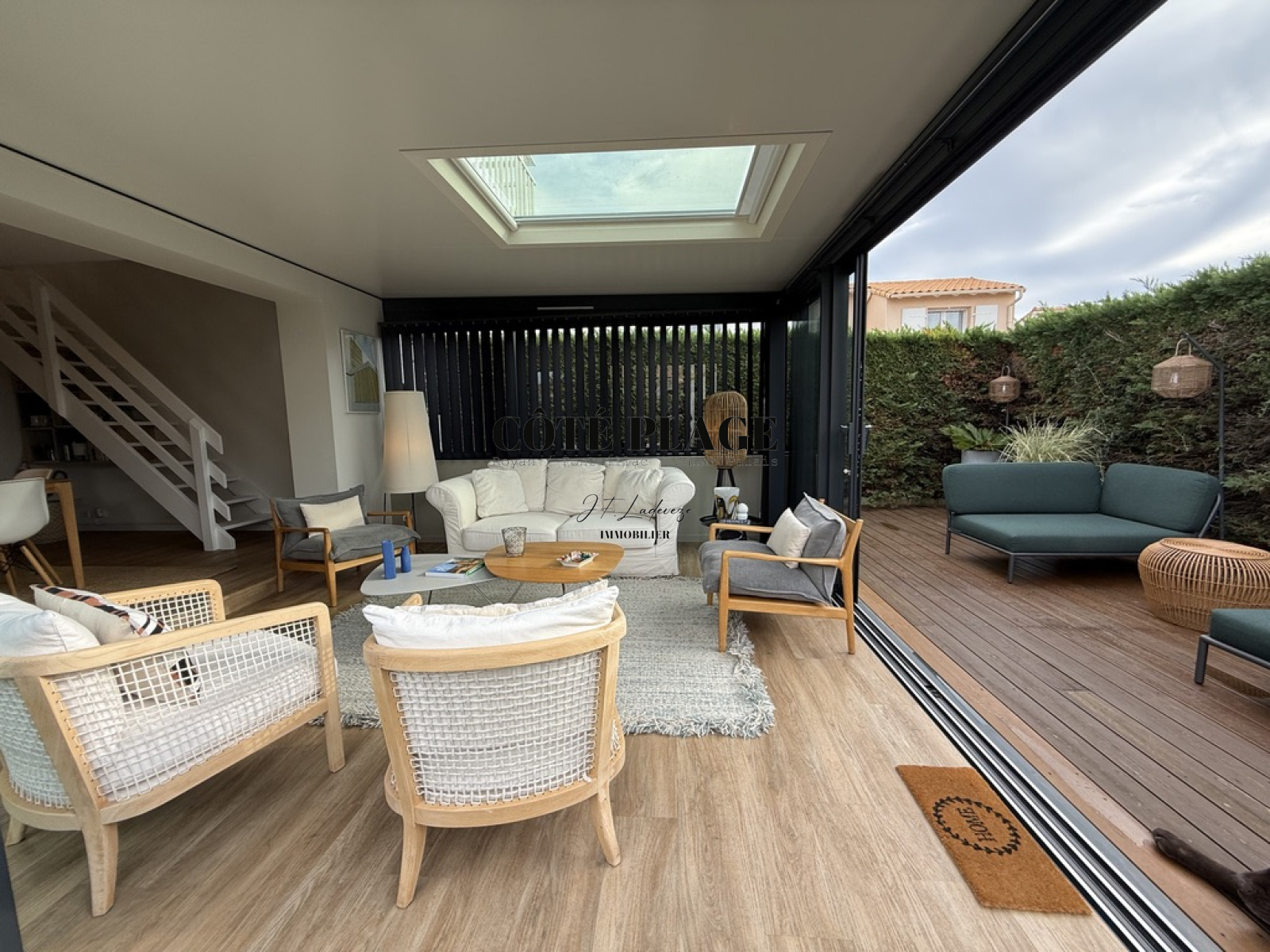 VAUX-SUR-MER à 200m de la plage, au calme, VOTRE AGENCE CÔTÉ PLAGE IMMOBILIER PONTAILLAC, vous propose à la vente une maison véritablement COUP DE COEUR. Cette lumineuse maison, totalement rénovée avec des matériaux de qualité offre un grand confort autant pour une vie à l'année ou pour les vacances. L'intime RDC se compose d'une entrée avec rangement, un salon séjour entièrement ouvert sur son beau jardin paysagé et sa terrasse, un bel espace repas avec sa cuisine ouverte, une chambre très cosy avec sa salle d'eau, une lingerie/cellier ouvert sur l'extérieur, wc séparé. A l'étage, 2 chambres dont 1 avec rangement et spacieuse terrasse, une salle d'eau avec wc. Une place de stationnement complète ce bien. Une maison très agréable à l'emplacement privilégié, à visiter sans tarder!