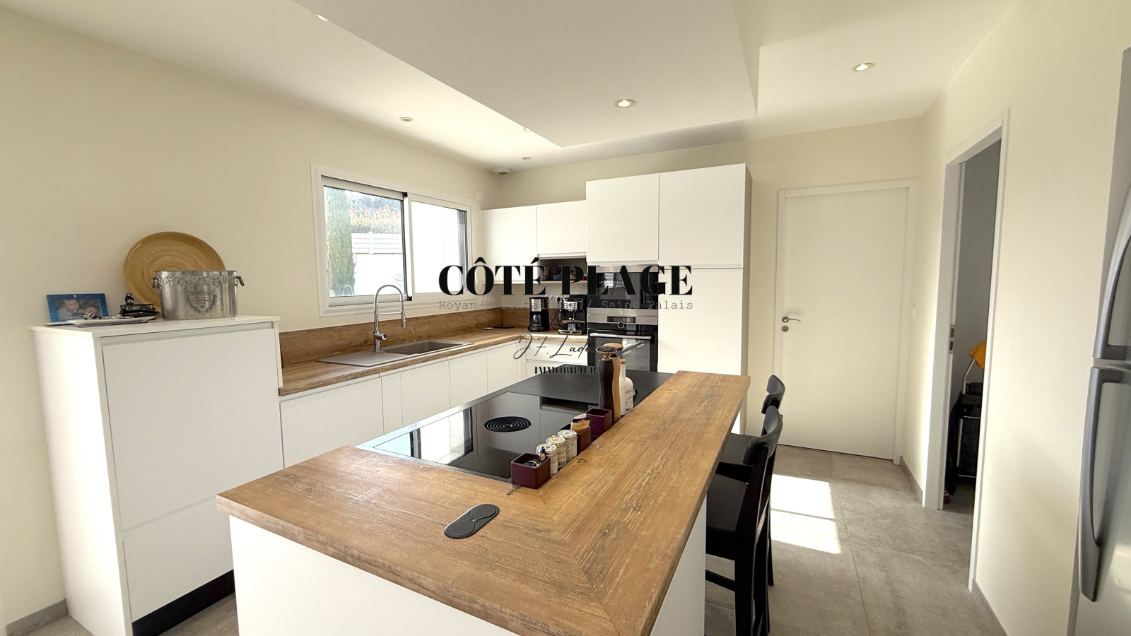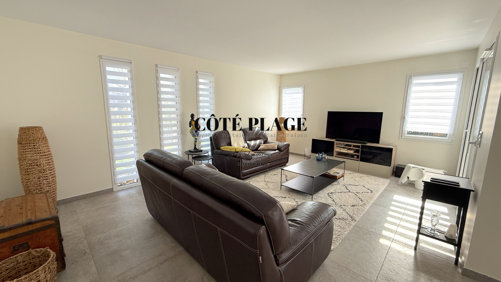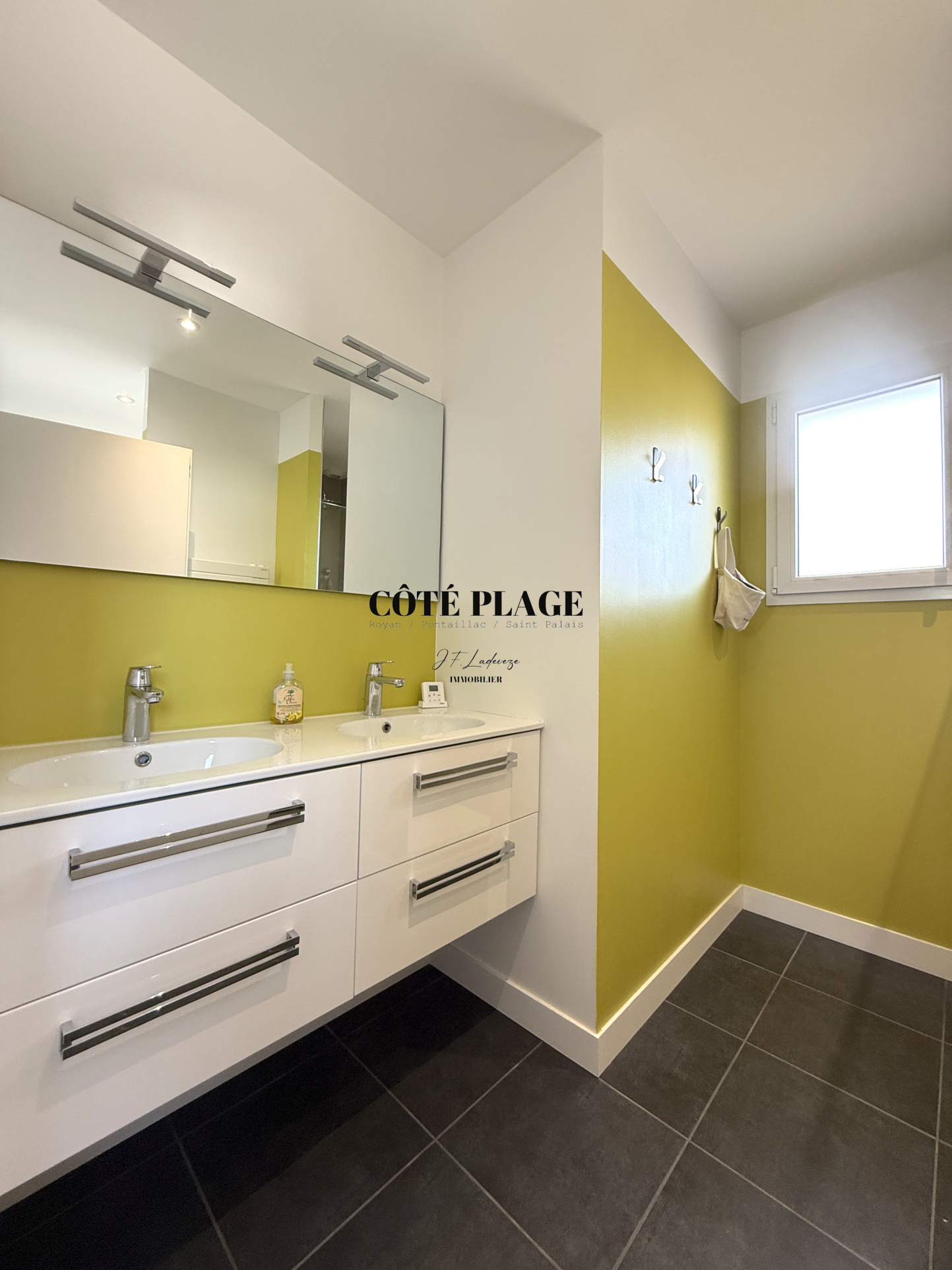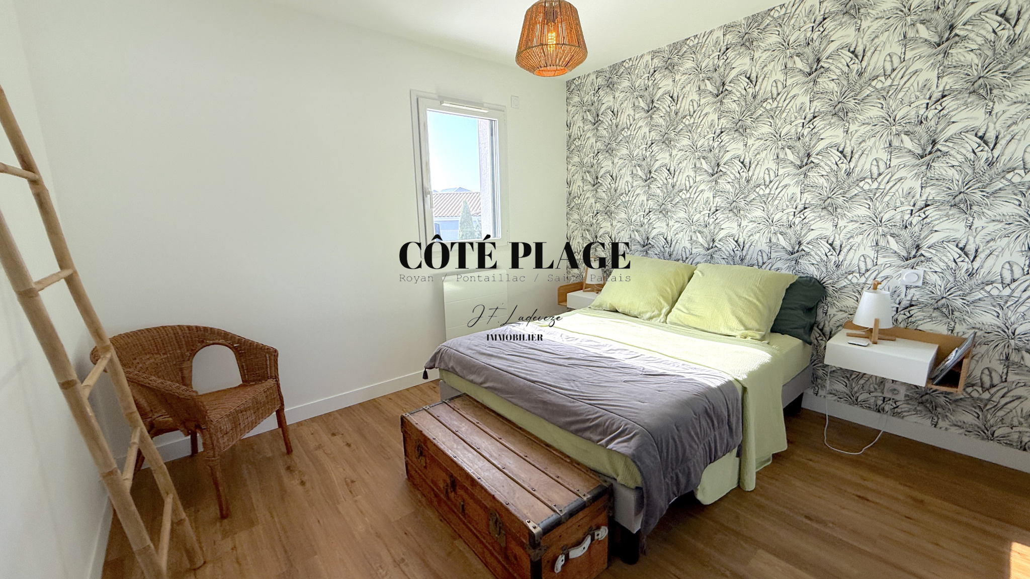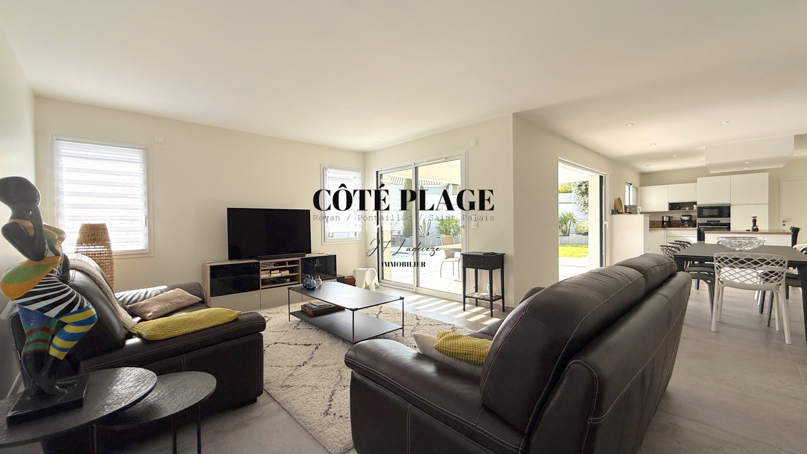 L'AGENCE CÔTÉ PLAGE IMMOBILIER PONTAILLAC vous propose à la vente une villa récente dans un quartier calme à 800 M du centre ville de VAUX SUR MER et 600 M des premiers commerces. Cette villa très lumineuse se compose d'une belle entrée avec rangement, pièce de vie ouverte avec cuisine donnant sur terrasse couverte et piscine. suite parentale avec dressing et salle d'eau. WC séparé,Arrière cuisine, garage. A l'étage : palier pouvant acceuillir un espace bureau au lit d'appoint. 2 chambres, salle d'eau. Pool-house. Jardin paysagé.