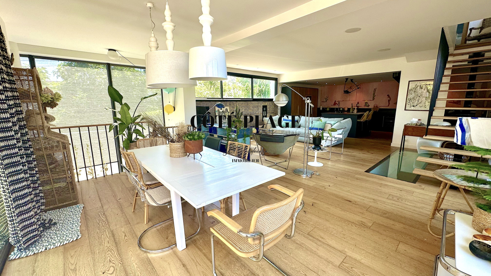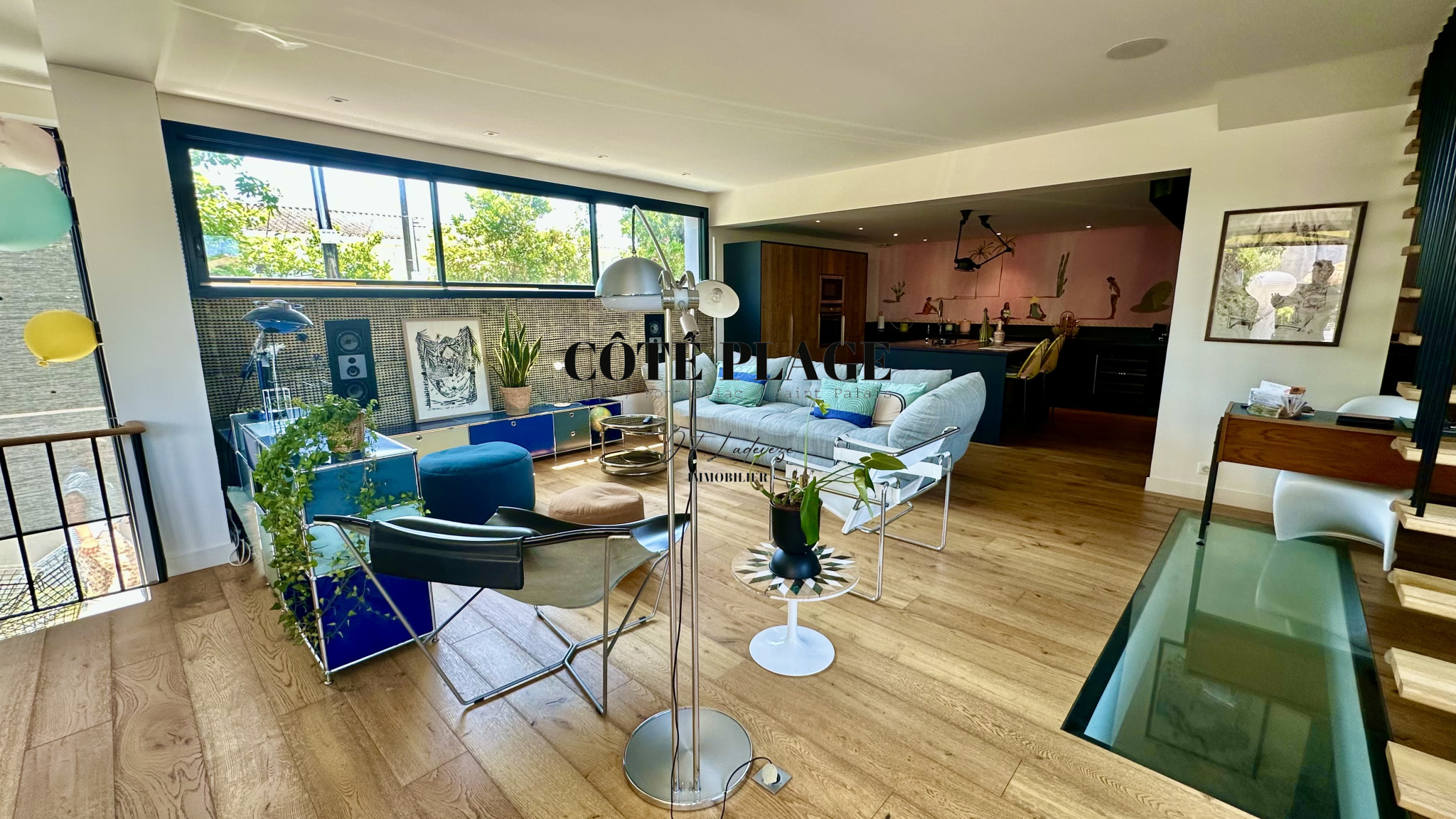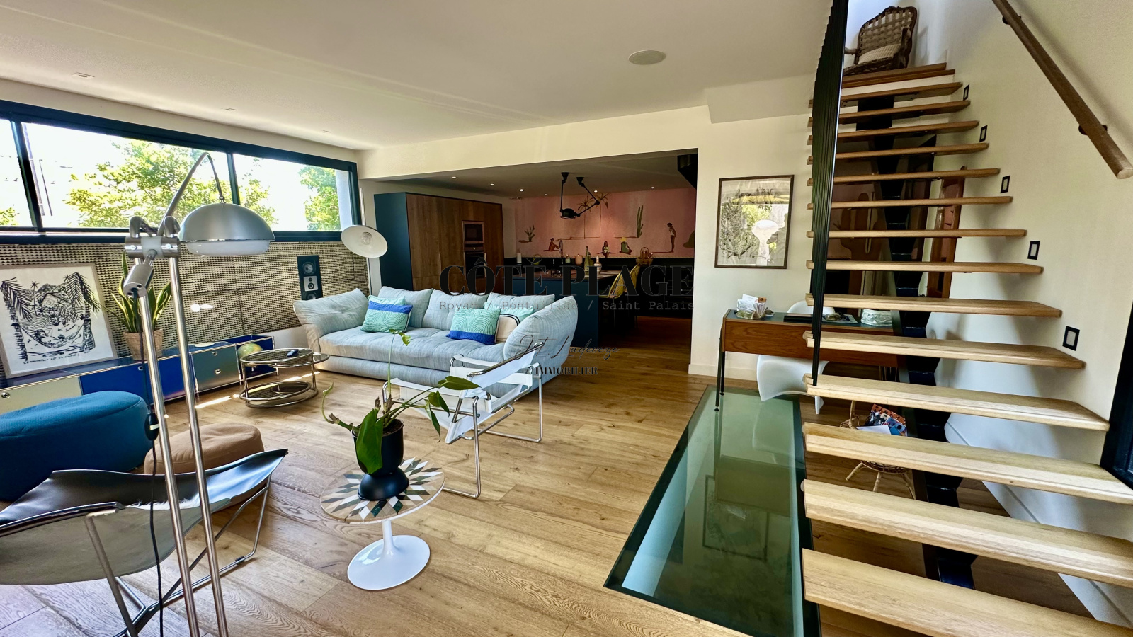 Un vaste séjour de 76 m² avec cuisine américaine équipée s’ouvre sur l’extérieur, idéal pour recevoir en toute convivialité.