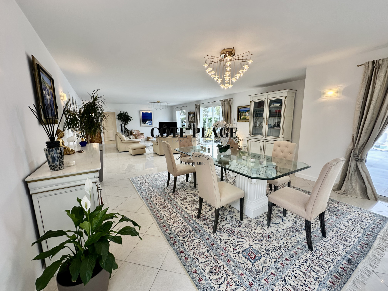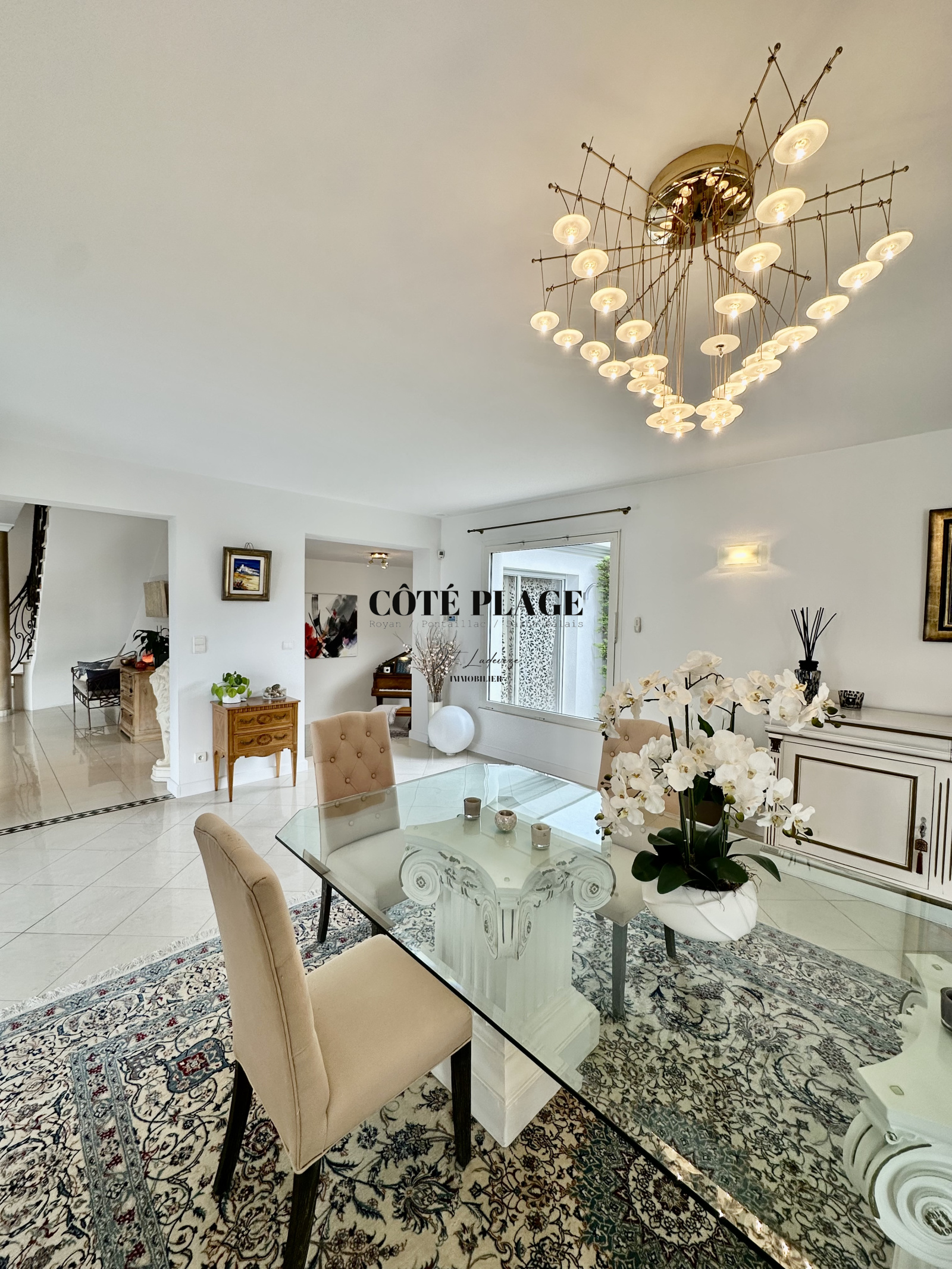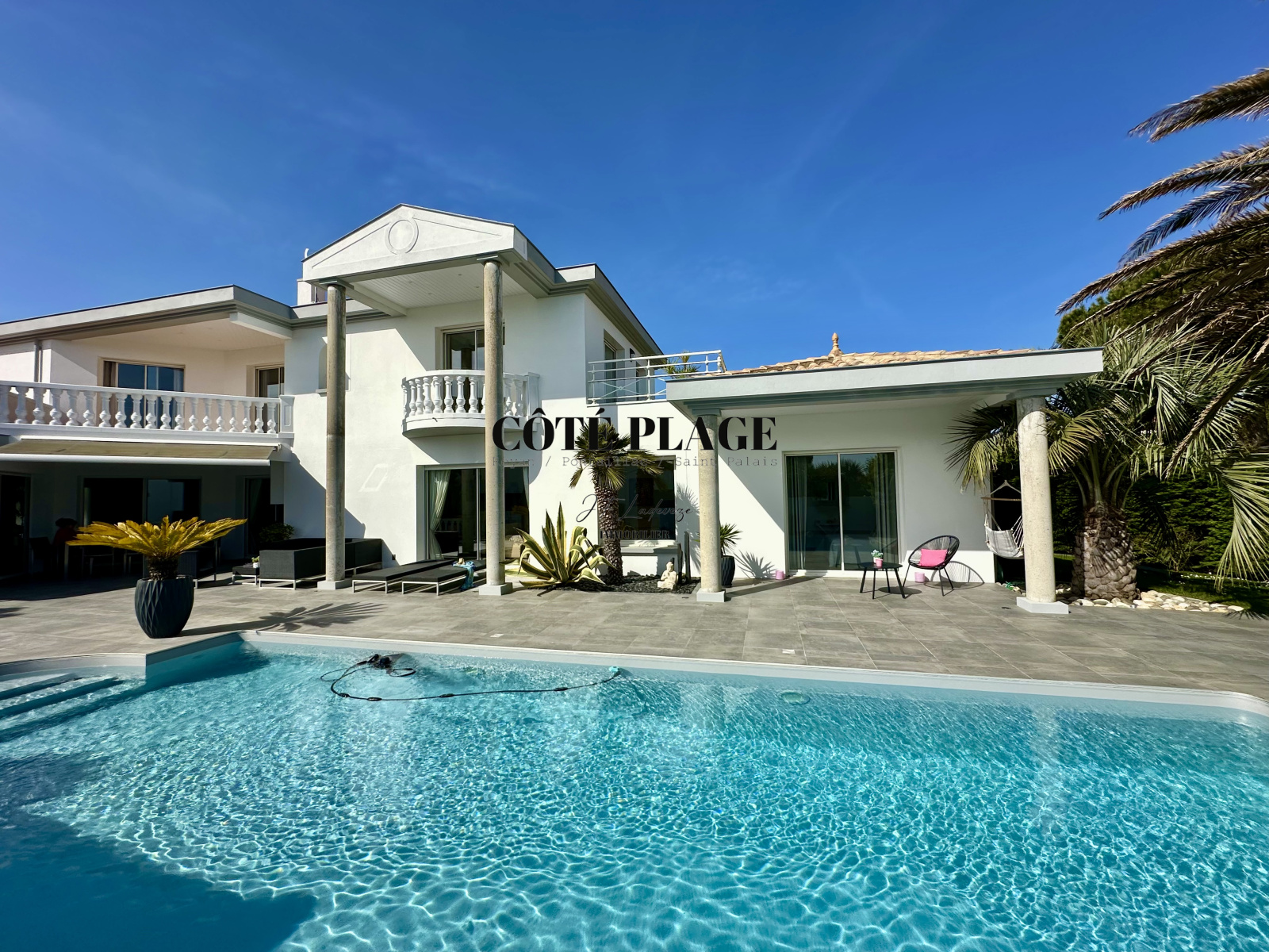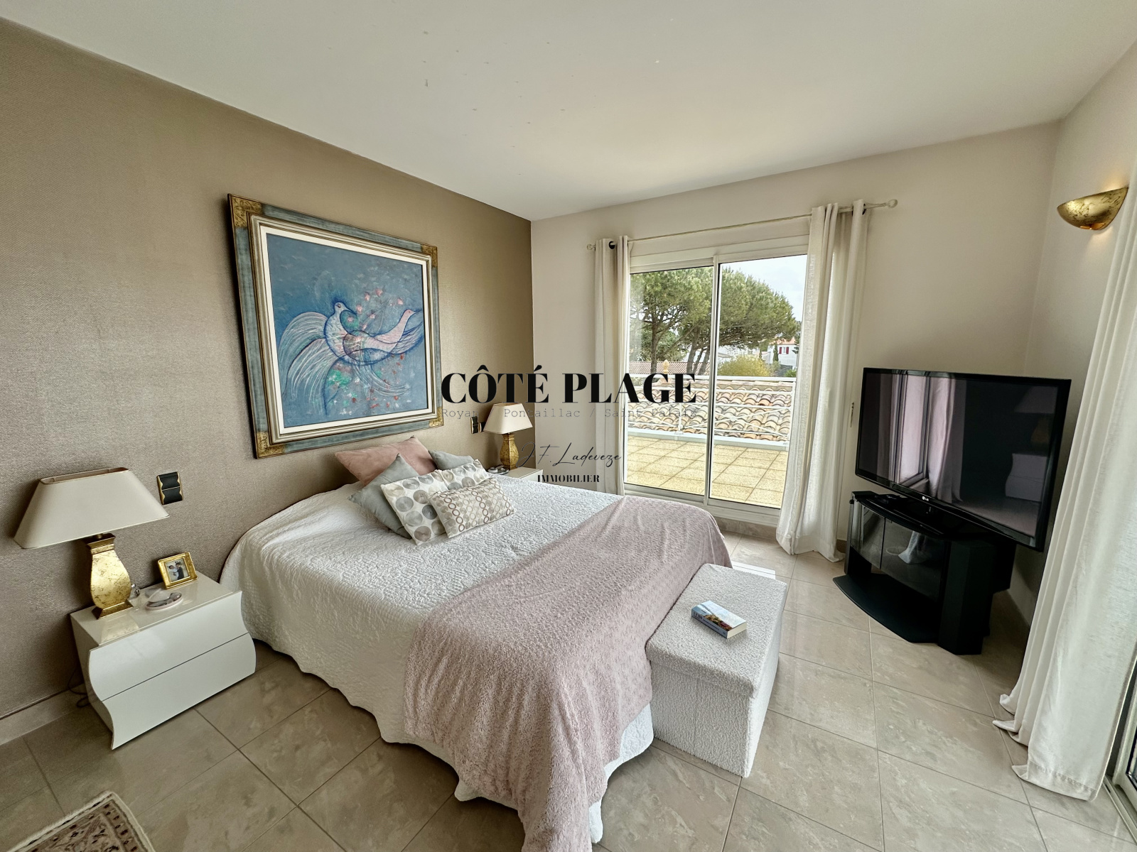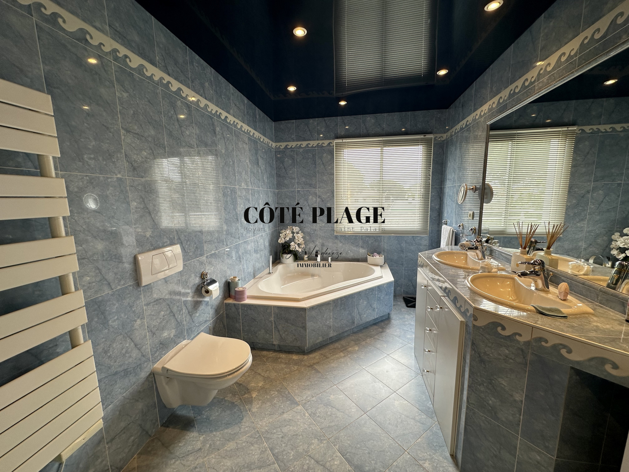 Côté Plage Immobilier Royan Pontaillac & Saint-Palais-sur-Mer vous propose à la vente cette somptueuse villa de 267 m² habitables, idéalement située sur la corniche de Vaux-sur-Mer, à seulement quelques pas de l’océan, au cœur d’un environnement résidentiel prisé et privilégié. Dès l’entrée, vous serez séduite par des volumes généreux et un agencement parfaitement optimisé. La maison avec piscine chauffée s’ouvre sur une élégante réception menant à une vaste pièce de vie baignée de lumière, en lien direct avec l’extérieur et la piscine. La cuisine, entièrement équipée et aménagée, est prolongée par une arrière-cuisine fonctionnelle offrant de nombreux rangements. Le rez-de-chaussée accueille également une chambre d’amis avec sa salle d’eau privative, ainsi qu’un espace bureau-bibliothèque (ou pièce musicale), ouvert sur la salle à manger. À l’étage, l’espace nuit propose une superbe suite parentale avec dressing aménagé et salle de bains. Une chambre avec balcon bénéficie d’une agréable vue sur l’océan, tandis que deux autres chambres s’ouvrent sur une magnifique terrasse avec vue mer, complétées par une salle d’eau. Un double garage ainsi qu’une salle de sport et de loisirs entièrement aménagée viennent parfaire les prestations de cette propriété.À l’extérieur, le jardin paysager de 954 m², entièrement clos, constitue un véritable havre de paix. La piscine et son spa, récemment rénovés, s’intègrent harmonieusement au cœur de larges terrasses et d’espaces lounge dédiés à la détente. La végétation méditerranéenne soigneusement sélectionnée apporte fraîcheur, intimité et élégance. À proximité immédiate des commodités, tout en étant à l’abri des regards, cette villa d’exception séduit par son architecture unique et ses prestations haut de gamme. Une adresse rare pour une qualité de vie alliant confort, sérénité et art de vivre en bord de l'océan.