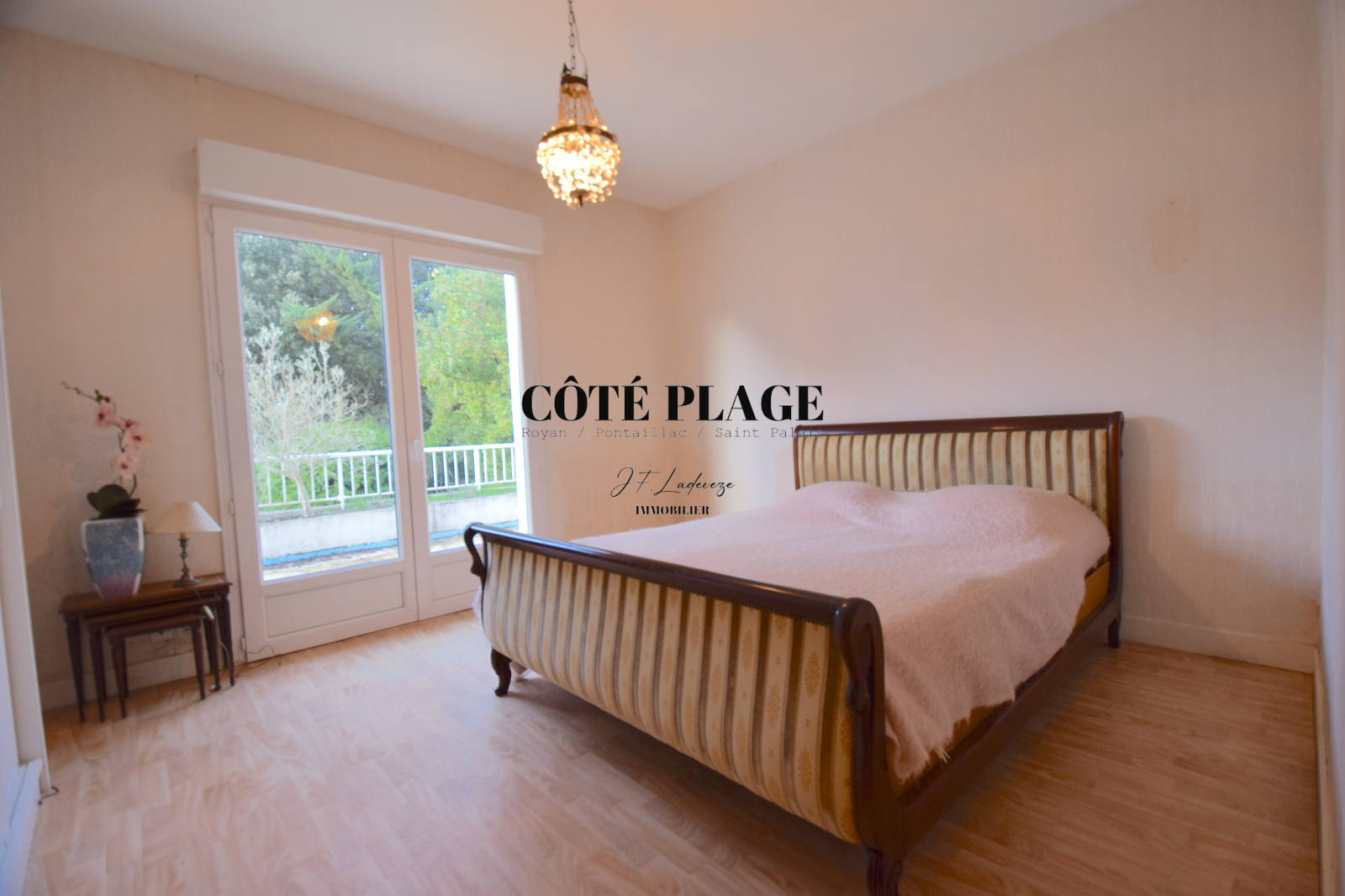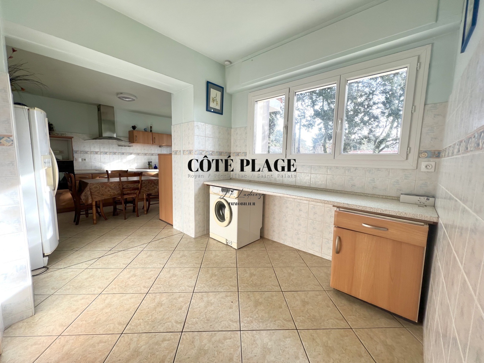 Le rez de jardin est composé d'une buanderie & chaufferie, une chambre, une cave à vin, un appartement T2 avec salon transformé en dortoir avec coin cuisine + une chambre + salle d'eau et wc, de deux spacieux garages communiquants idéal pour 4 voitures .