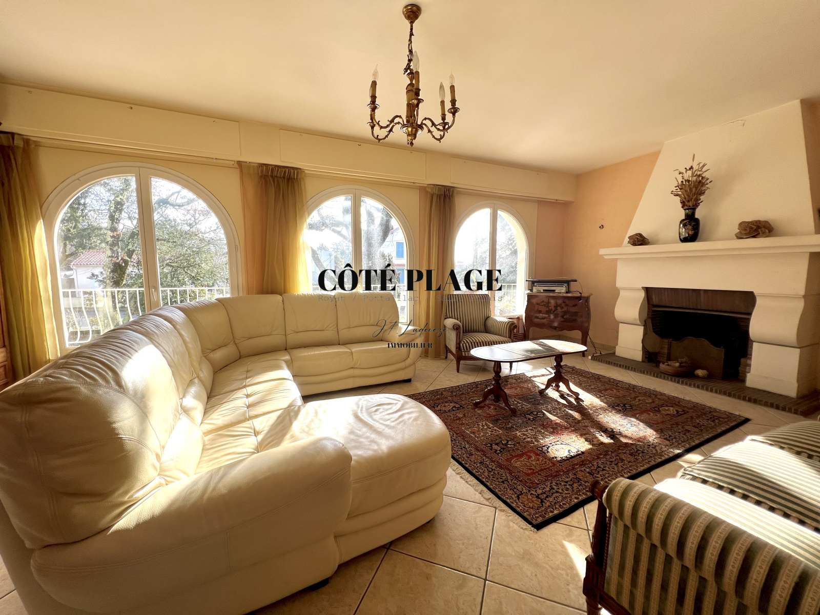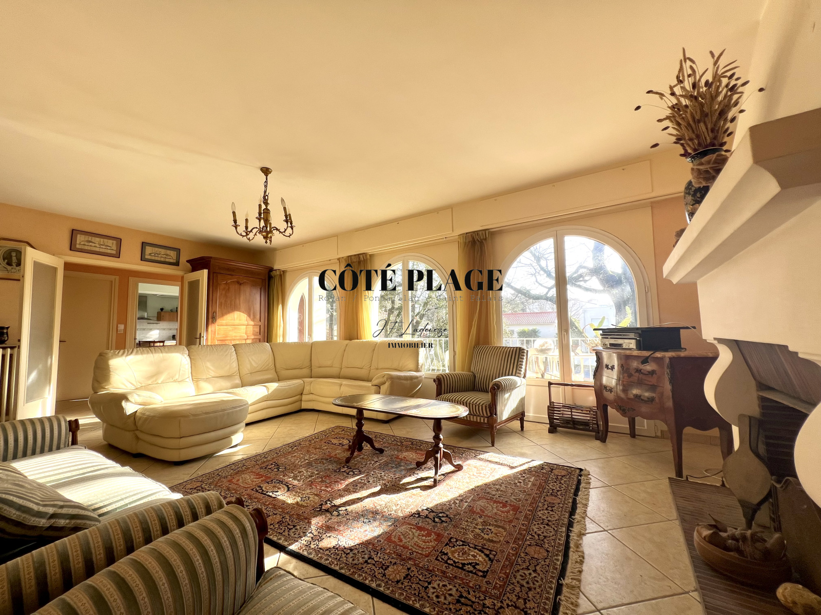 VAUX SUR MER - Proches plages - De généreux volumes à exploiter avec cette élégante villa répartie sur deux plateaux (d'environ 162 m2 X 2) . L'étage supérieur s'agrémente au delà d'une entrée d'un spacieuux salon avec cheminée donnant sur une terrasse ensoleillée exposée est/sud, une salle à manger ouvrant sur une deuxieme terrasse à l'arrière de la villa exposée sud/ouest, une vaste cuisine avec coin repas, une chambre parentale avec accés terrasse + sa salle de bains de 9 m2 , deux autres chambres avec salle d'eau privative, un bureau de 12 m2, et un cabinet de toilettes avec lave-mains.