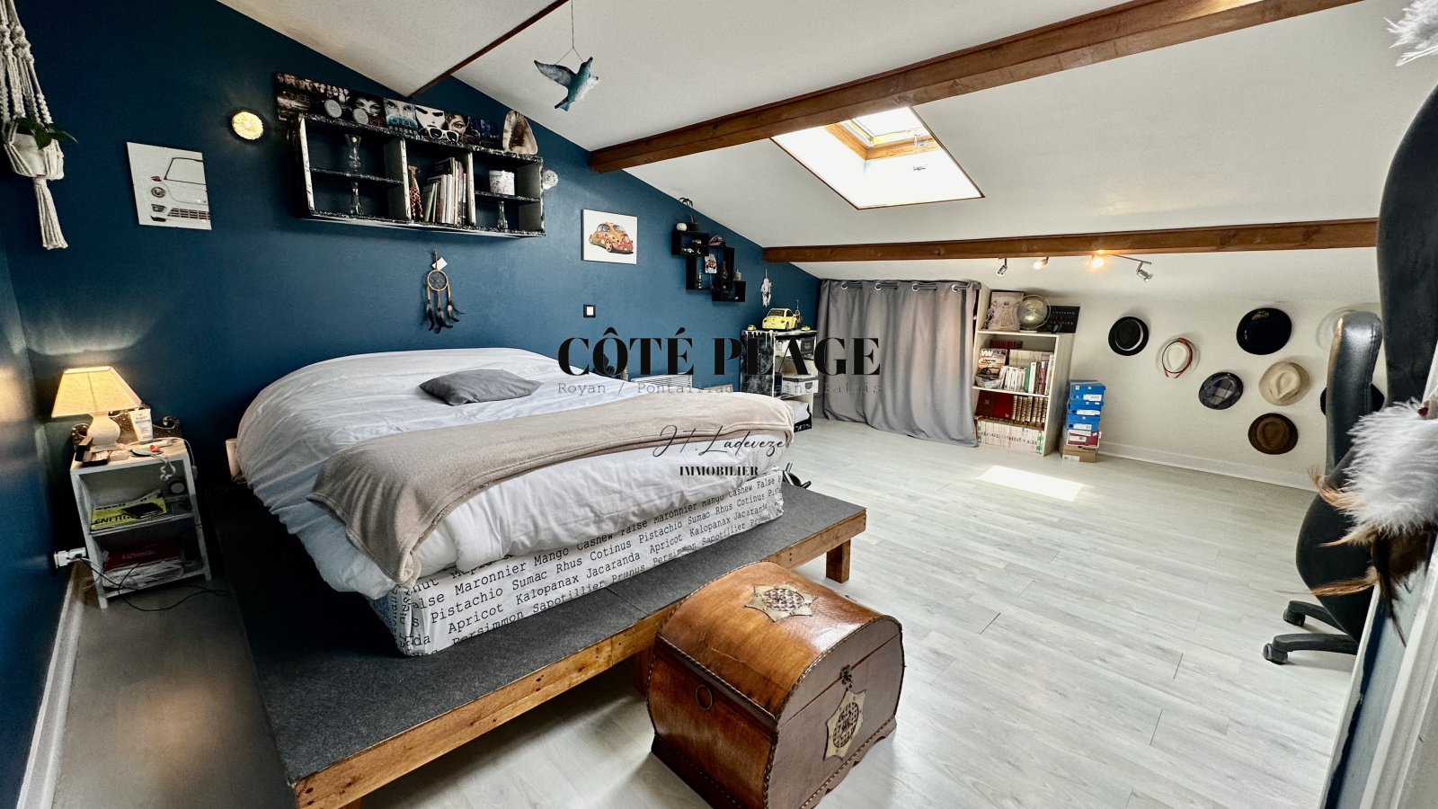 CÔTÉ PLAGE IMMOBILIER ROYAN PONTAILLAC vous présente à la vente cette villa de 190 m2 sur 2 niveaux édifiée sur un terrain de 2140 m2 piscinable et clos, villa composée de 8 pièces principales dont 5 chambres et un bureau, séjour salon avec cheminée insert de 48 m2 , 2 sallles d'eau dont une avec baignoire, toilettes, un grenier aménagé + combles aménagés, Villa disposant de 2 abris de voitures plus un garage fermé, piscine hors-sol mais possibilité de construire une piscine traditionnelle; Idéal grande famille et amoureux des espaces verts,